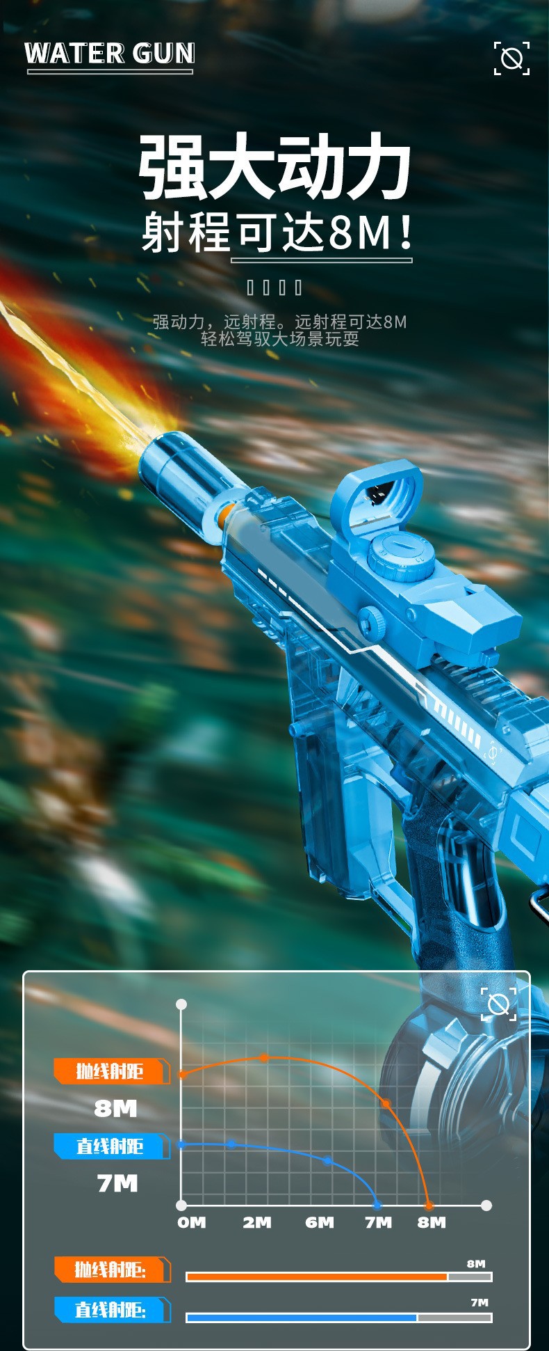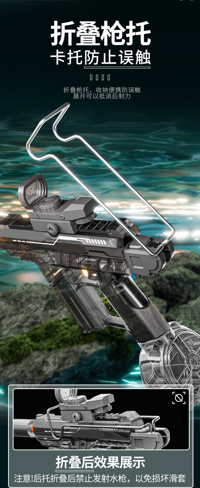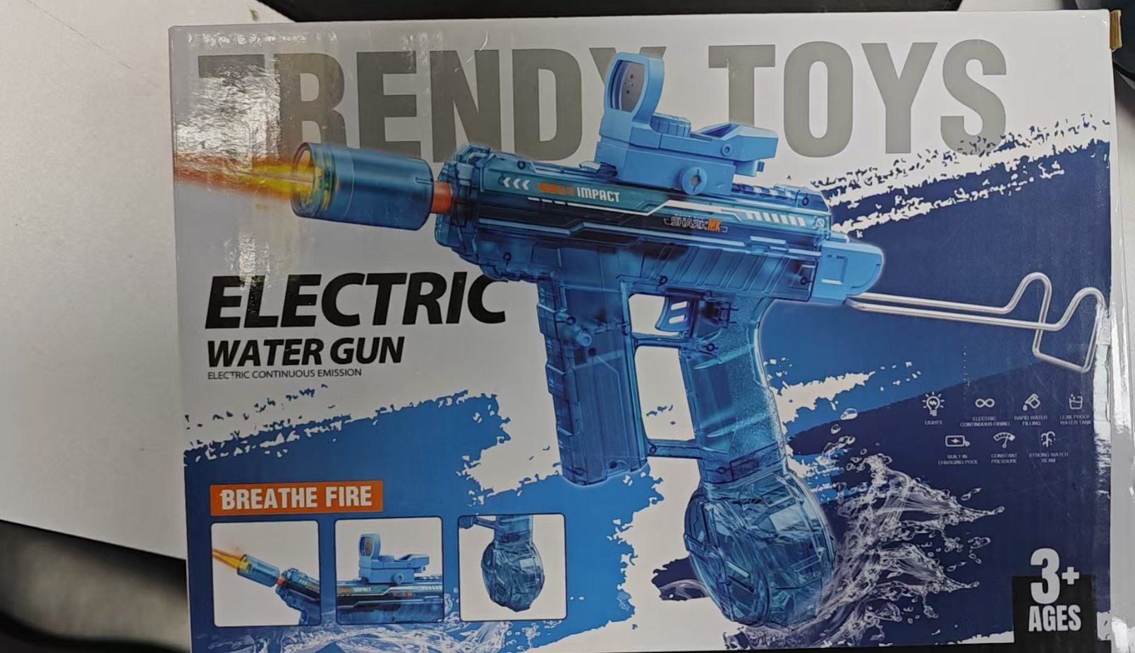 爆闪火光UZI电动水枪大容量联动回膛高压脉冲乌兹儿童全自动水枪