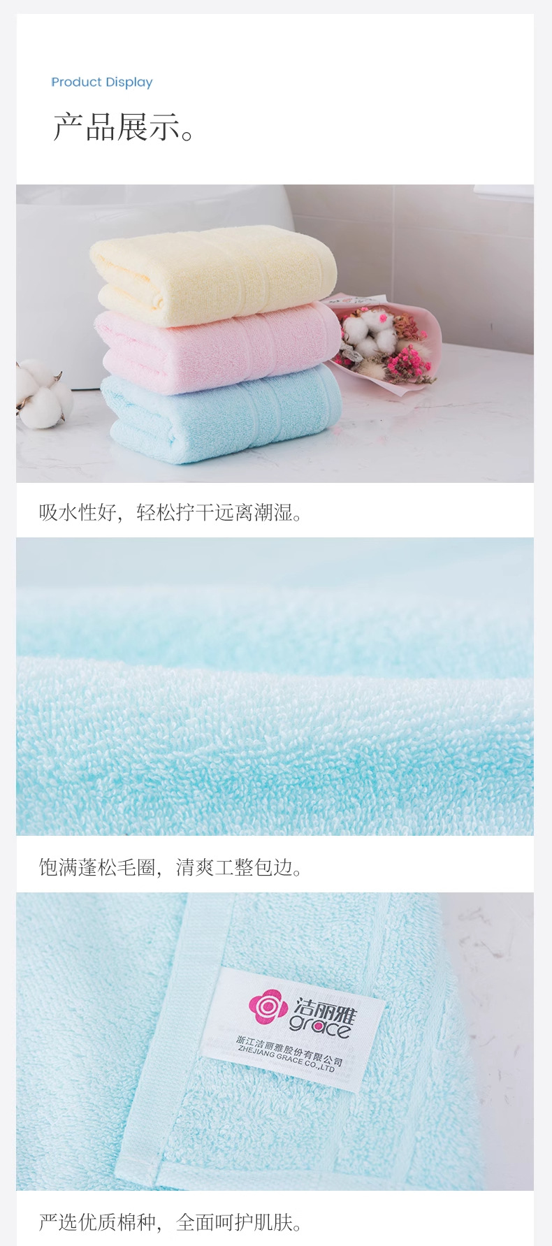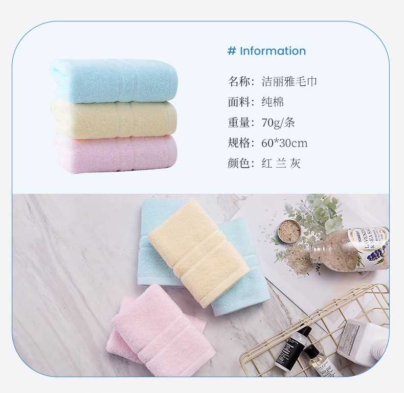 洁丽雅毛巾6734纯棉柔软吸水素色断档中巾绣字礼品回礼批发团购