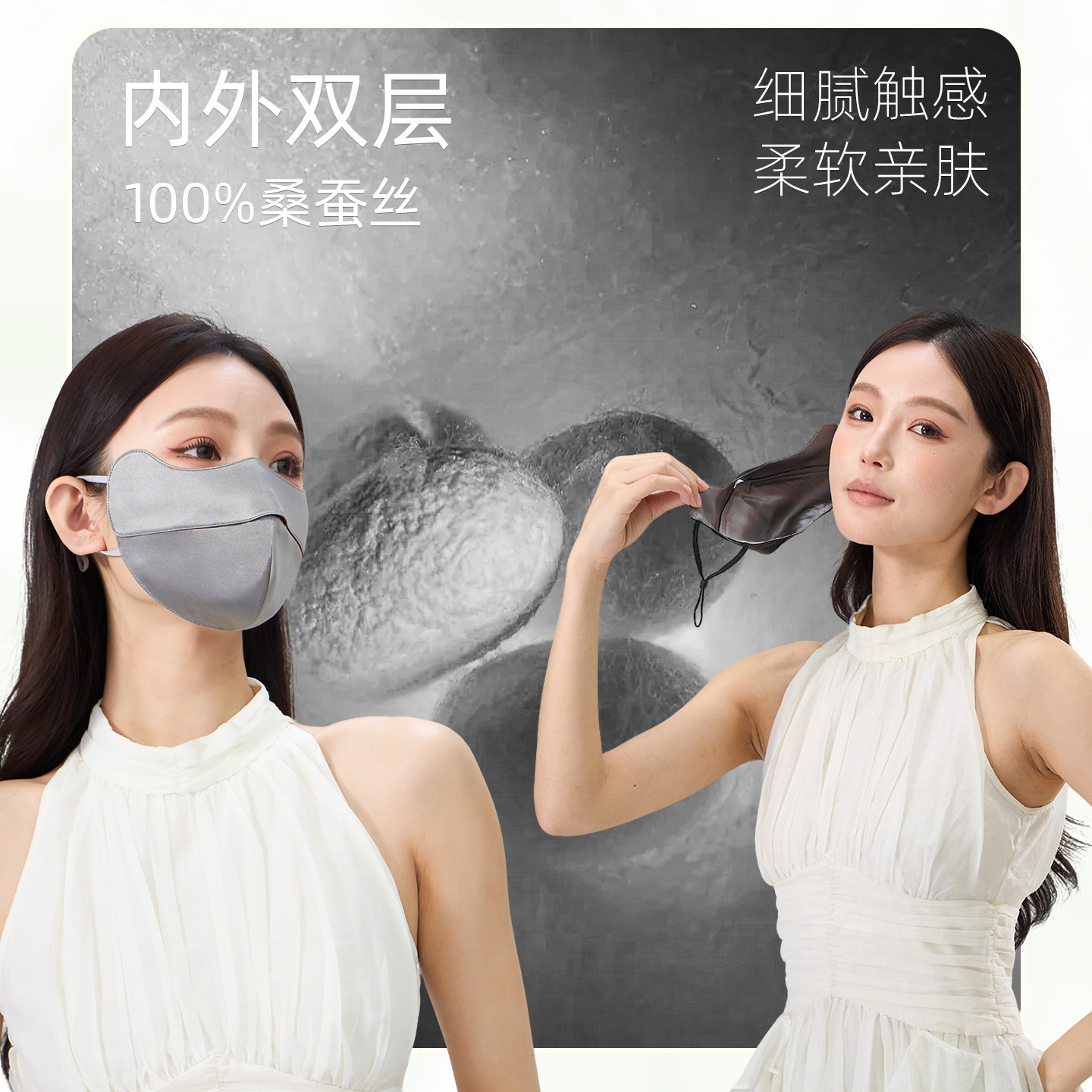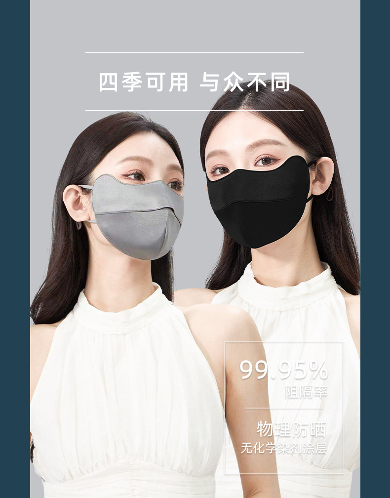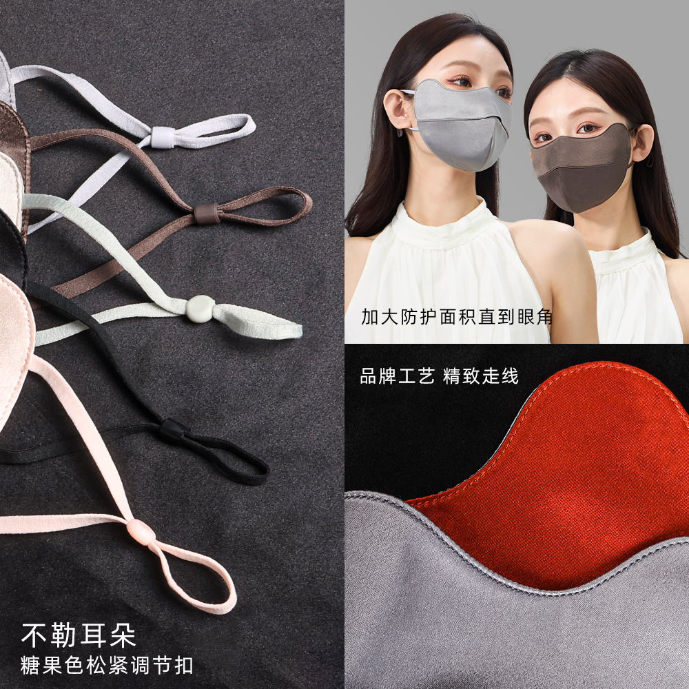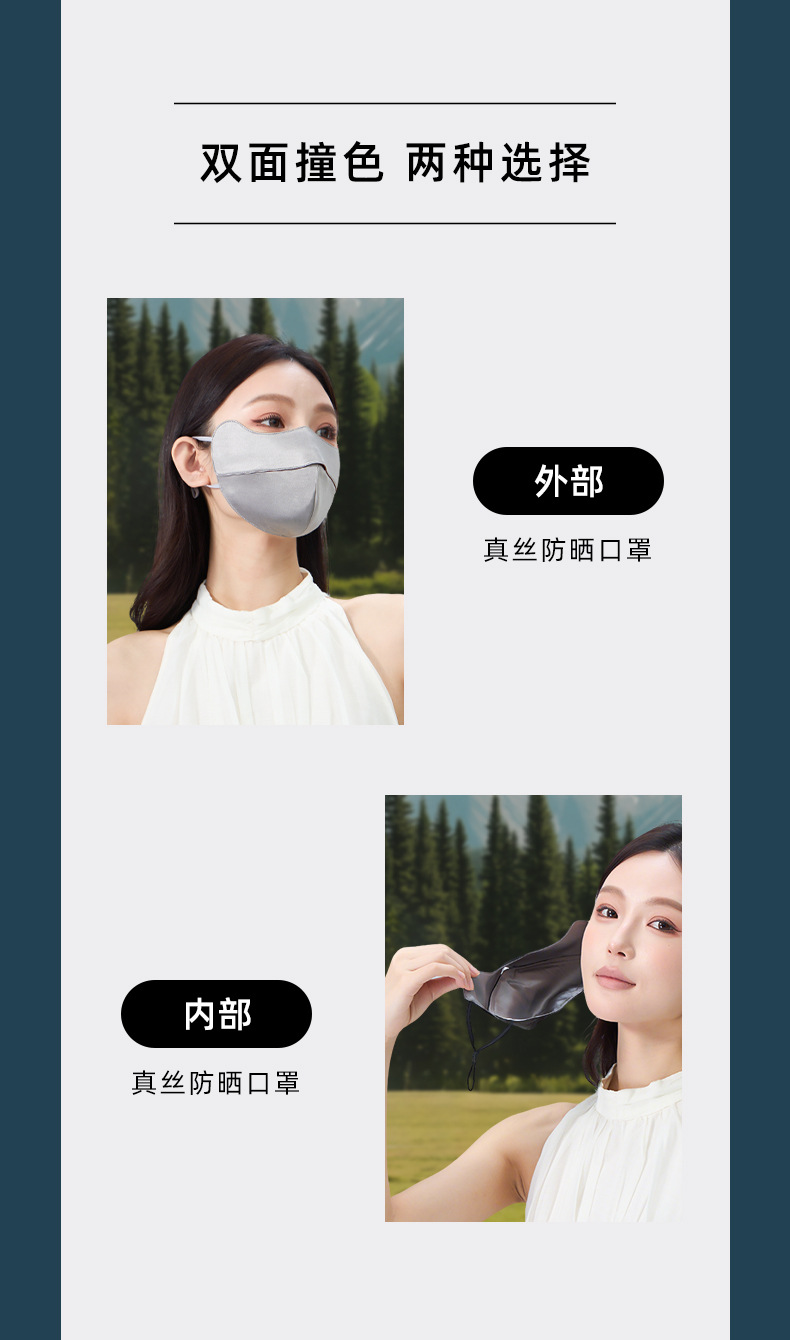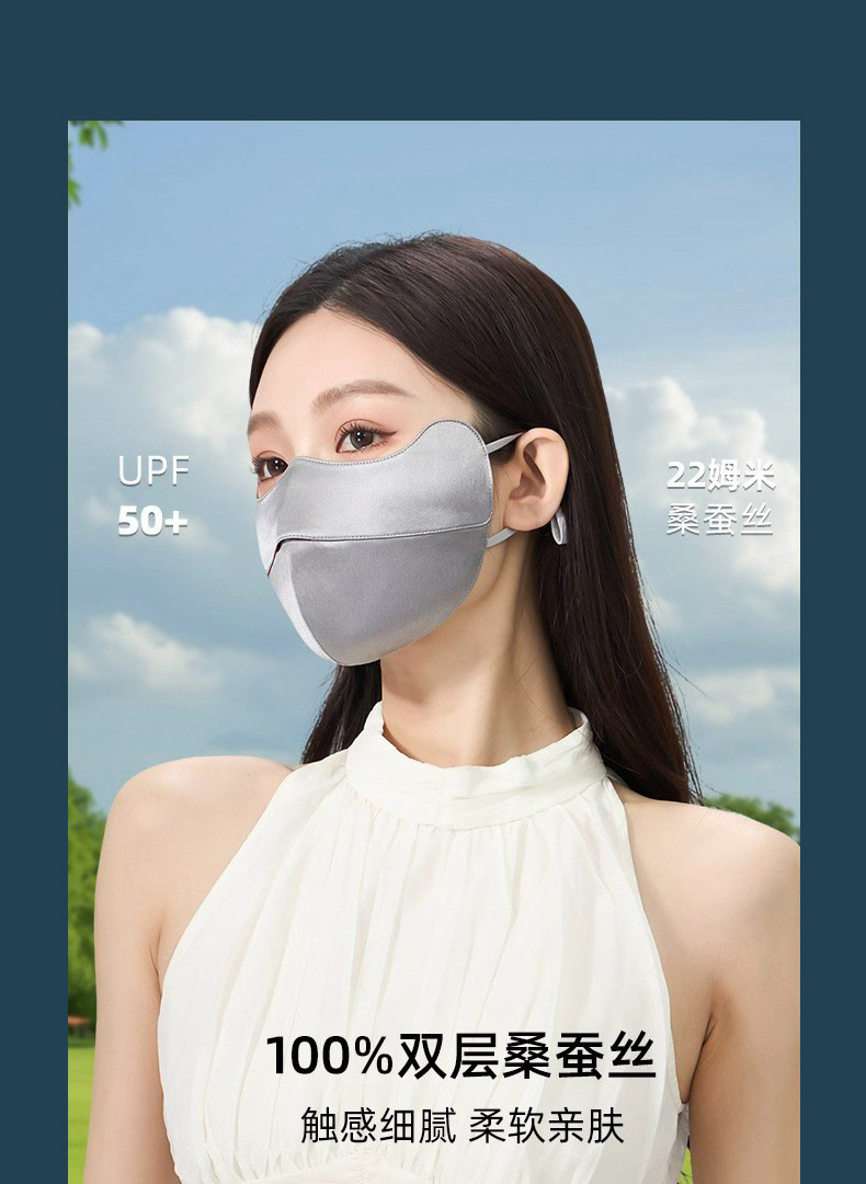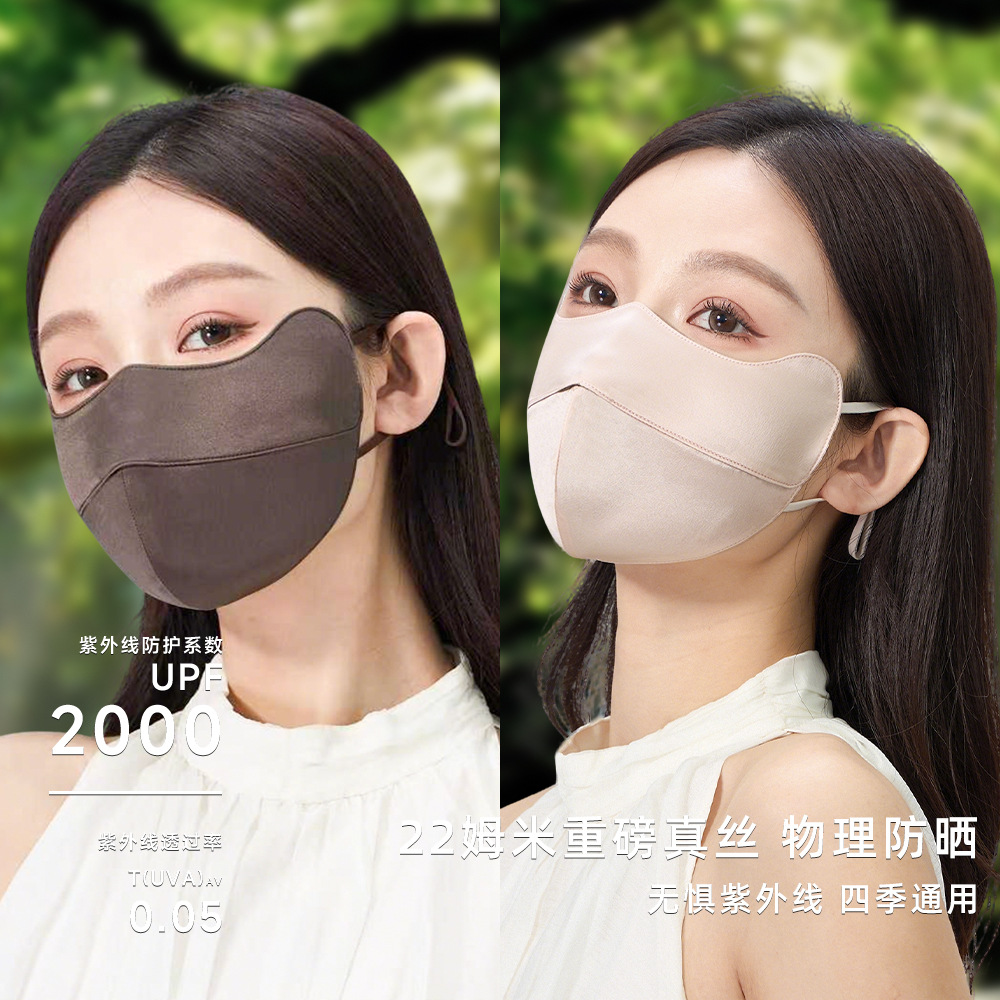 22姆米100%桑蚕丝防晒口罩女防紫外线护眼角防晒面罩双面真丝脸罩