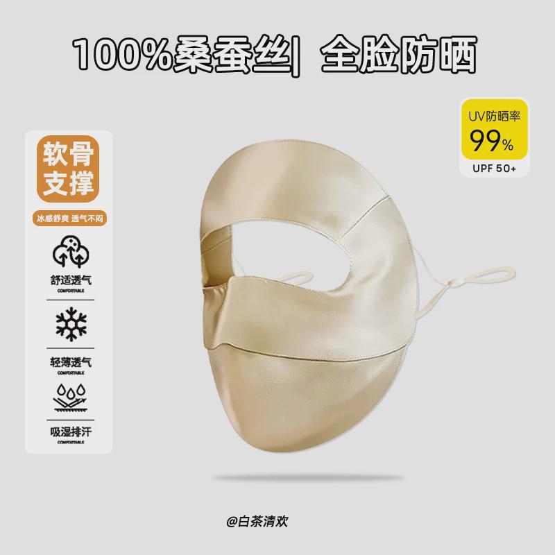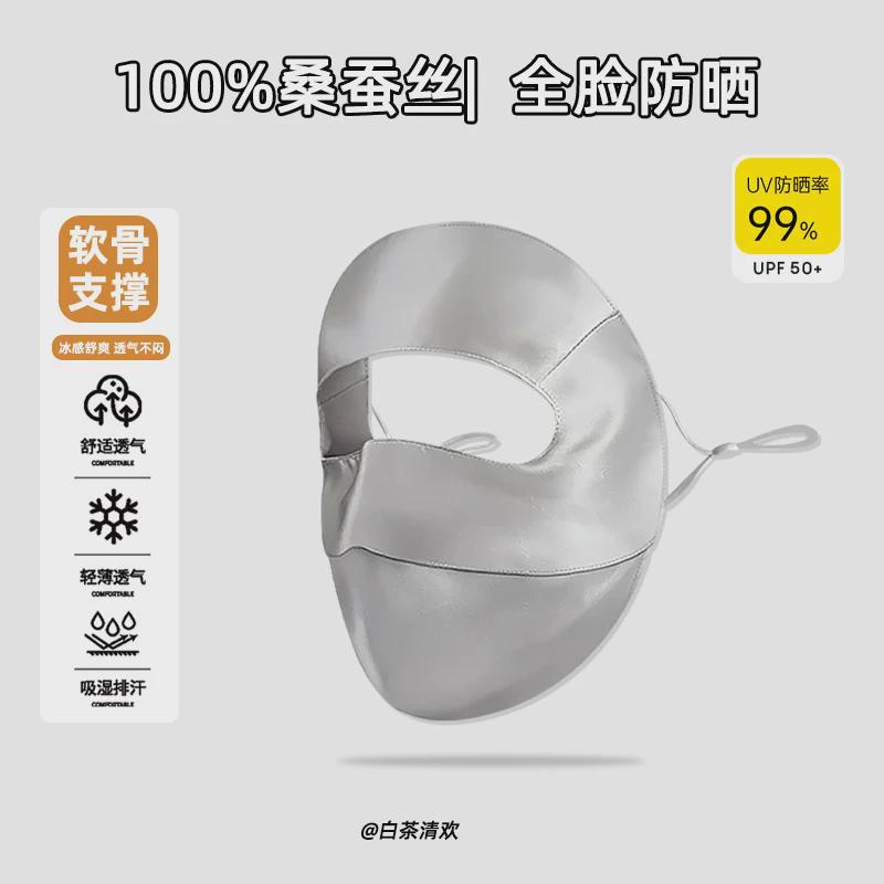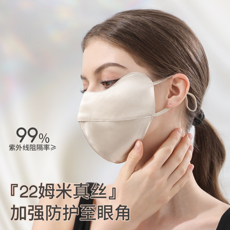 2026真丝防晒口罩夏季医美防紫外线全脸面罩脸基尼100%桑蚕丝脸罩