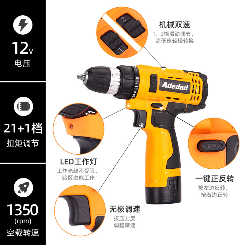 跨境厂家双速手电钻多功能锂电池手电钻大功率充电电钻电动螺丝刀