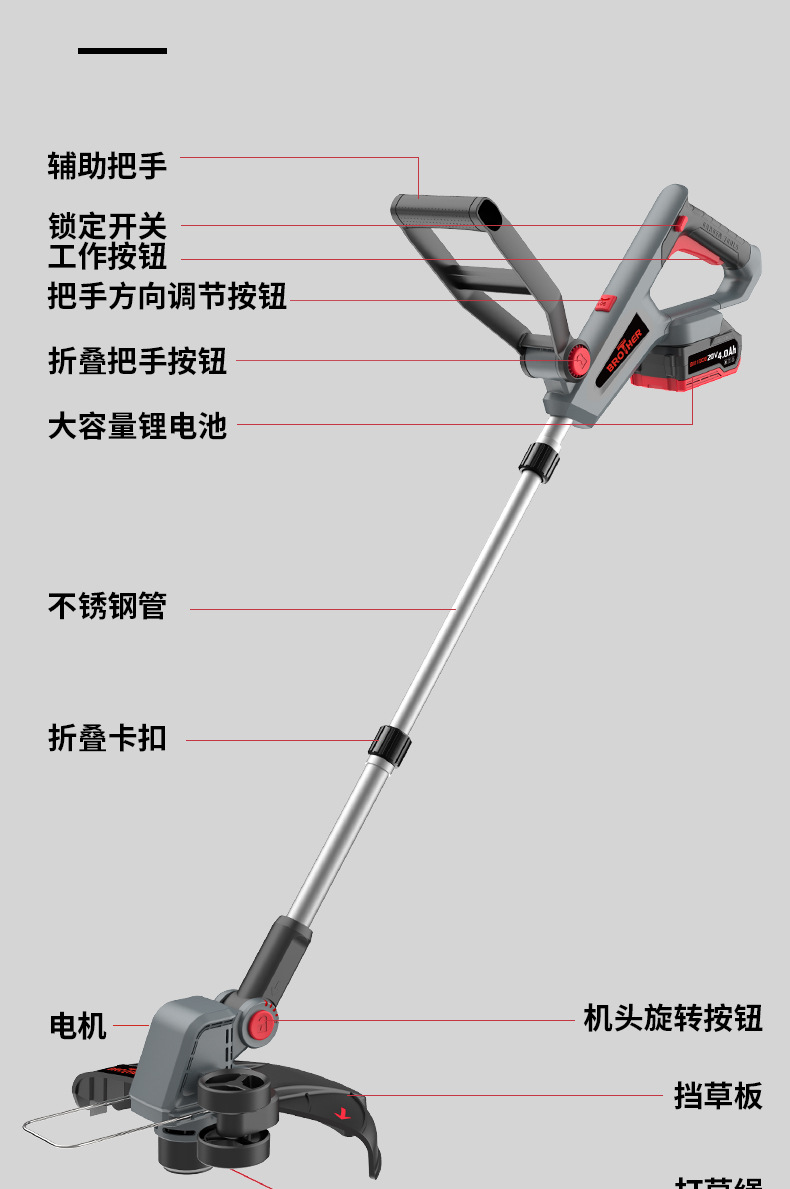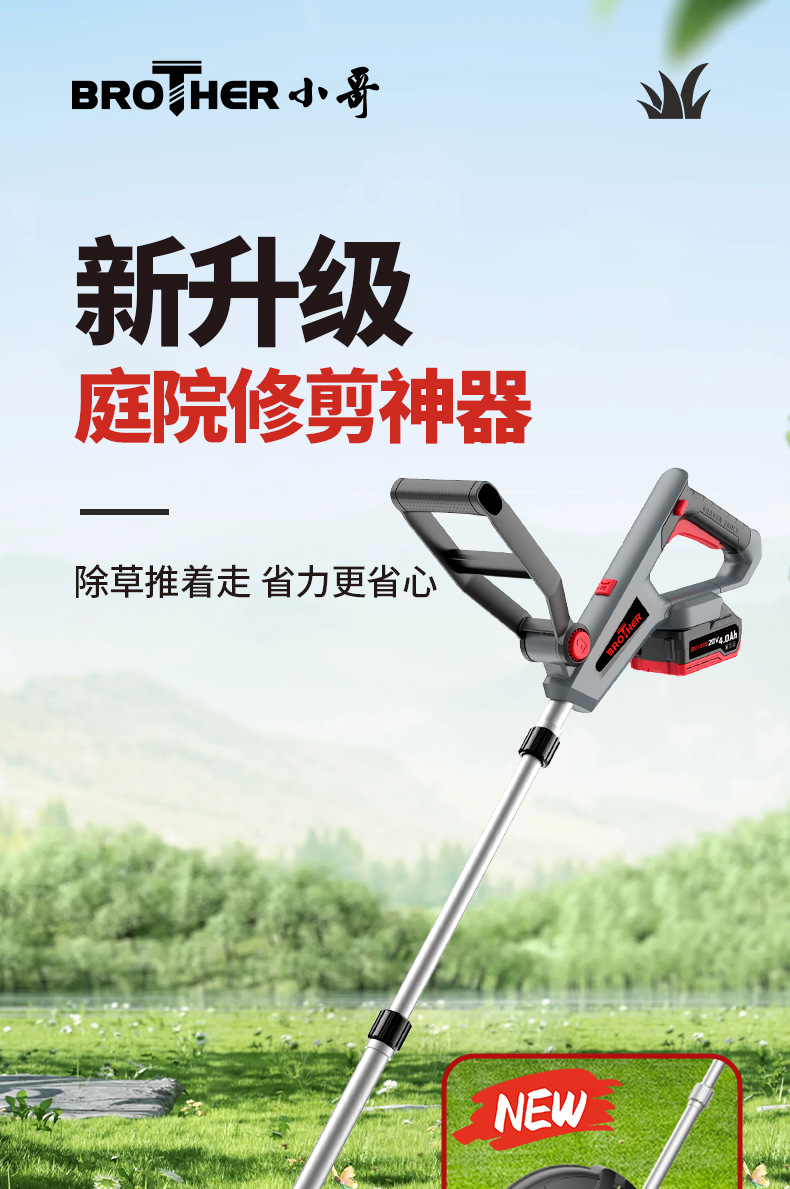 定制电动割草机手持打草机家用无线多功能锂电除草机充电草坪修剪