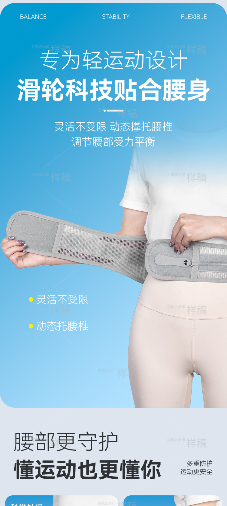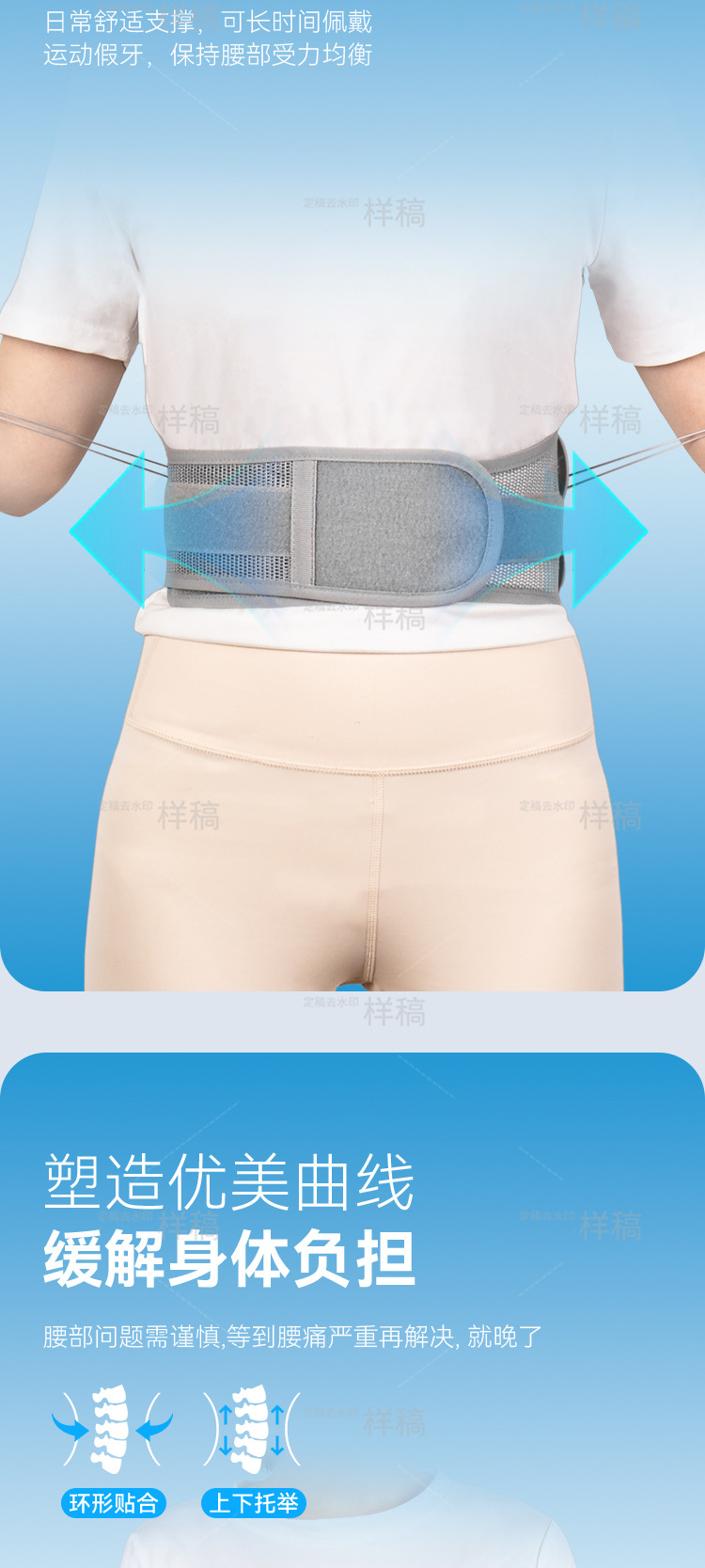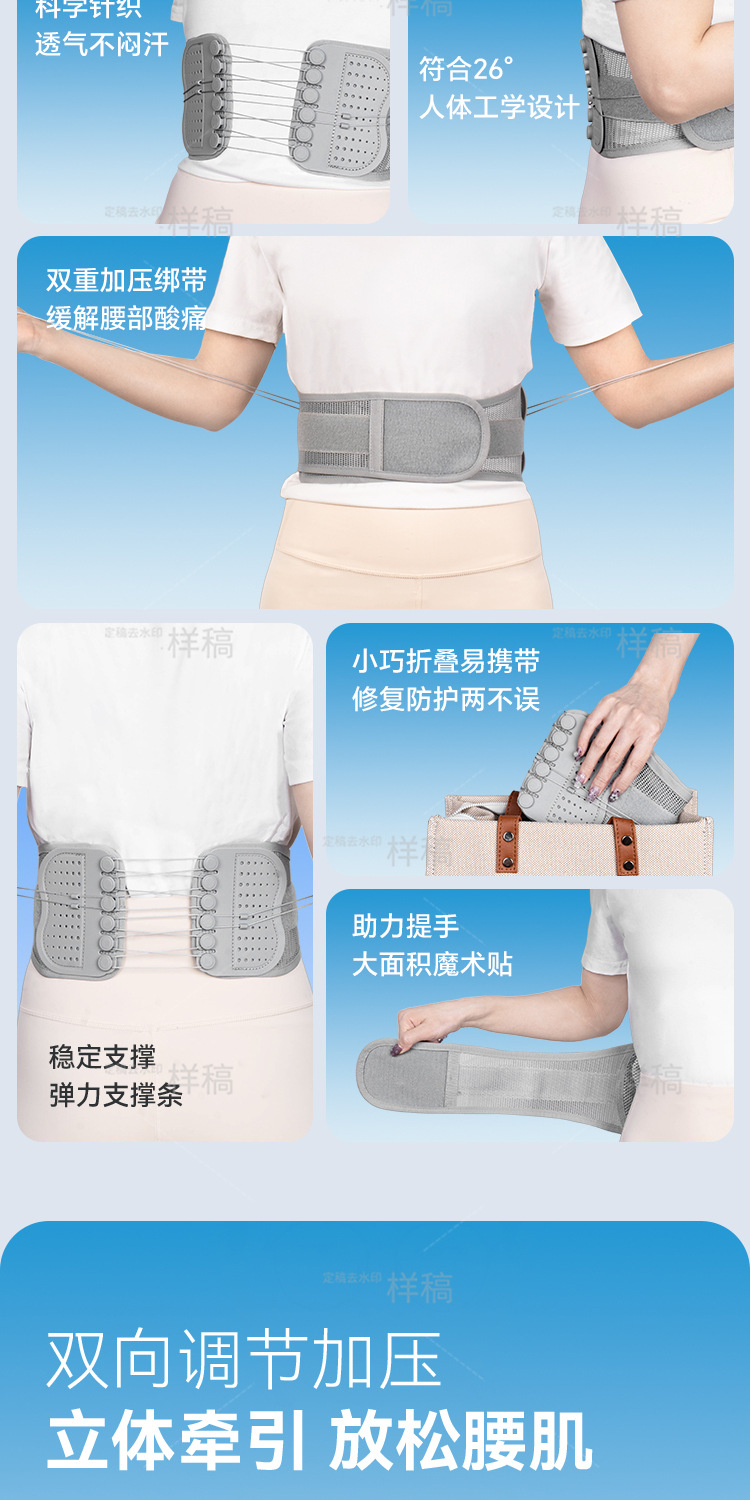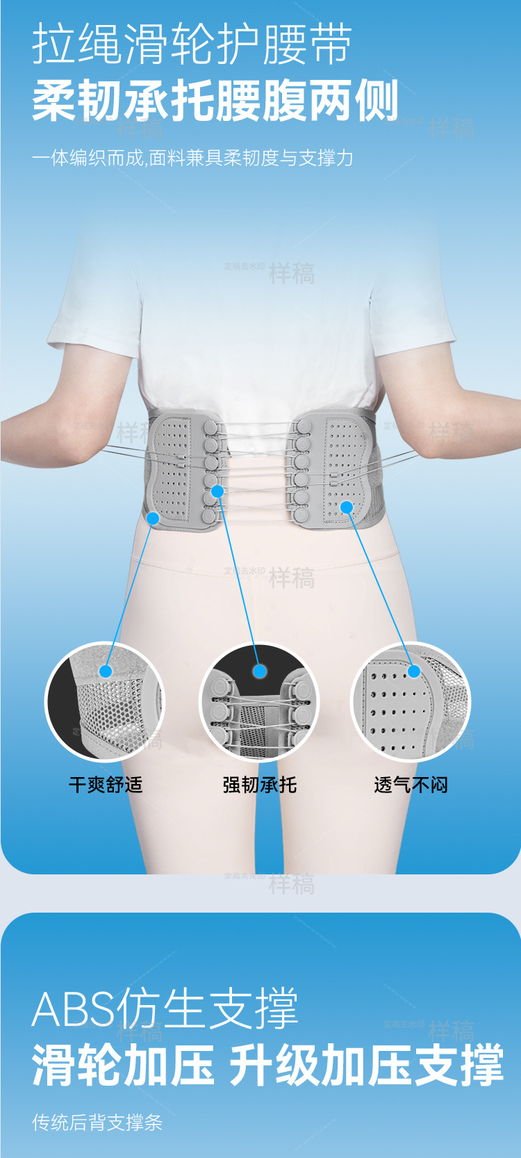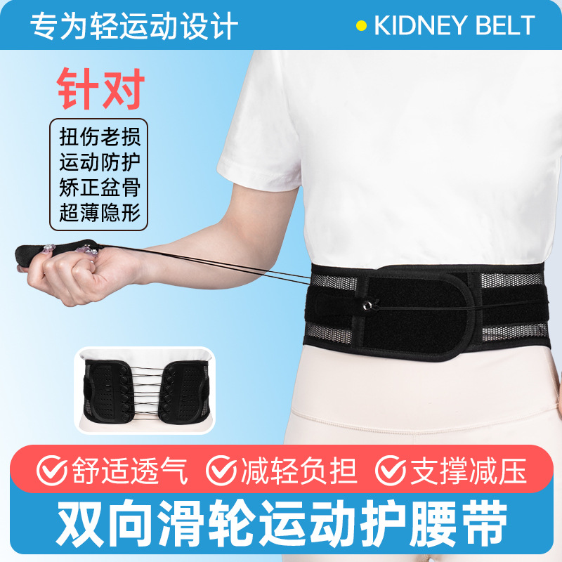 窄版拉绳护腰带双向滑轮可调节矫正带支撑腰部运动收腹束腰带四季