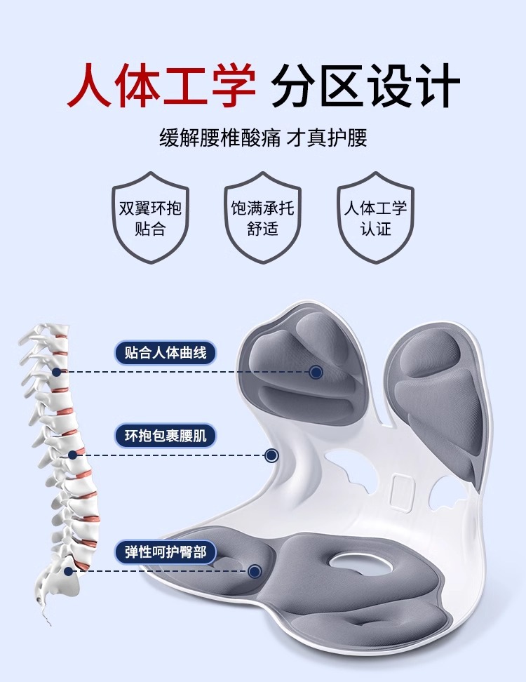 人体工学护腰坐垫靠背垫腰靠腰托腰部支撑防驼背座椅办公久坐神器
