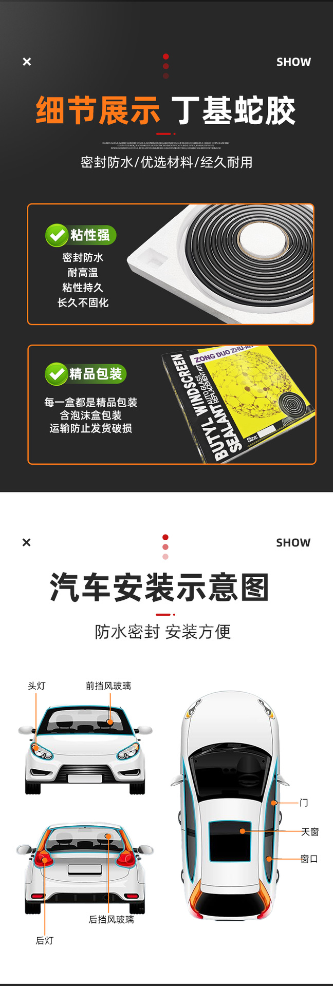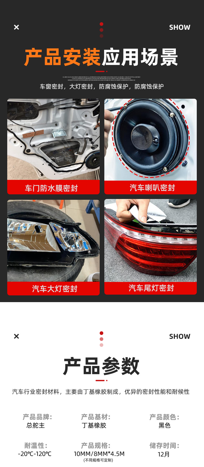 汽车大灯双面丁基蛇胶车门密封防水喇叭车灯改装环保无味丁基胶