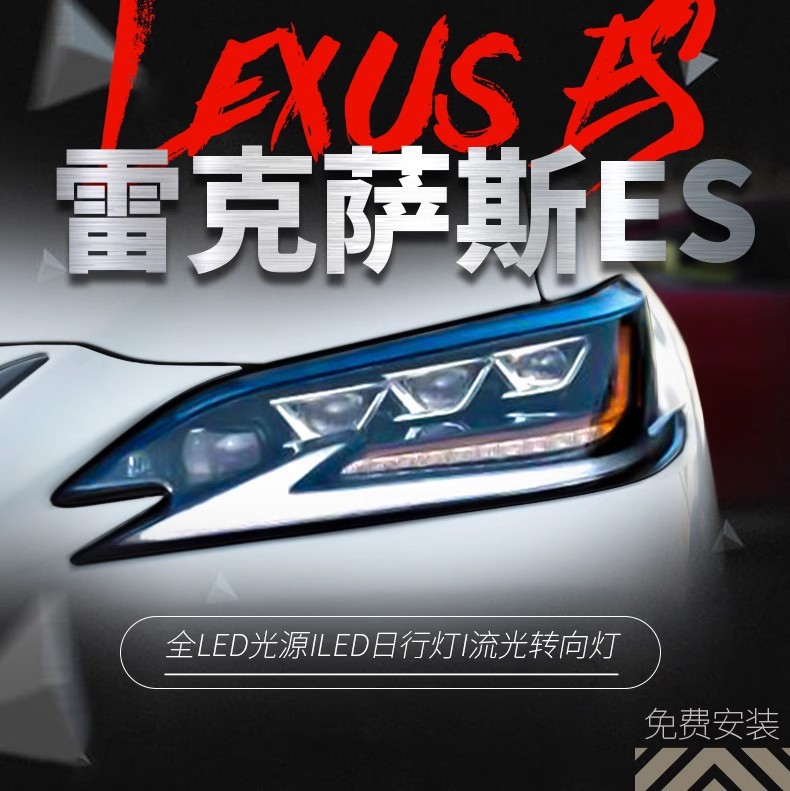 适用于LEXUS雷克萨斯ES大灯总成改装LED矩阵式流光高配三眼大灯