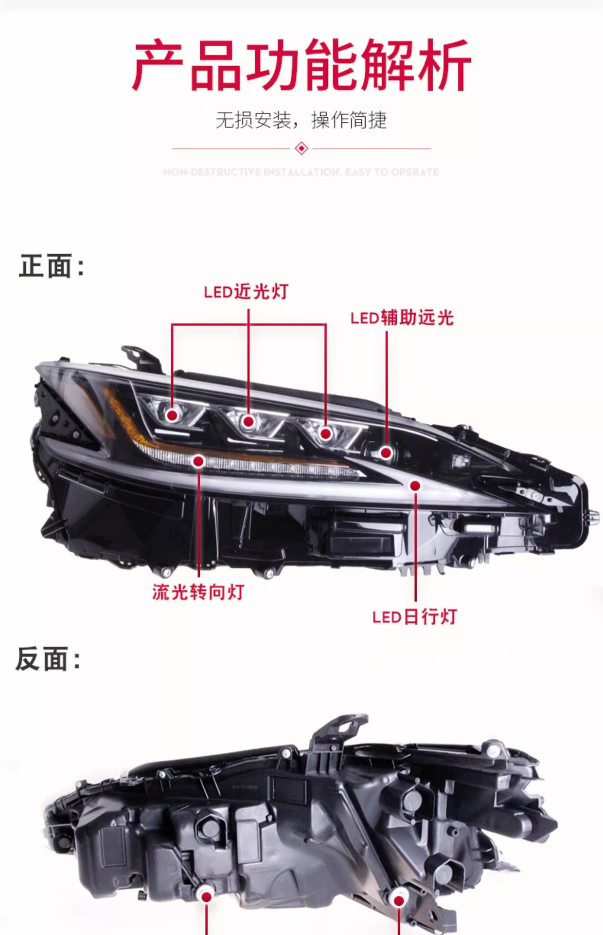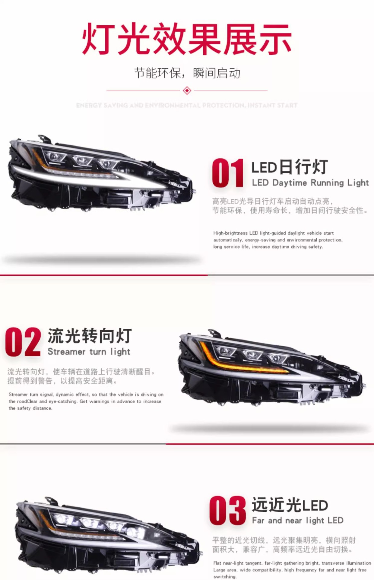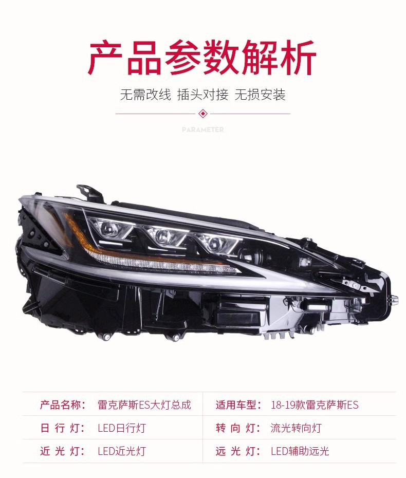 | es low-rise configuration: streamer steering three-eye matrix full led headlight assembly (one set)(ES低升高配款:流光转向三眼矩阵式全LED大灯总成(一套)) | USD $620.64 | 99999 set available |