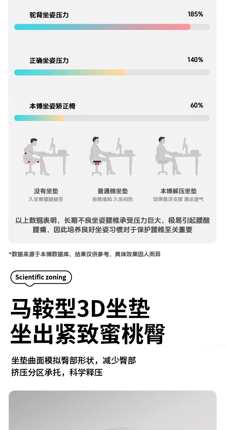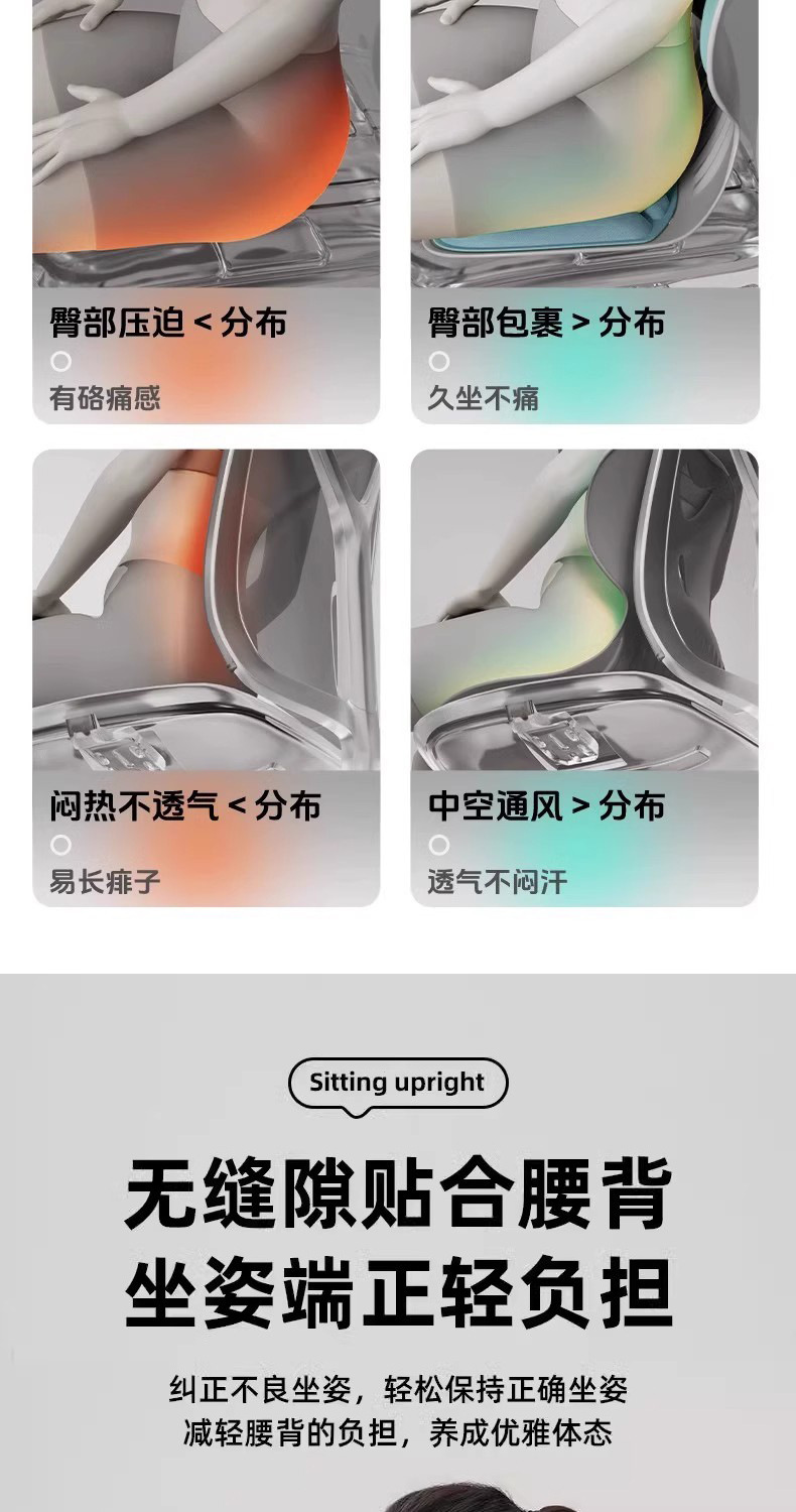 办公室护腰坐垫学生美臀新款腰靠人体工学椅子矫姿垫美臀护腰