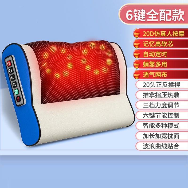 新款劲椎头部按摩枕多功能热敷家用按摩器揉捏肩颈腰部背部批发