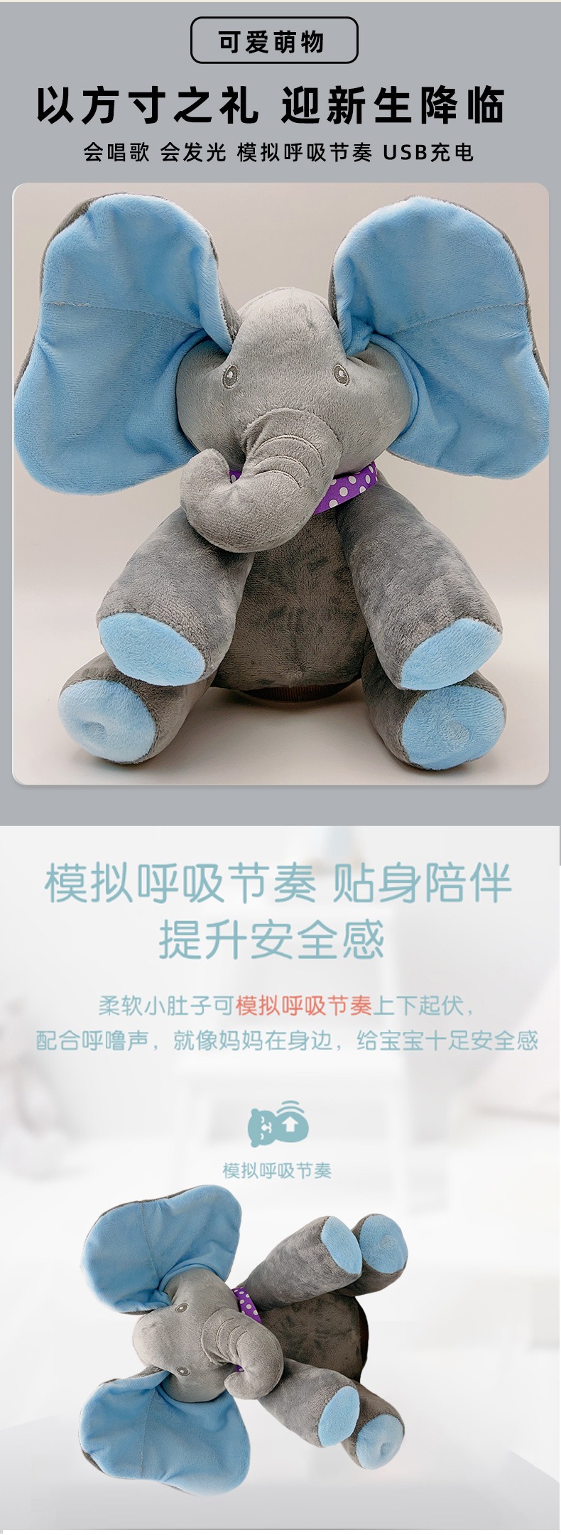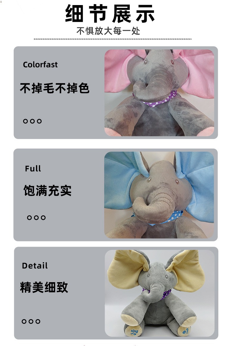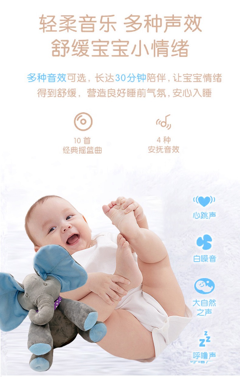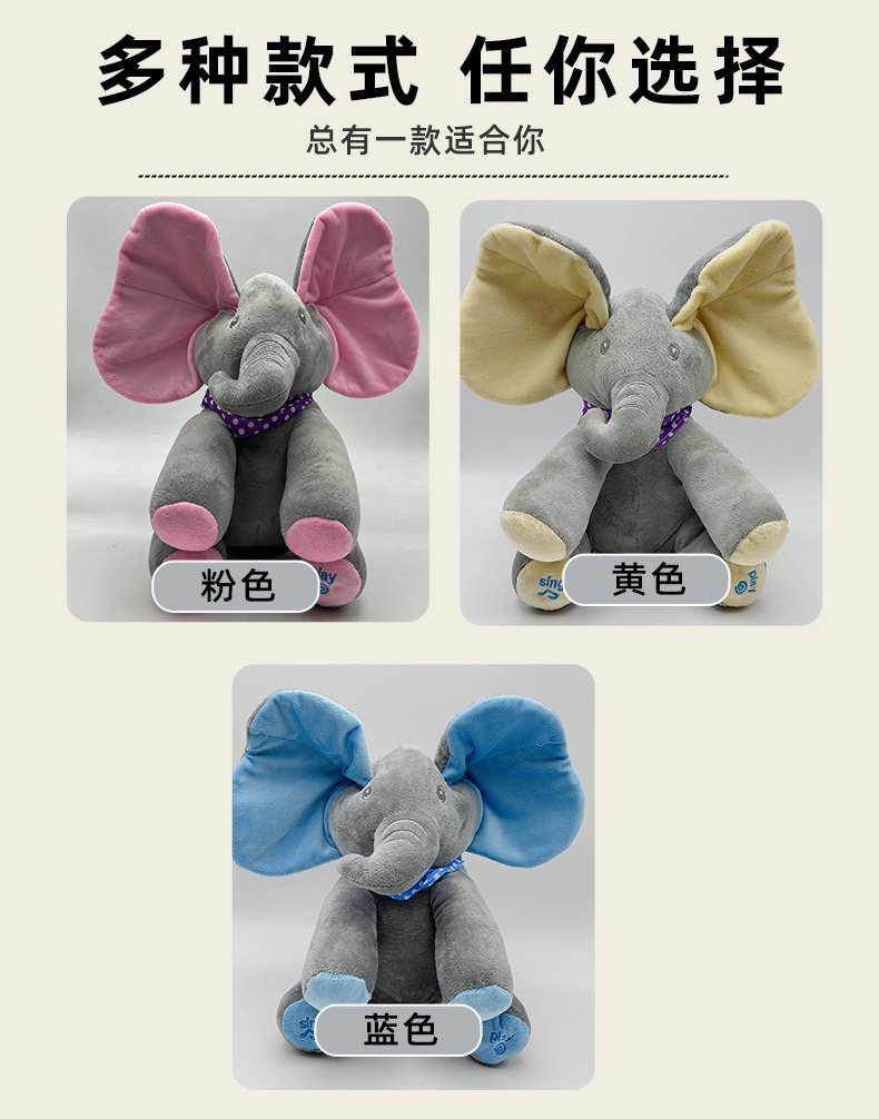 跨境供应电动大象躲猫猫音乐玩具捂眼睛小飞象婴儿宝宝安抚玩具