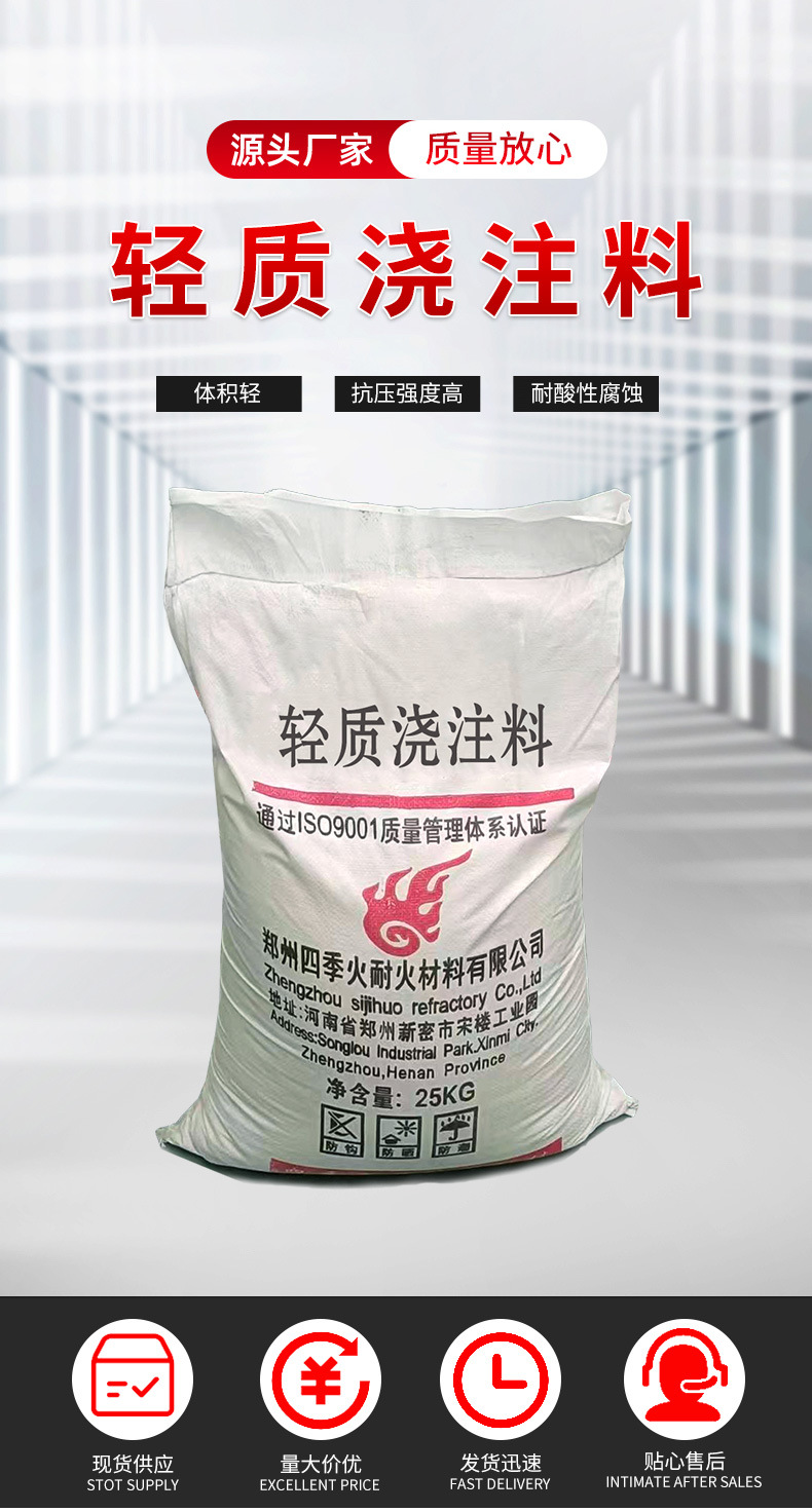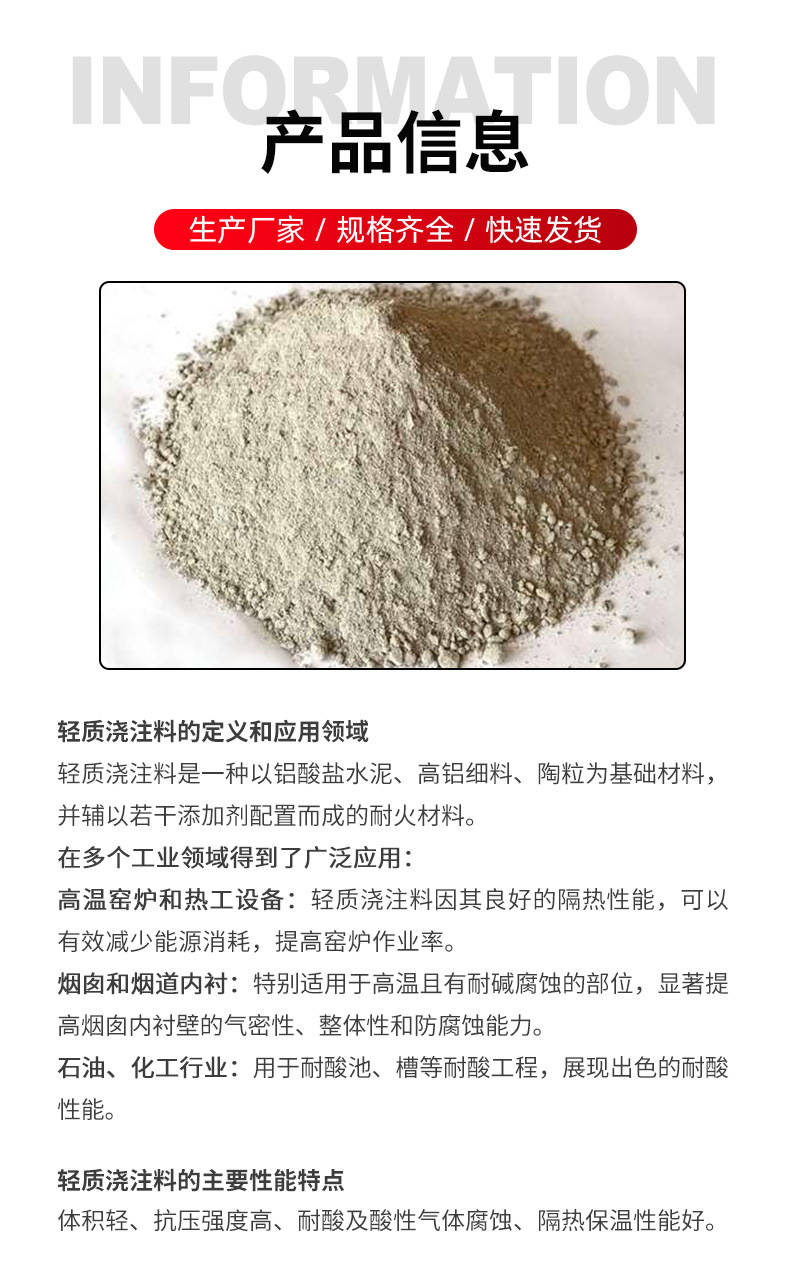 批发轻质耐火浇注料耐材工厂直供体密0.6-1.5隔热轻质耐火浇注料