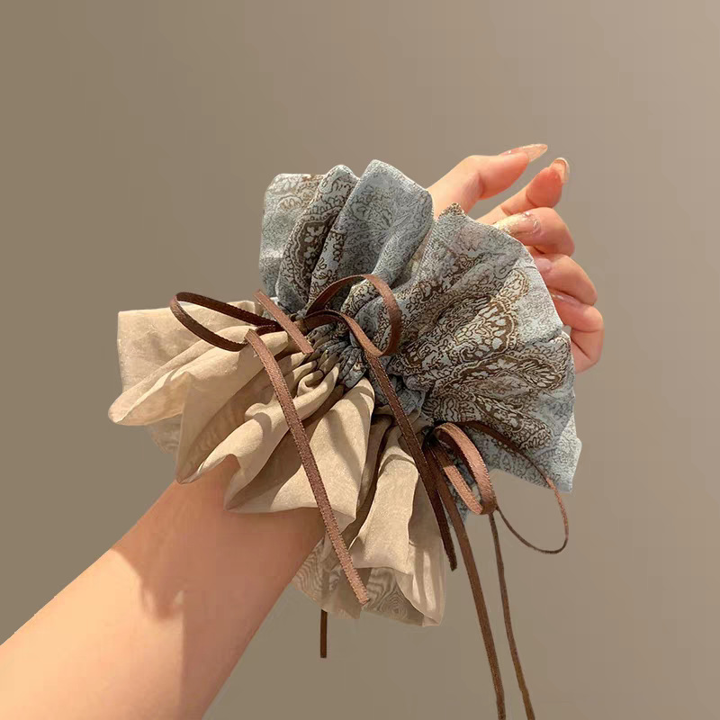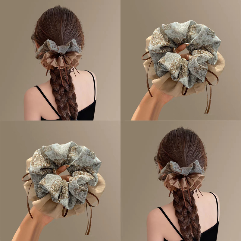 2025新款高级感复古碎花飘带大肠发圈大号丸子头头绳扎头皮筋发绳