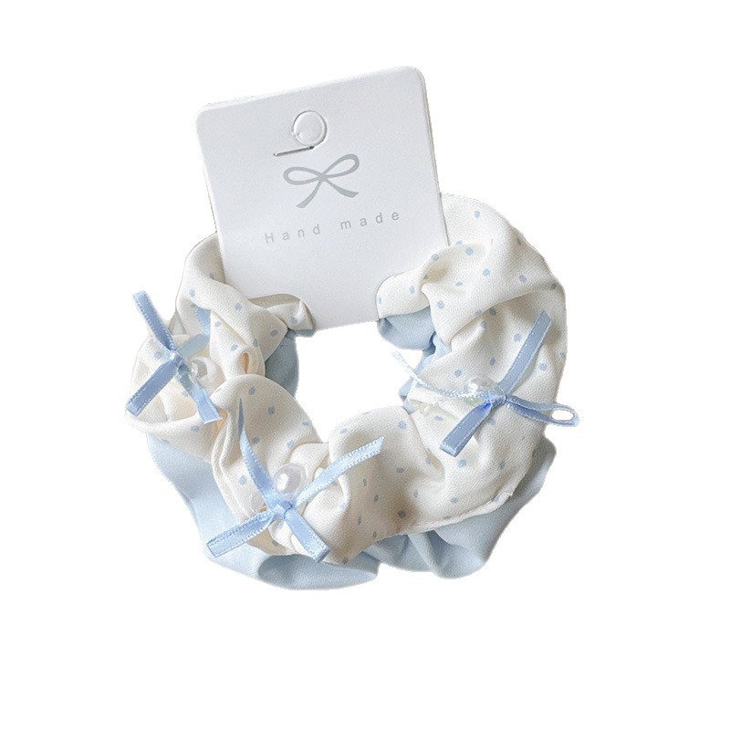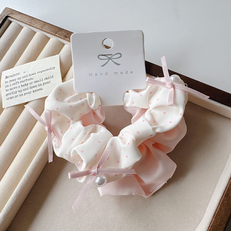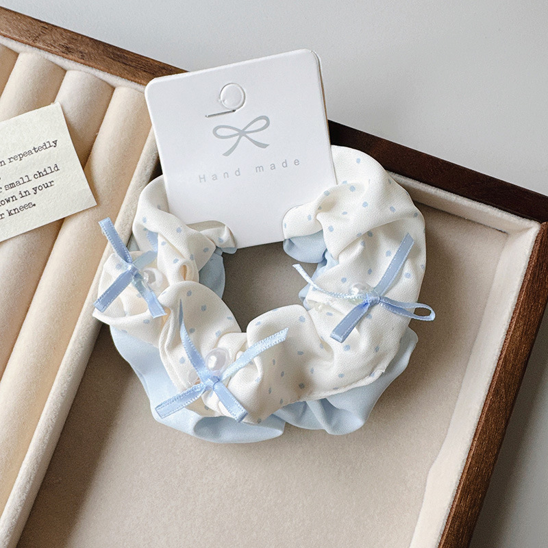 2条装浅色波点蝴蝶结大肠发圈简约小清新学生学院发绳丸子头发饰