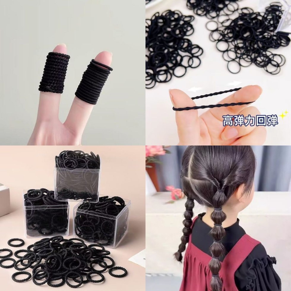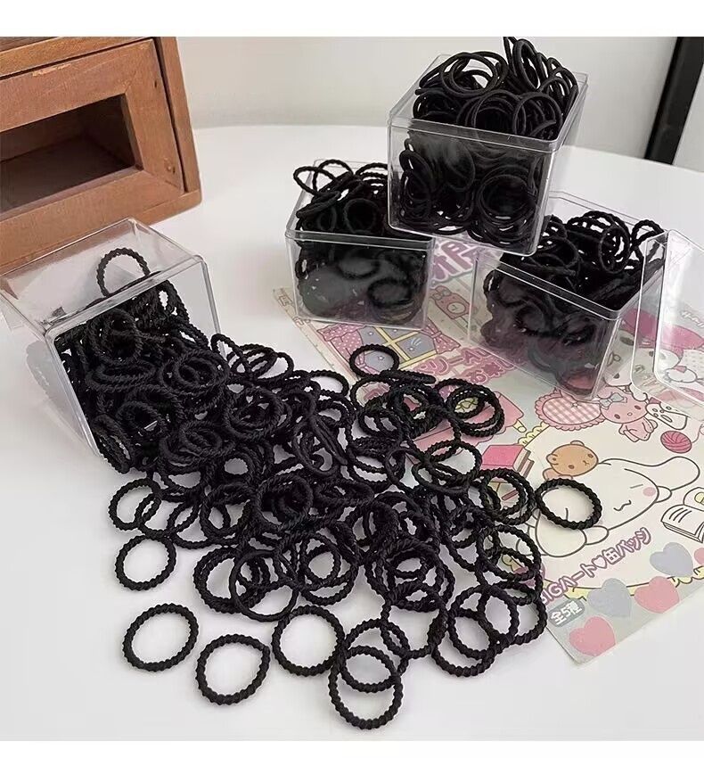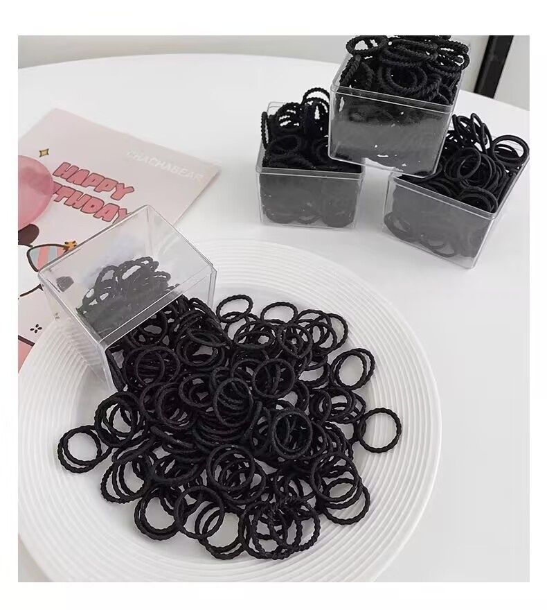 黑色小圈皮筋不伤发小女孩头发耐用拇指发圈头绳小号橡皮筋发饰