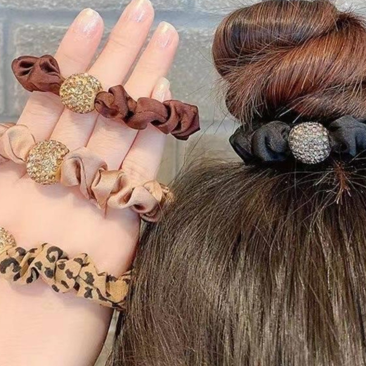 网红水钻发绳高弹橡皮筋成人扎头绳纯色豹纹气质发绳小肠发圈头饰