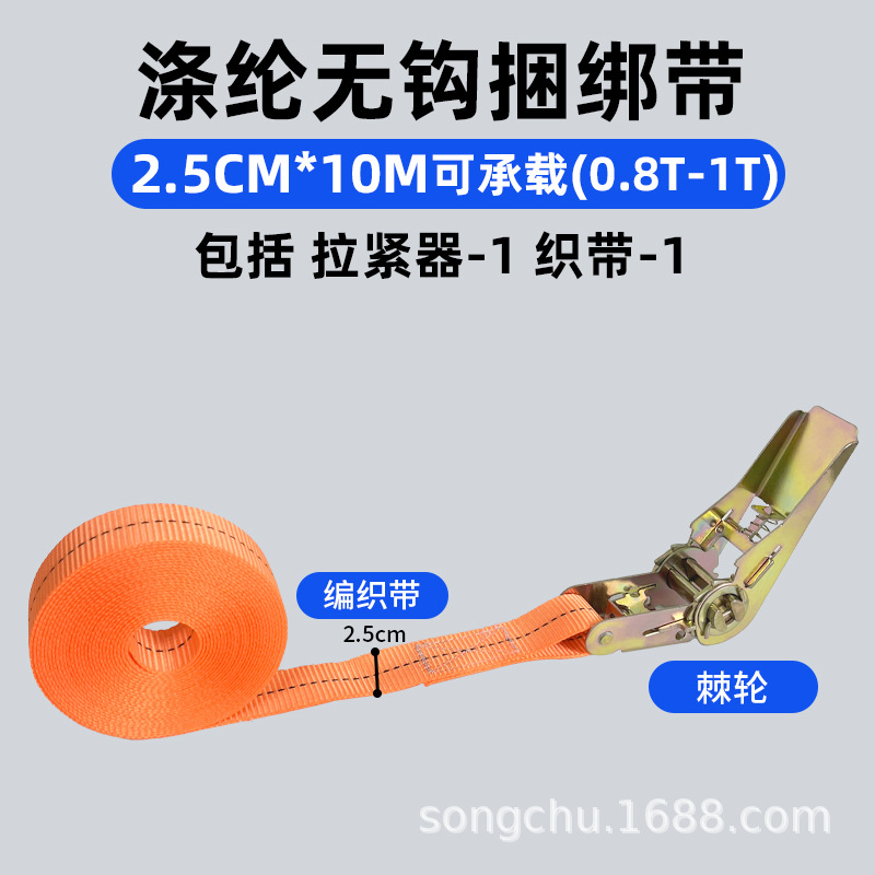 厂家直销涤纶无钩捆绑带加厚固定货物车顶紧线器货车固定收紧器