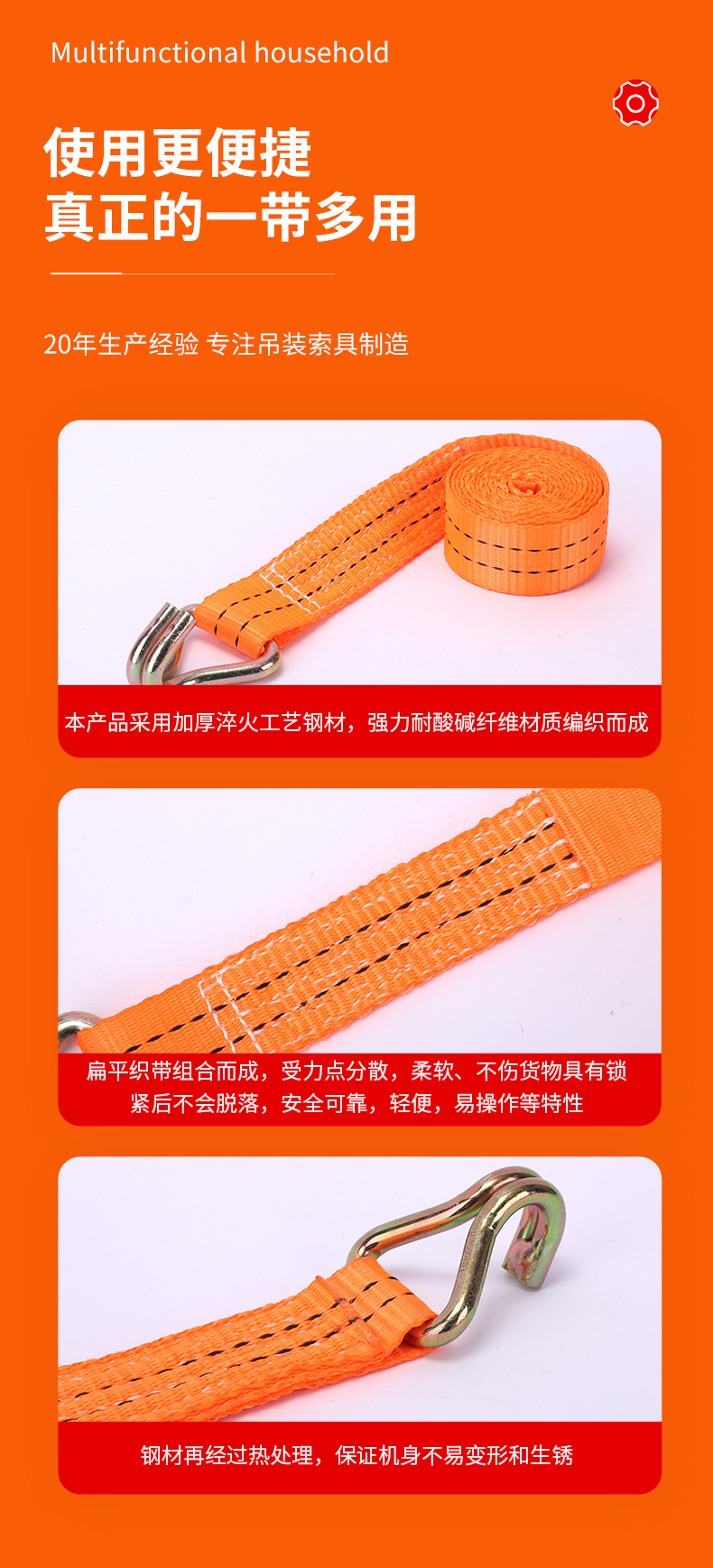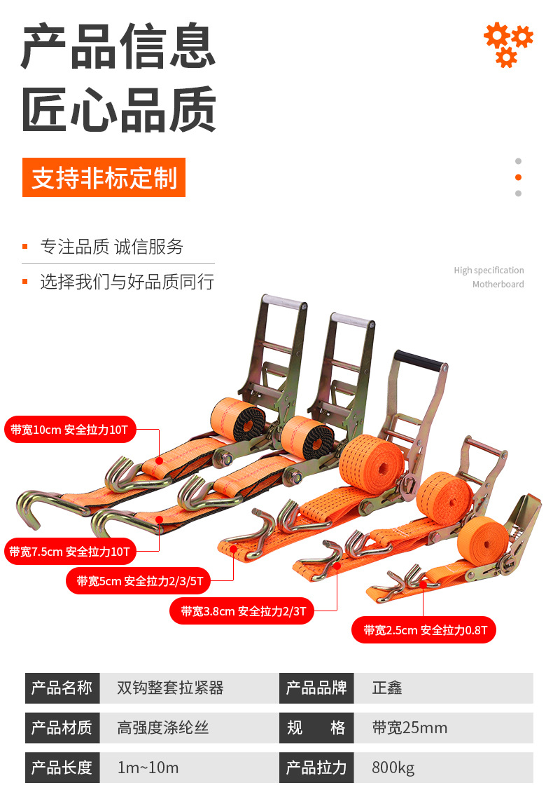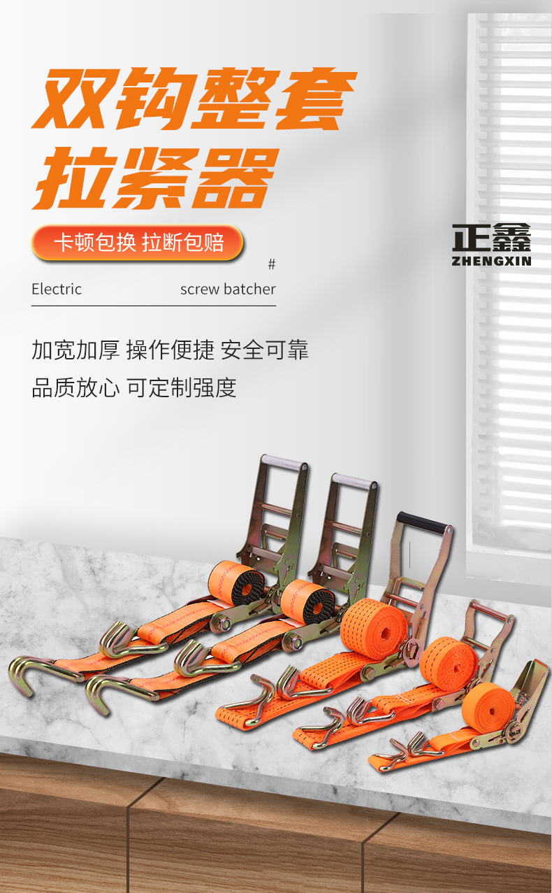 棘轮拉紧器捆绑带货物拉紧器货物固定双钩整套货物捆绑器