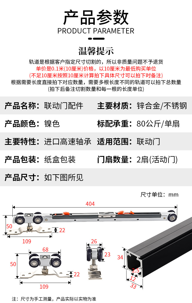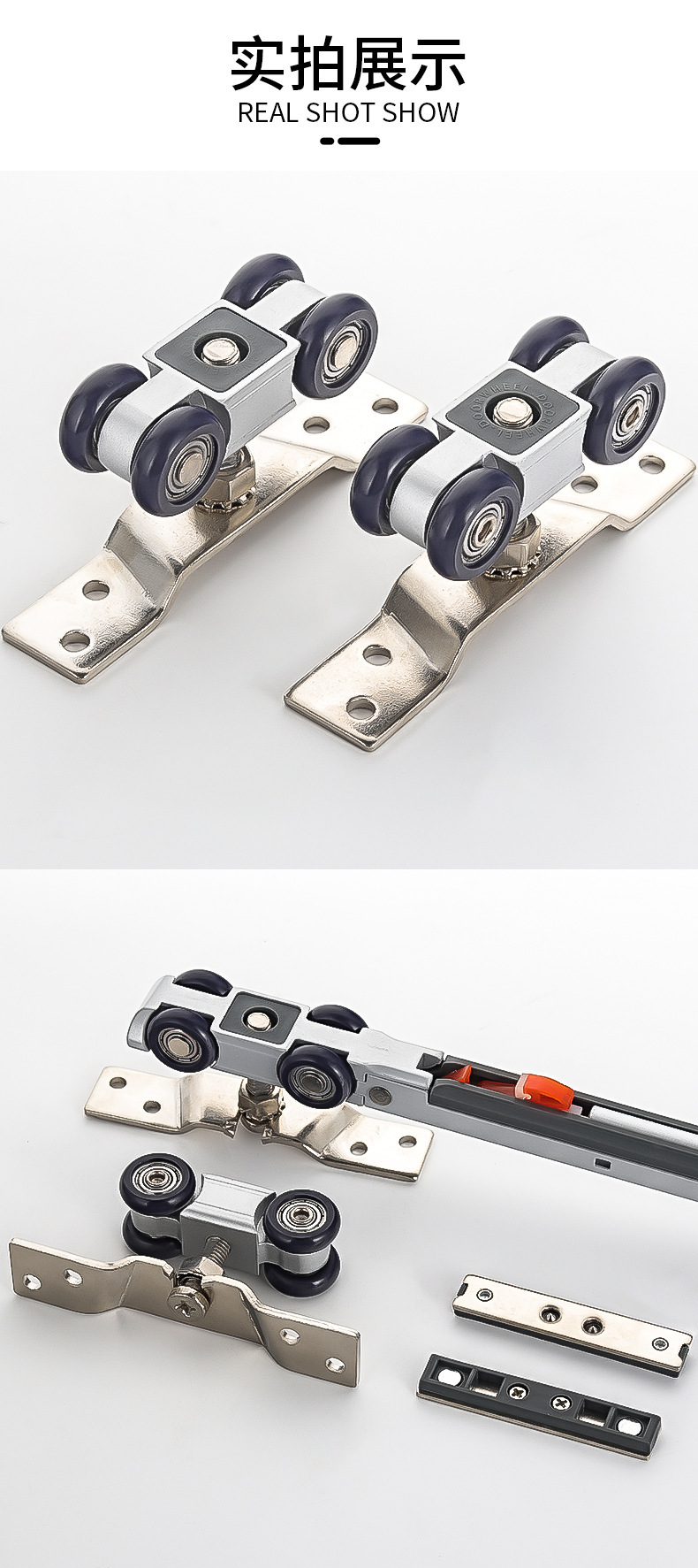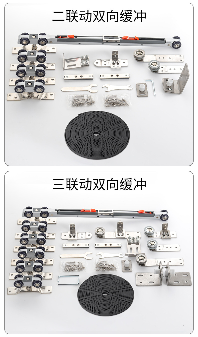 二联动推拉门三联动移门吊轨道滑轮双向缓冲联动门吊轮配件
