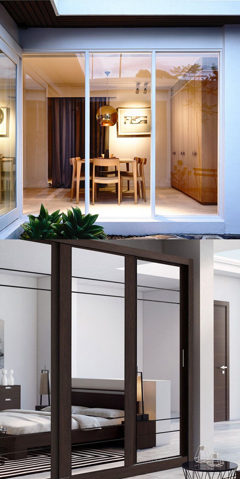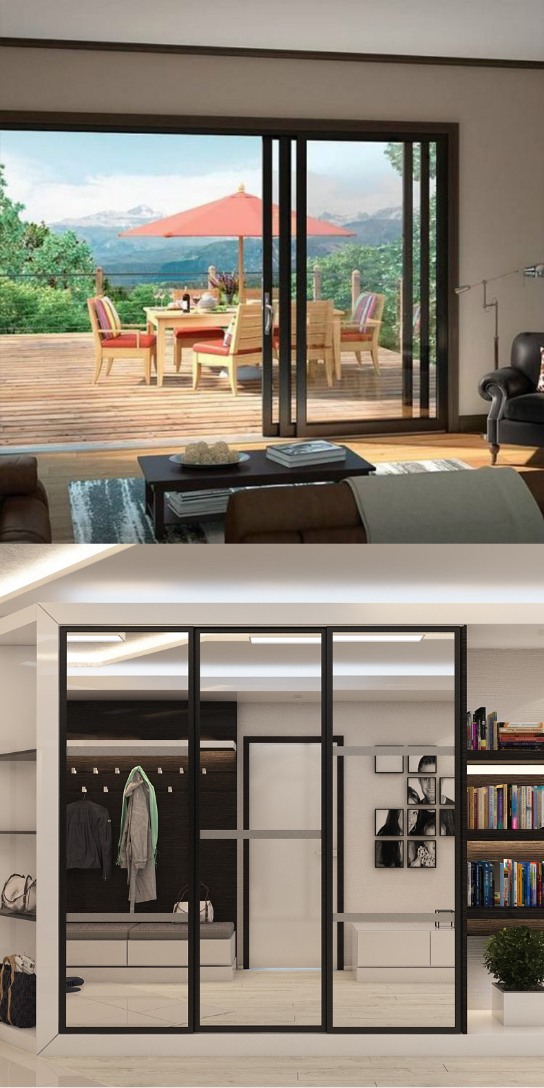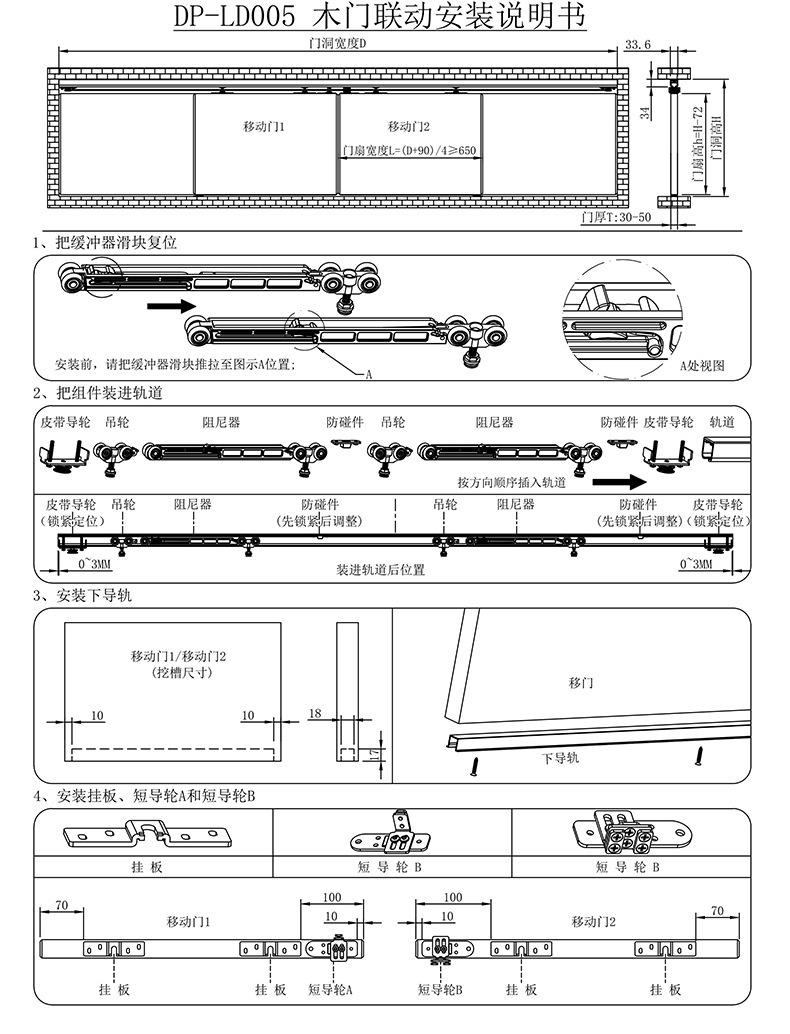 二联动推拉门三联动移门吊轨道滑轮双向缓冲联动门吊轮配件