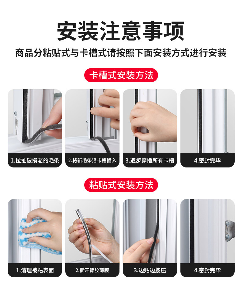 推拉窗密封条铝合金塑钢门窗门缝毛条玻璃条窗户挡风神器防风封条