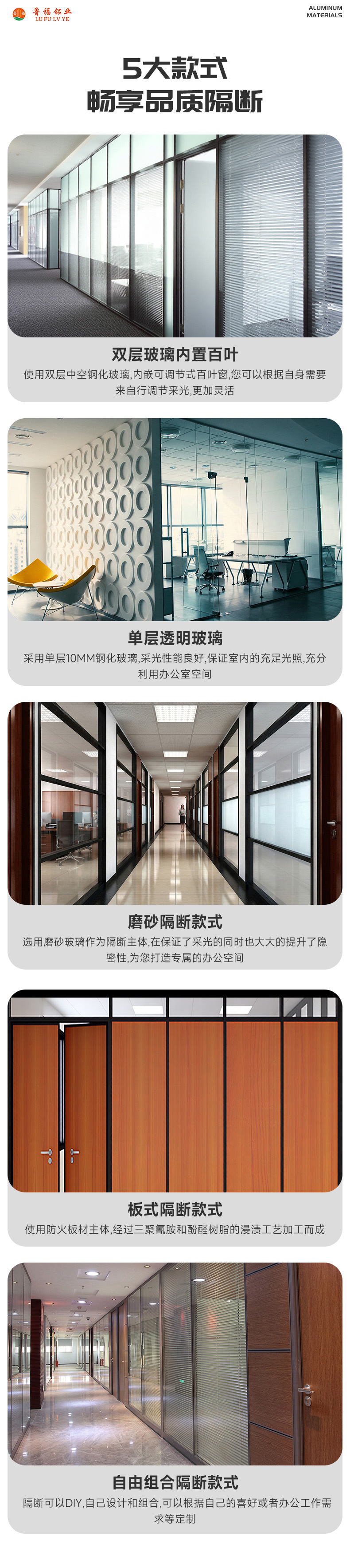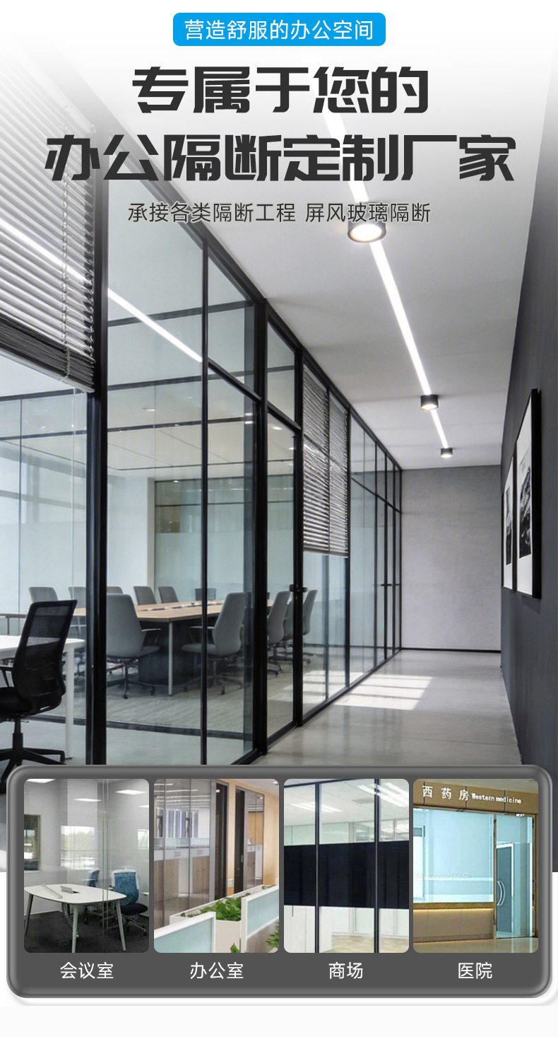 全铝隔断单双玻百叶办公隔断铝合金隔断写字楼磨砂隔音钢化玻璃