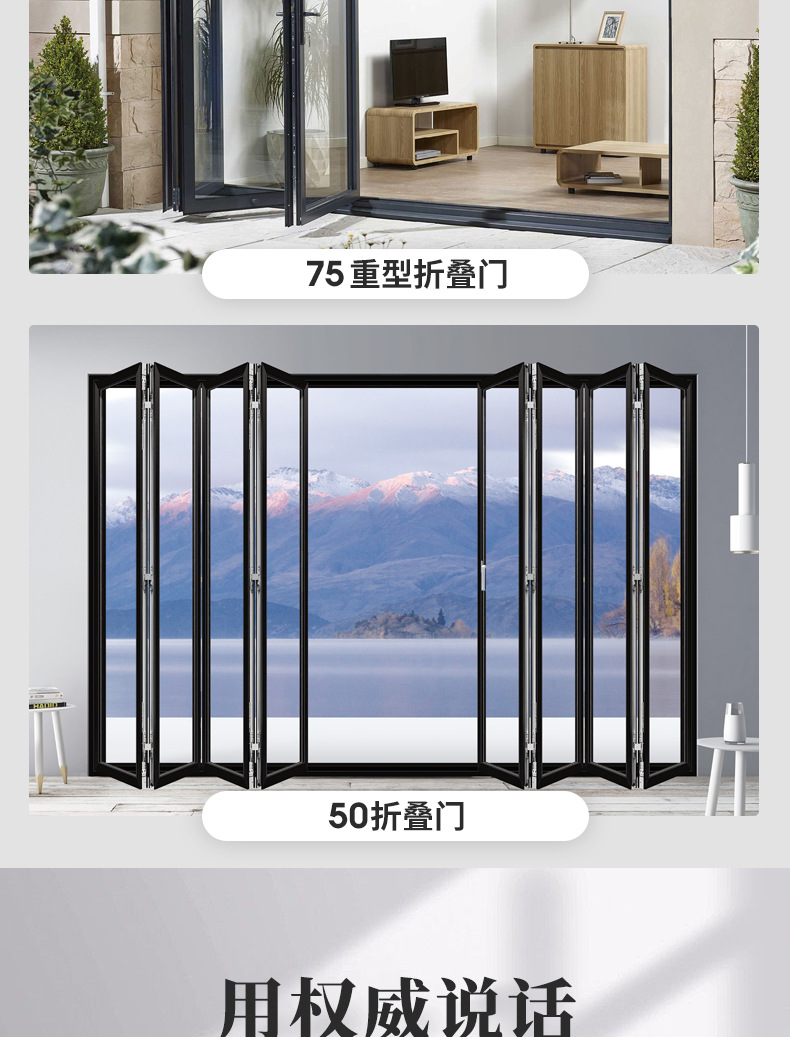 重型铝合金折叠门家用别墅阳台平移推拉门商铺车库隔断门玻璃门