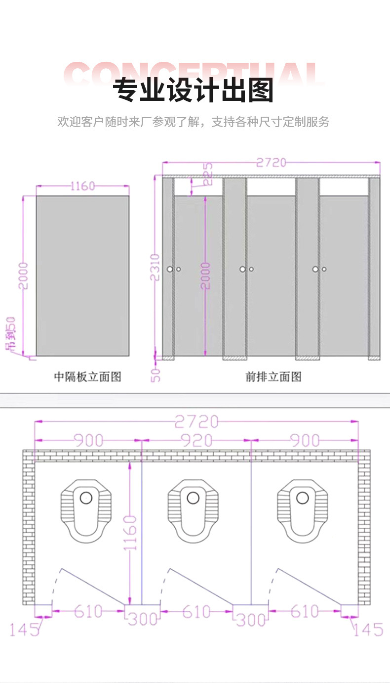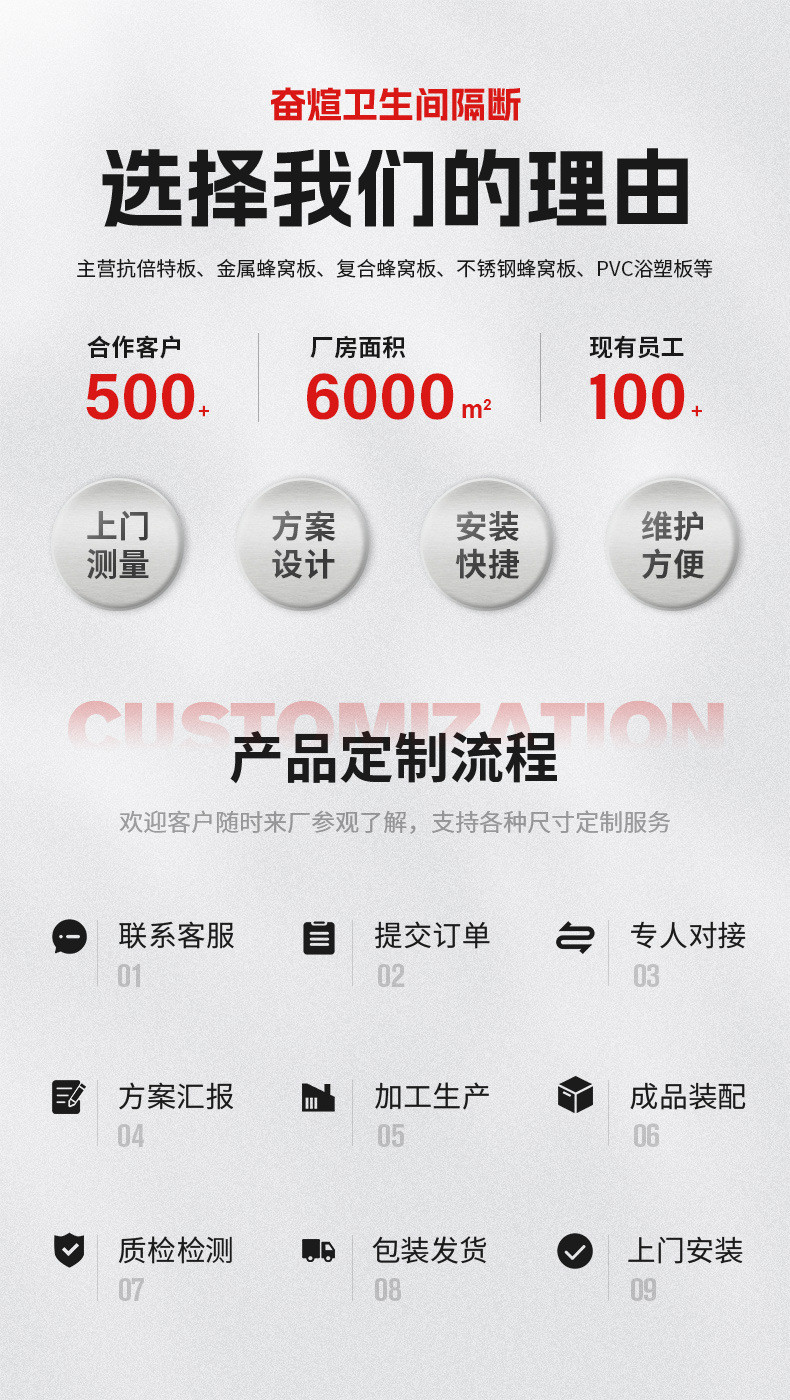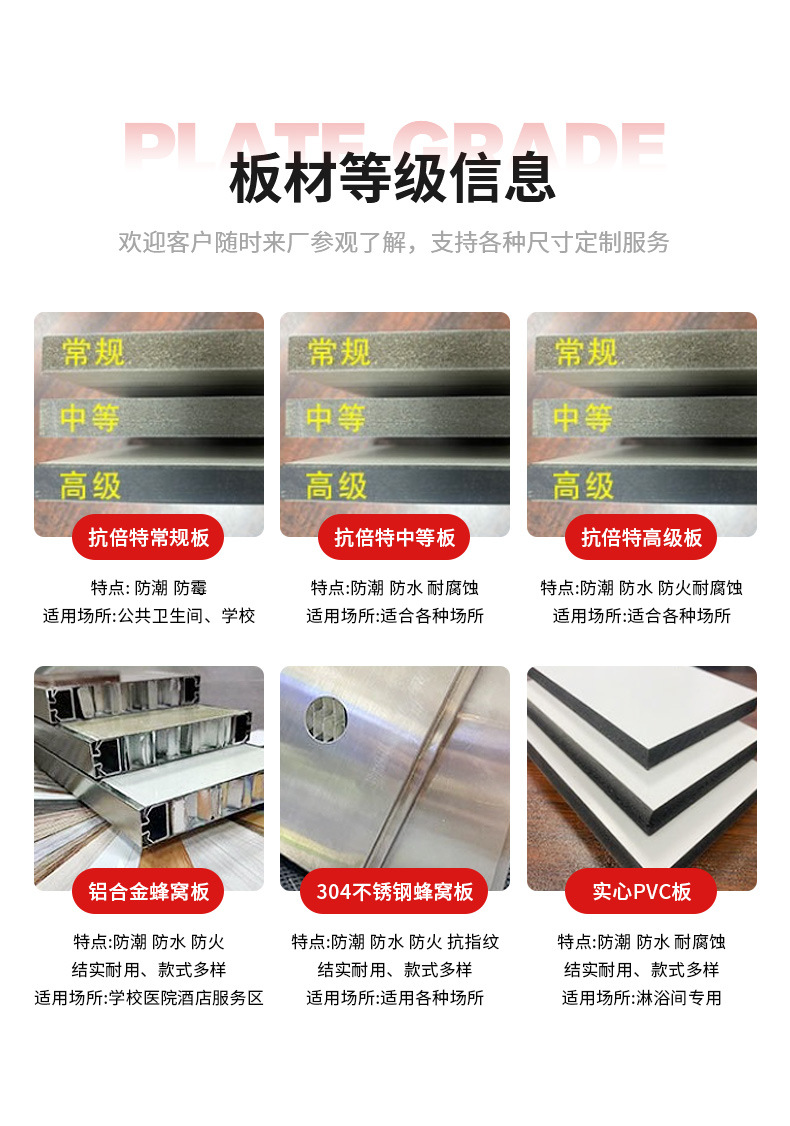 卫生间隔断板厕所洗手间蜂窝铝材PVC抗倍特板防水隔板小便挡板