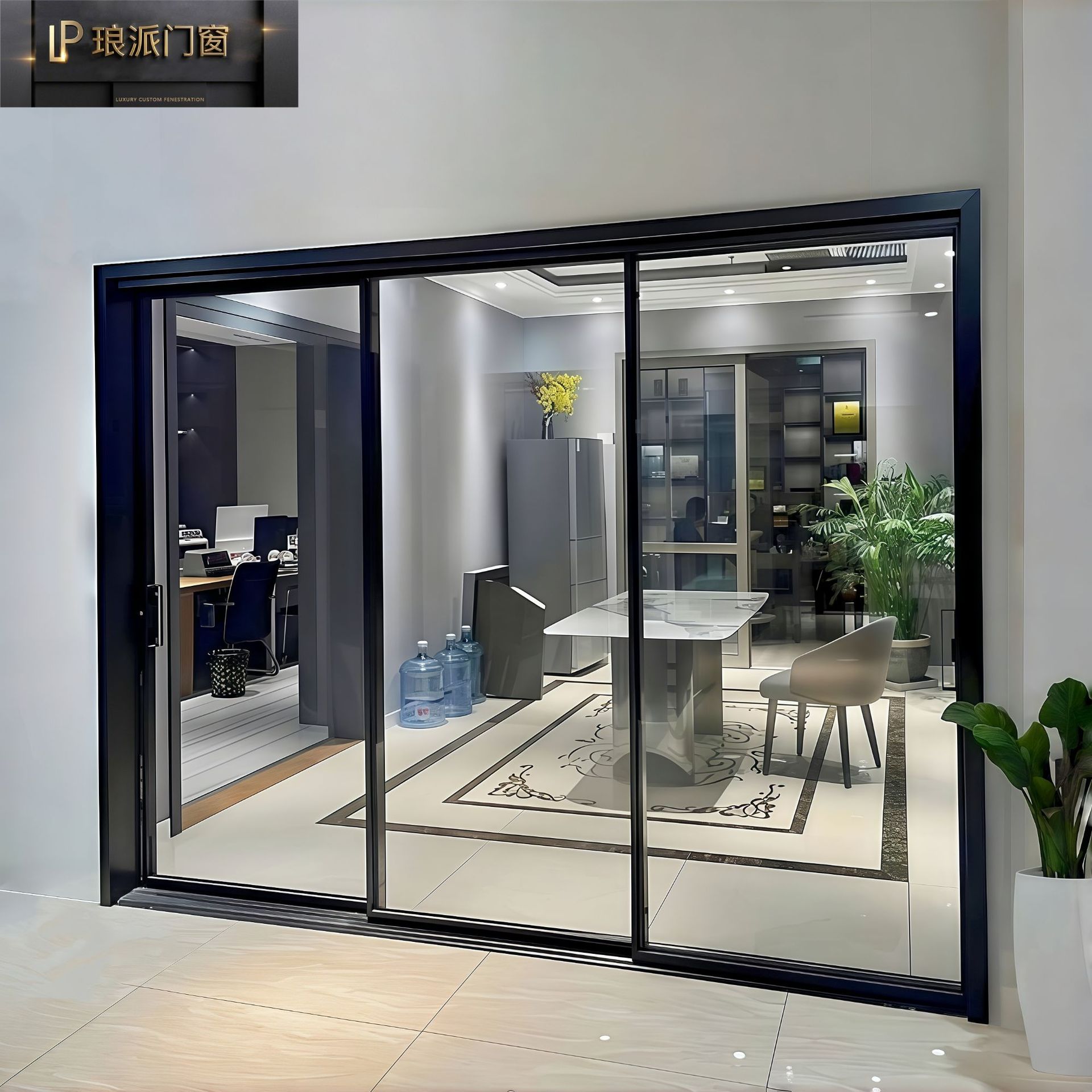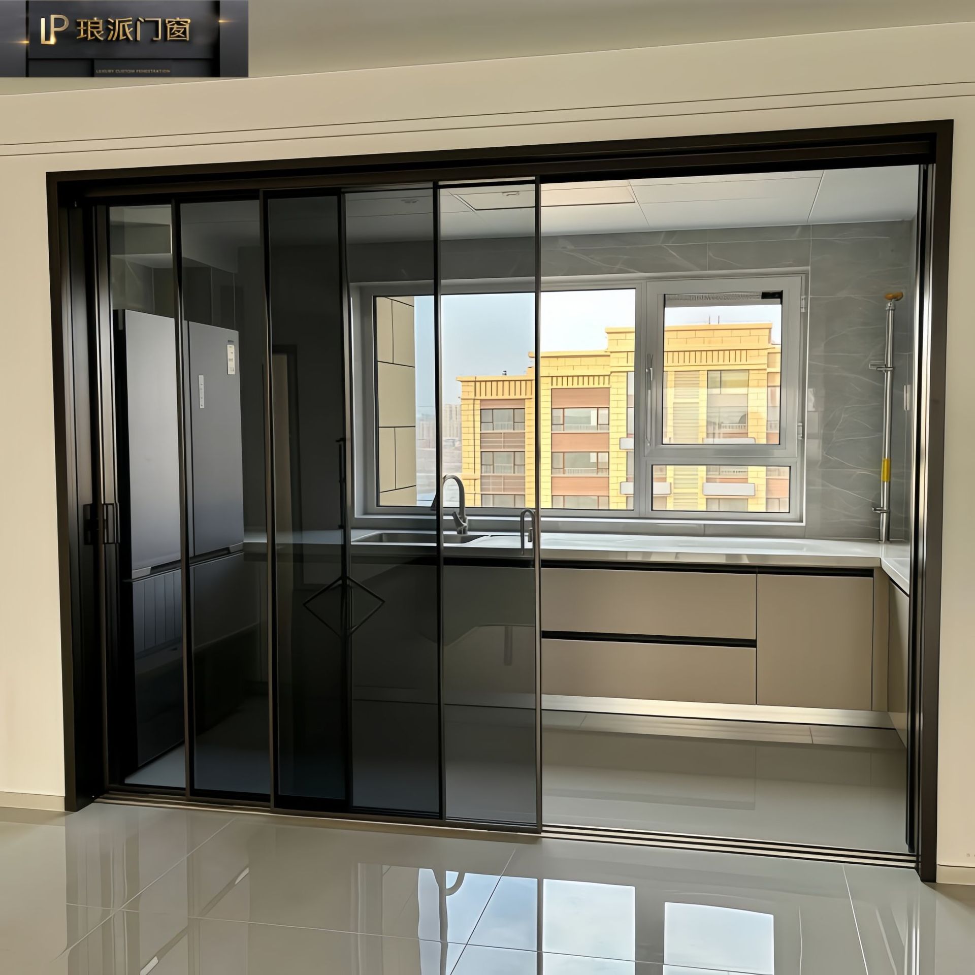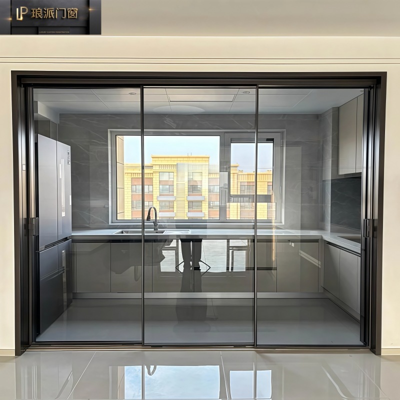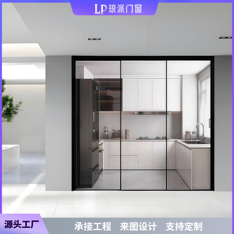 源头工厂三联动吊轨带缓冲极简地轨16极窄轻奢玻璃厨房隔断推拉门
