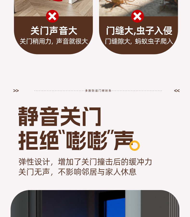防盗门入户门缝密封条隔音超静音卧室房门框防撞硅胶条窗户防风条