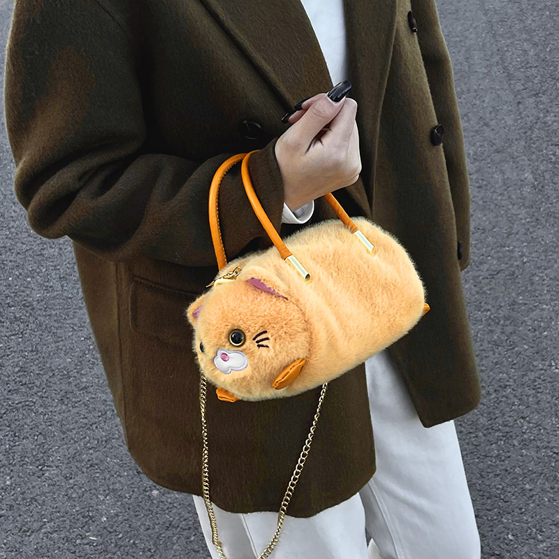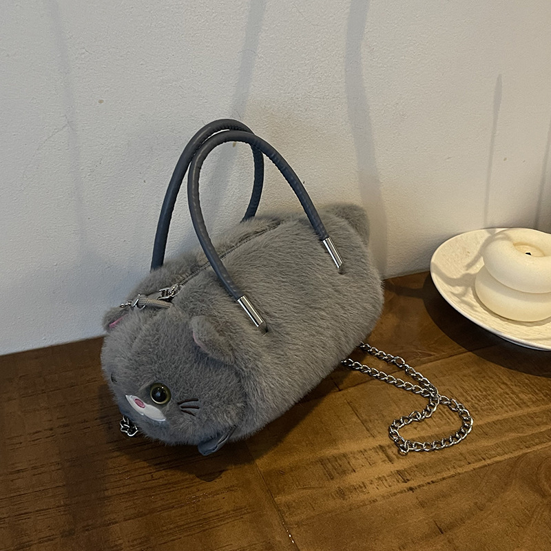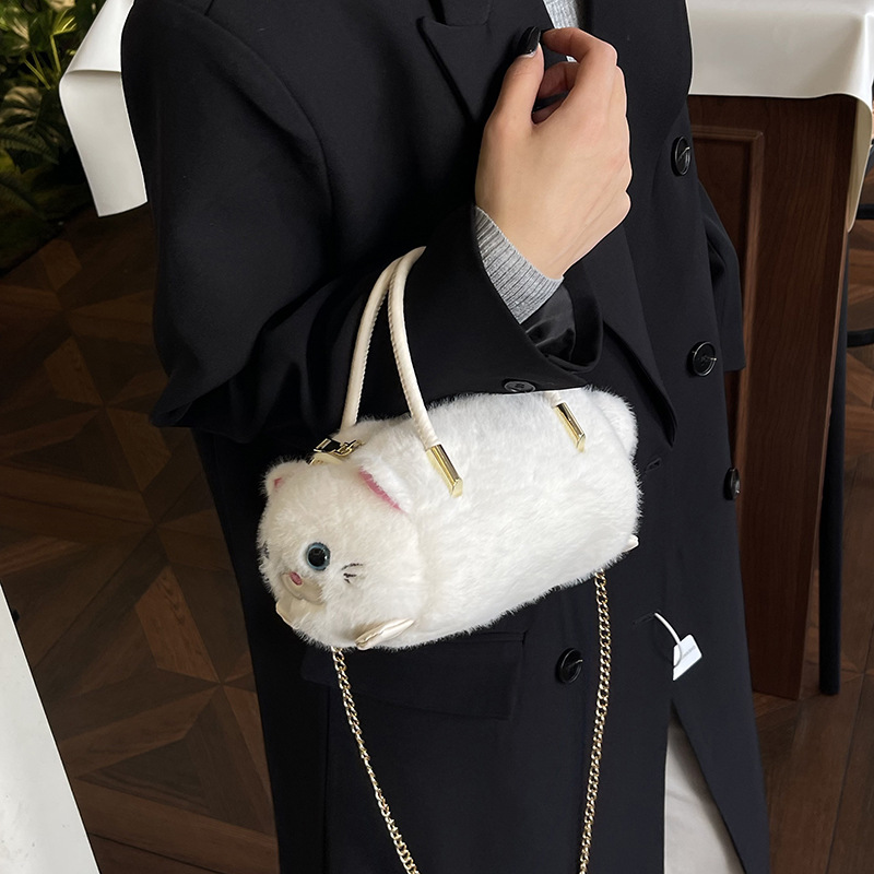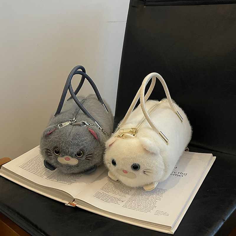 外贸新款手提斜挎包可爱猫咪毛绒包个性百搭女生单肩包外贸儿童包