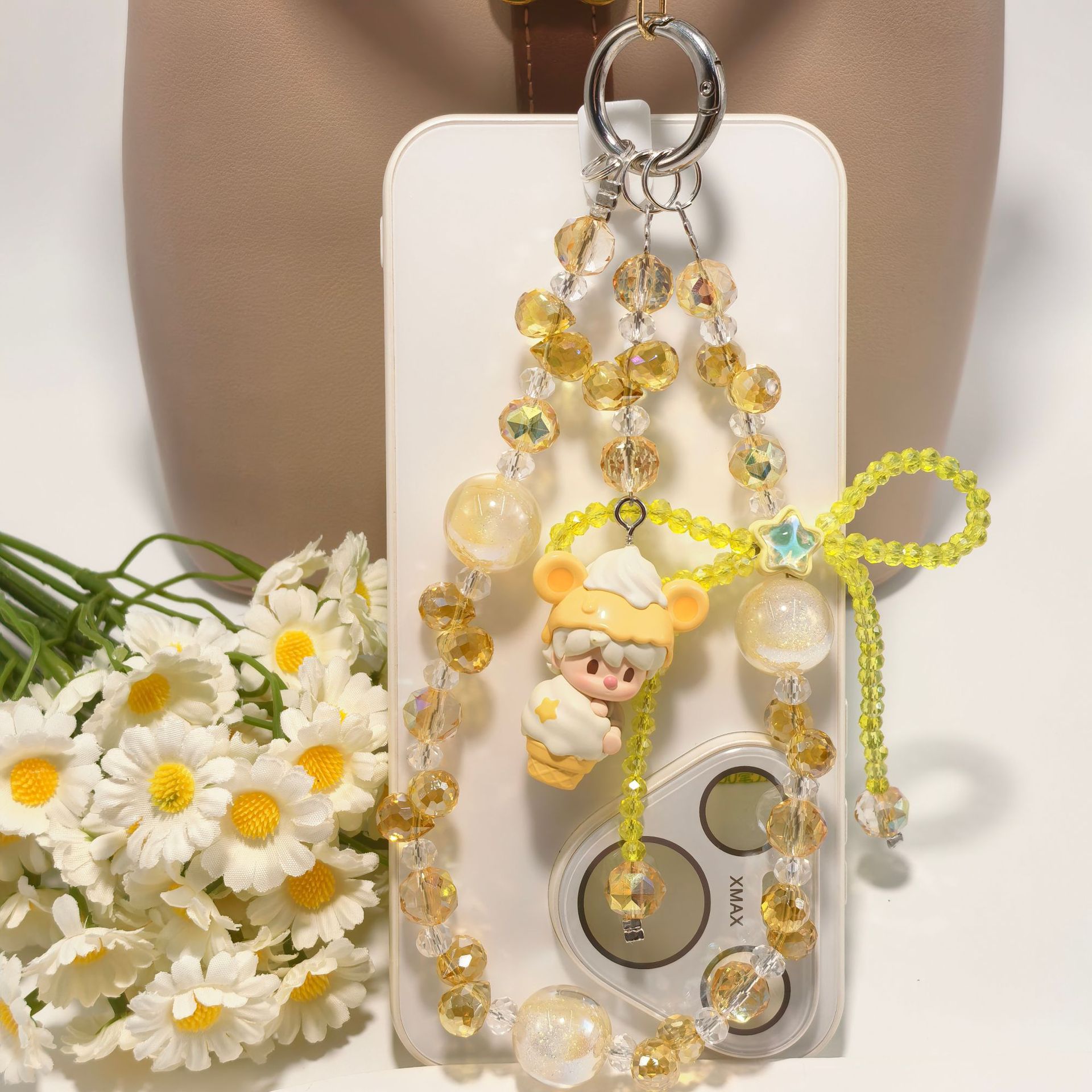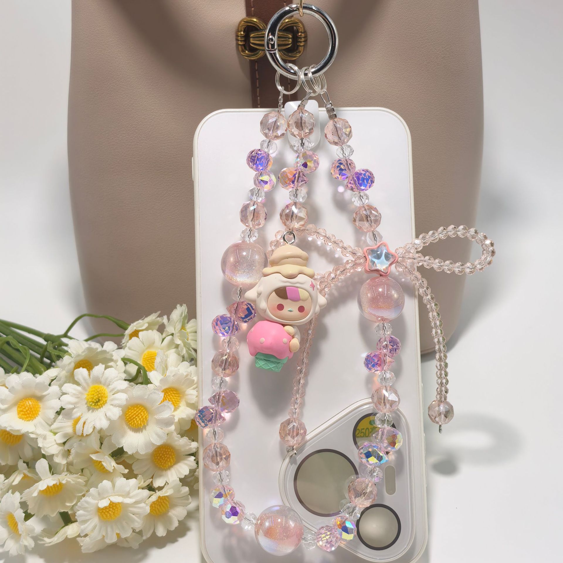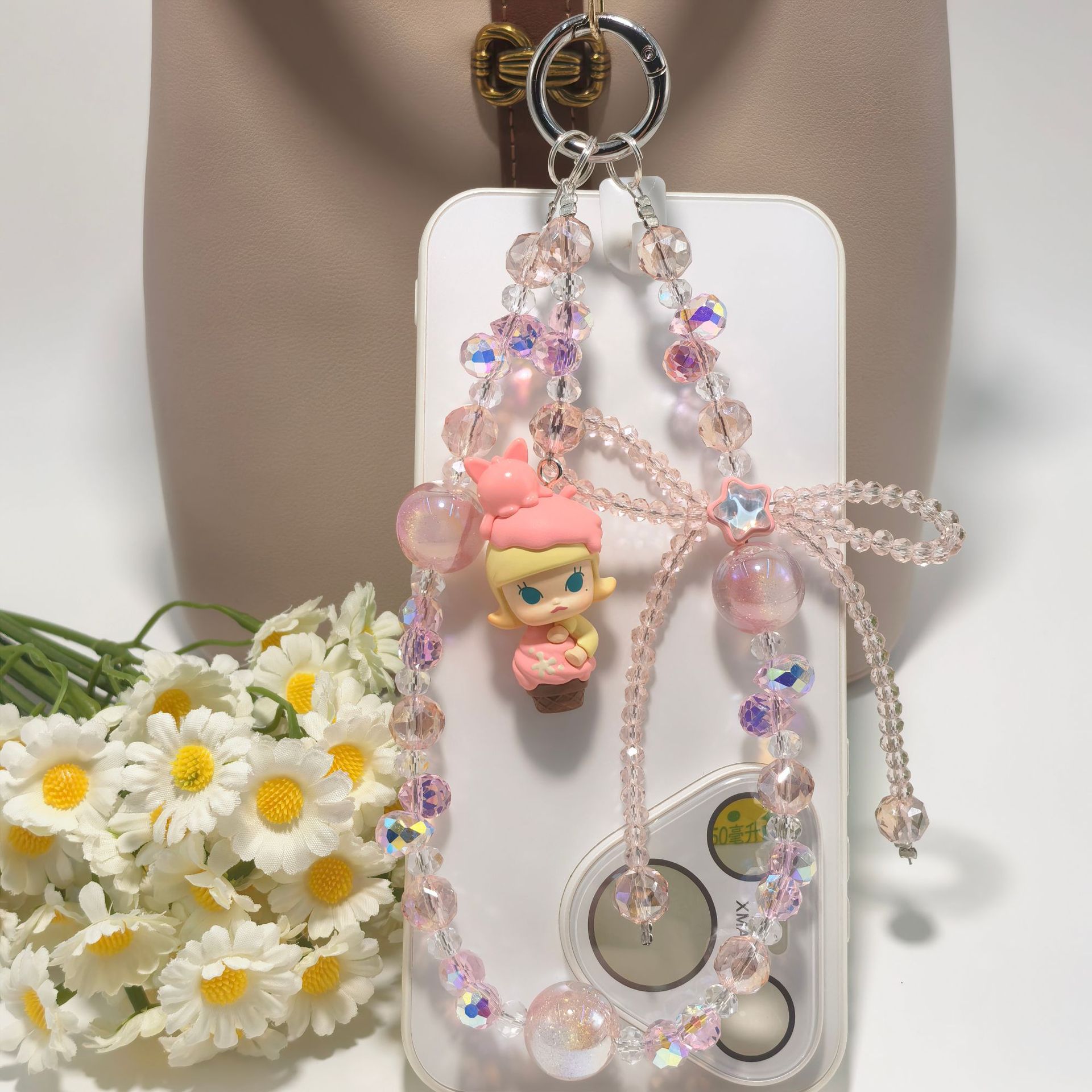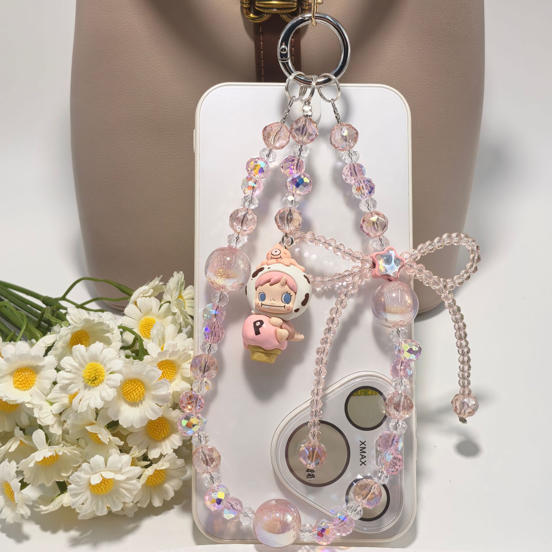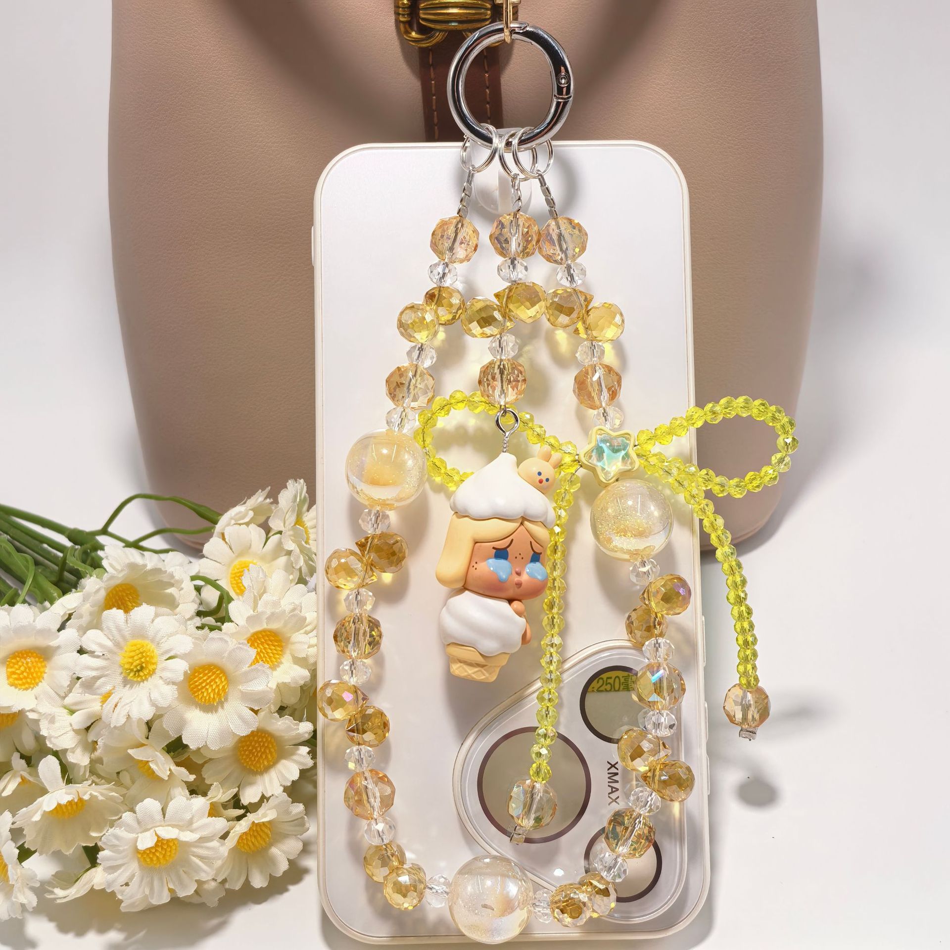 正版泡泡玛特冰淇淋系列奢华水晶蝴蝶结配饰手工串珠手机包包挂件