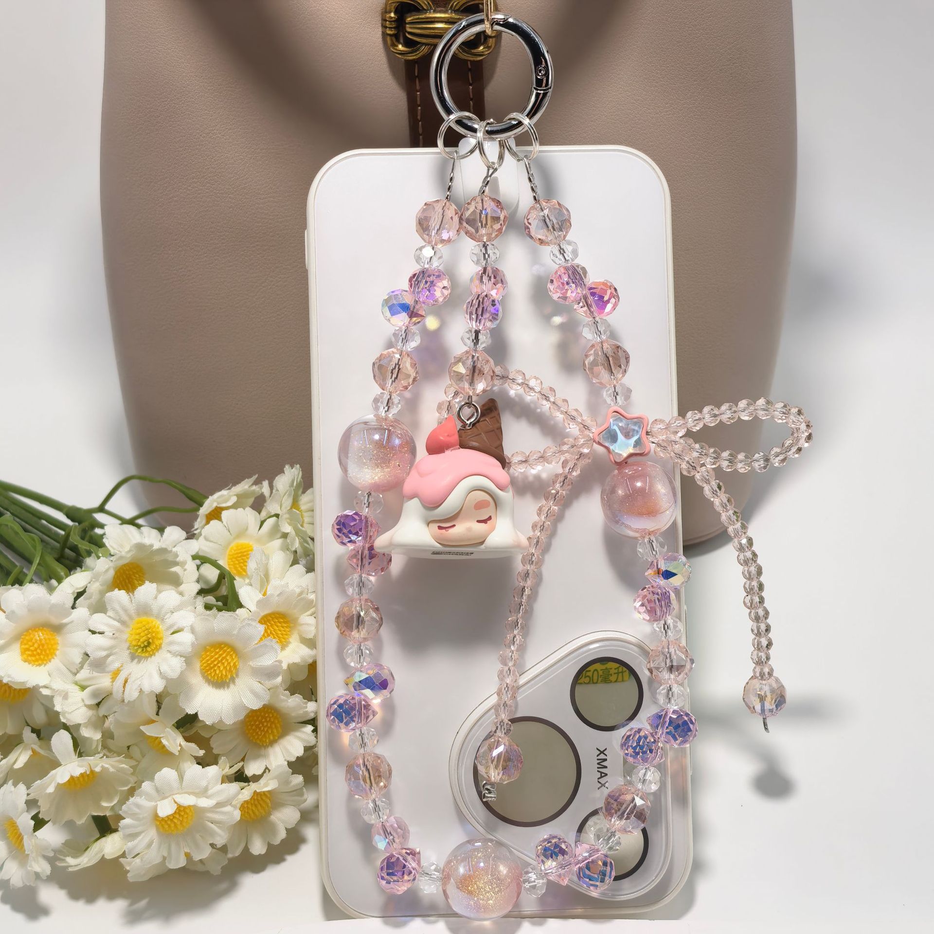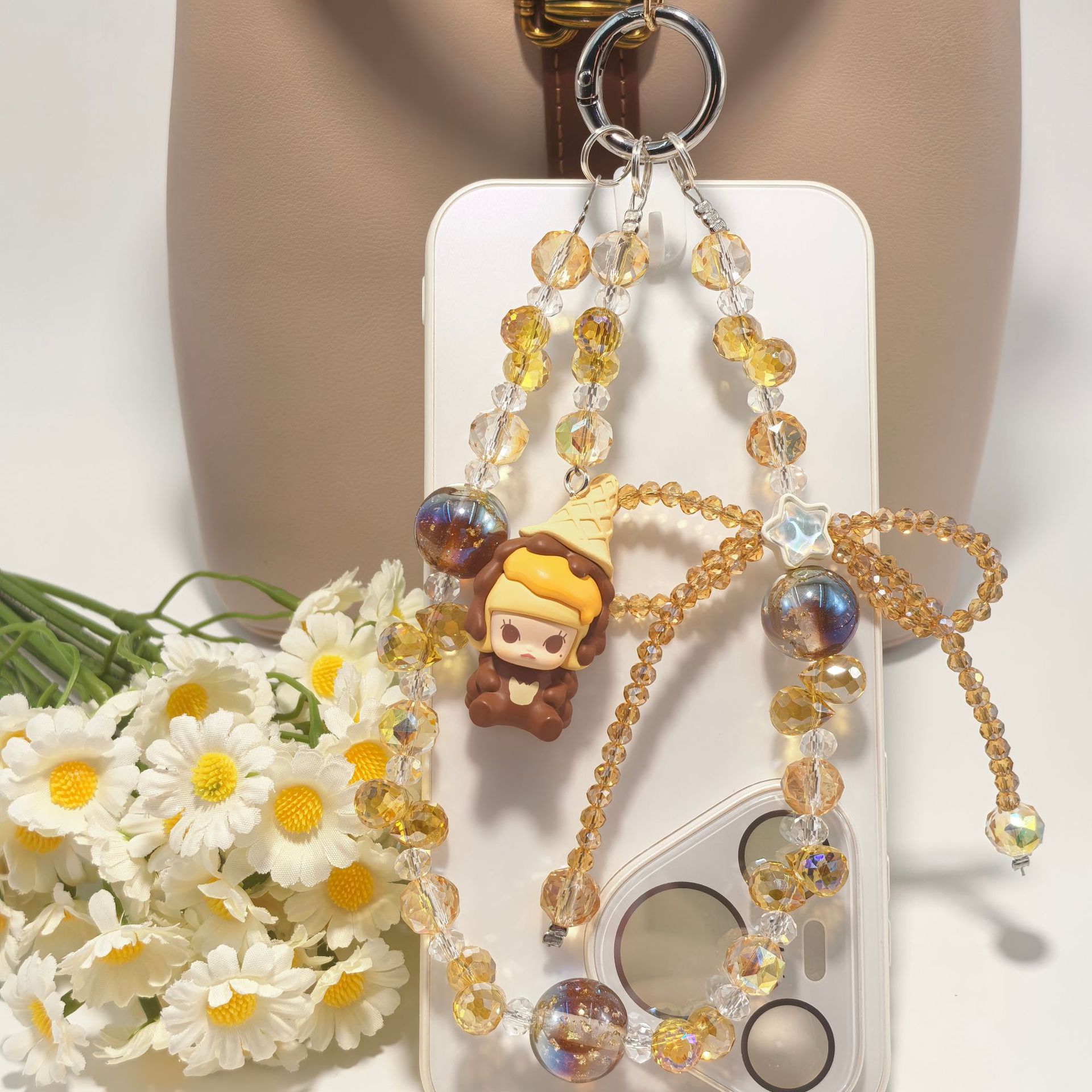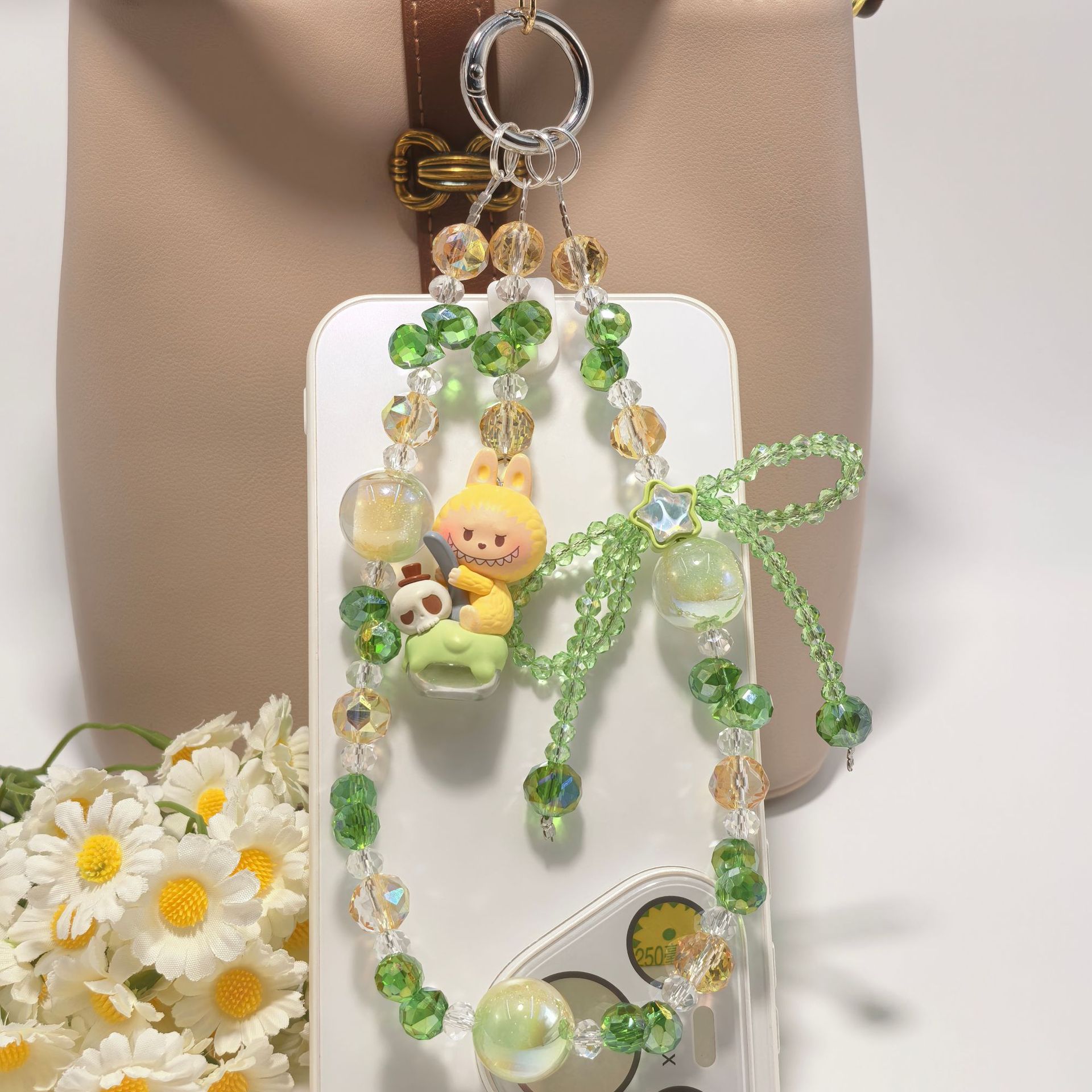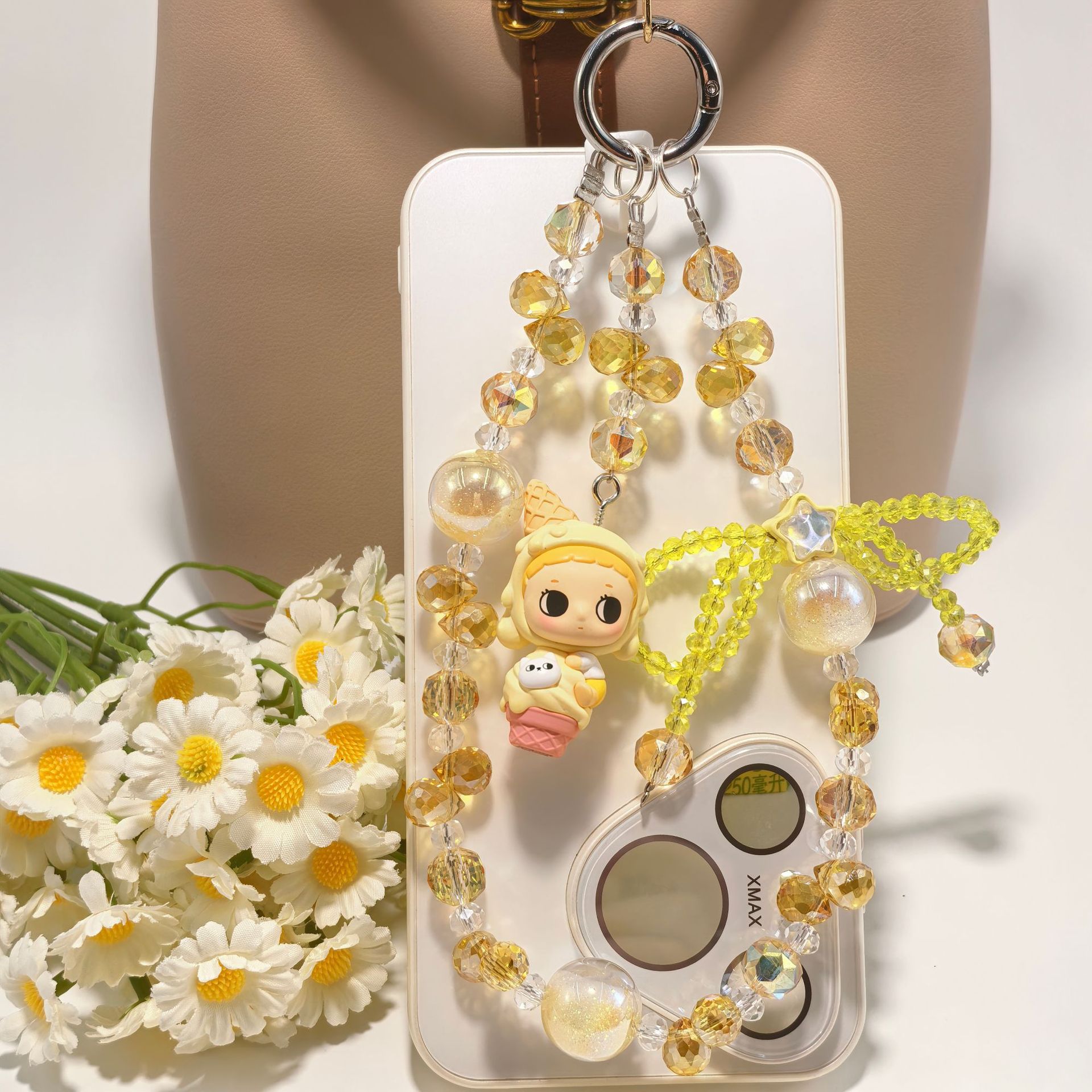 正版泡泡玛特冰淇淋系列奢华水晶蝴蝶结配饰手工串珠手机包包挂件