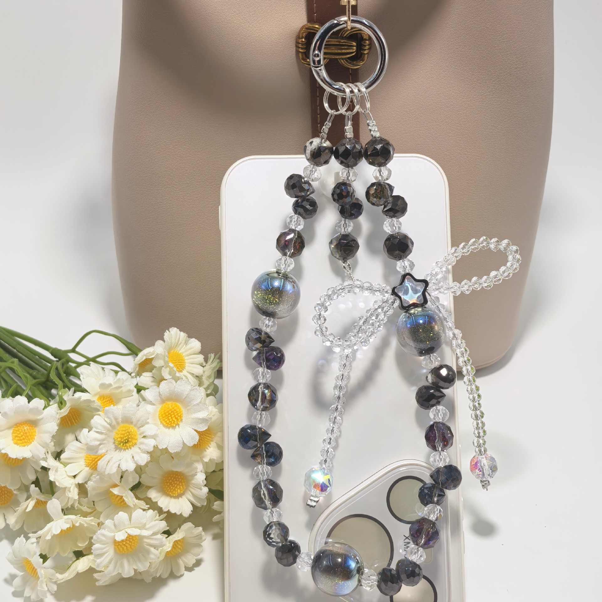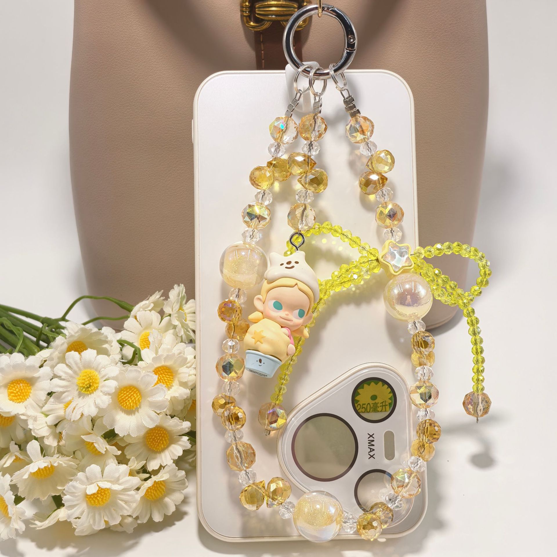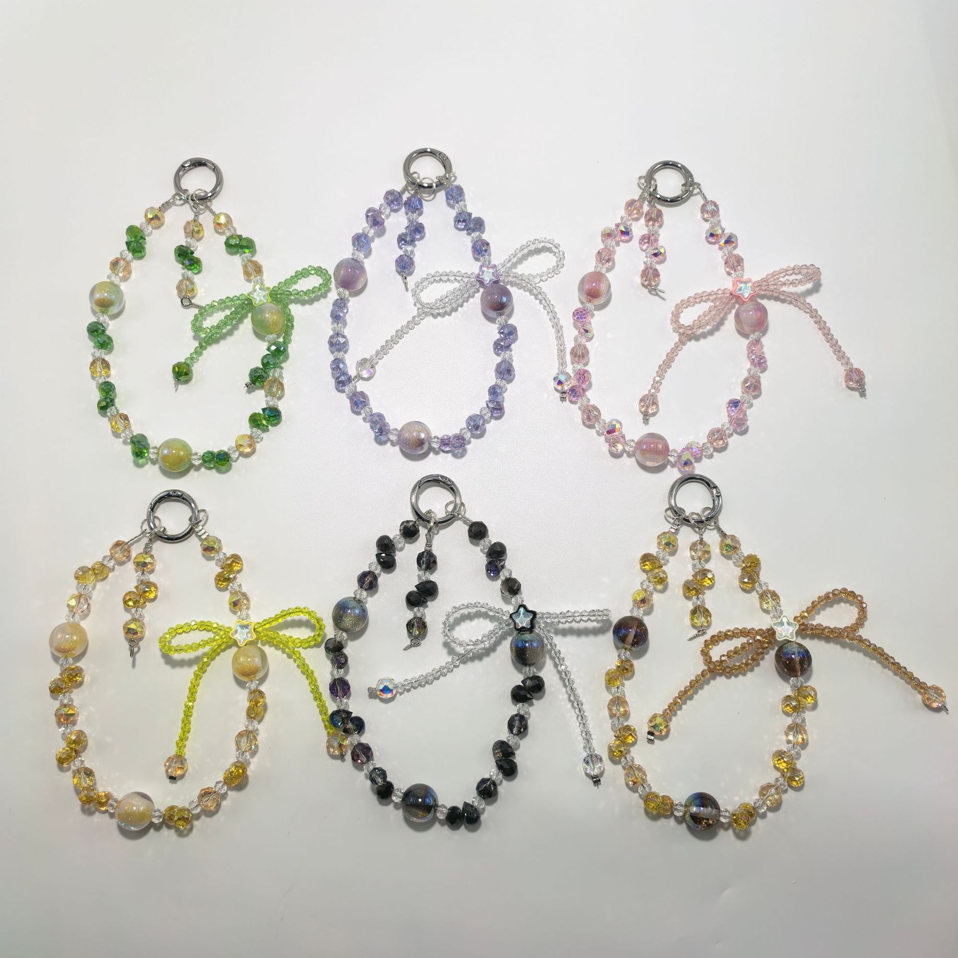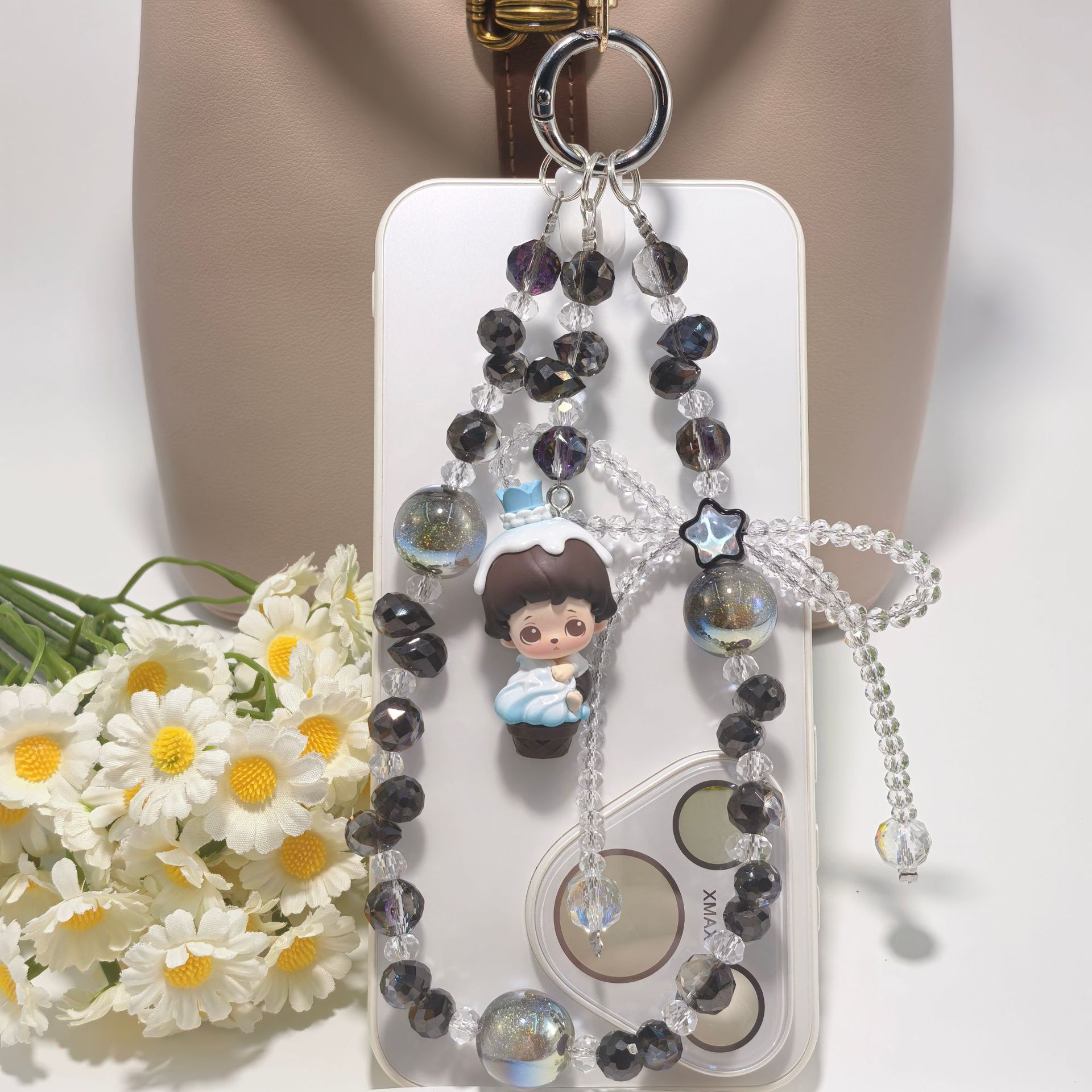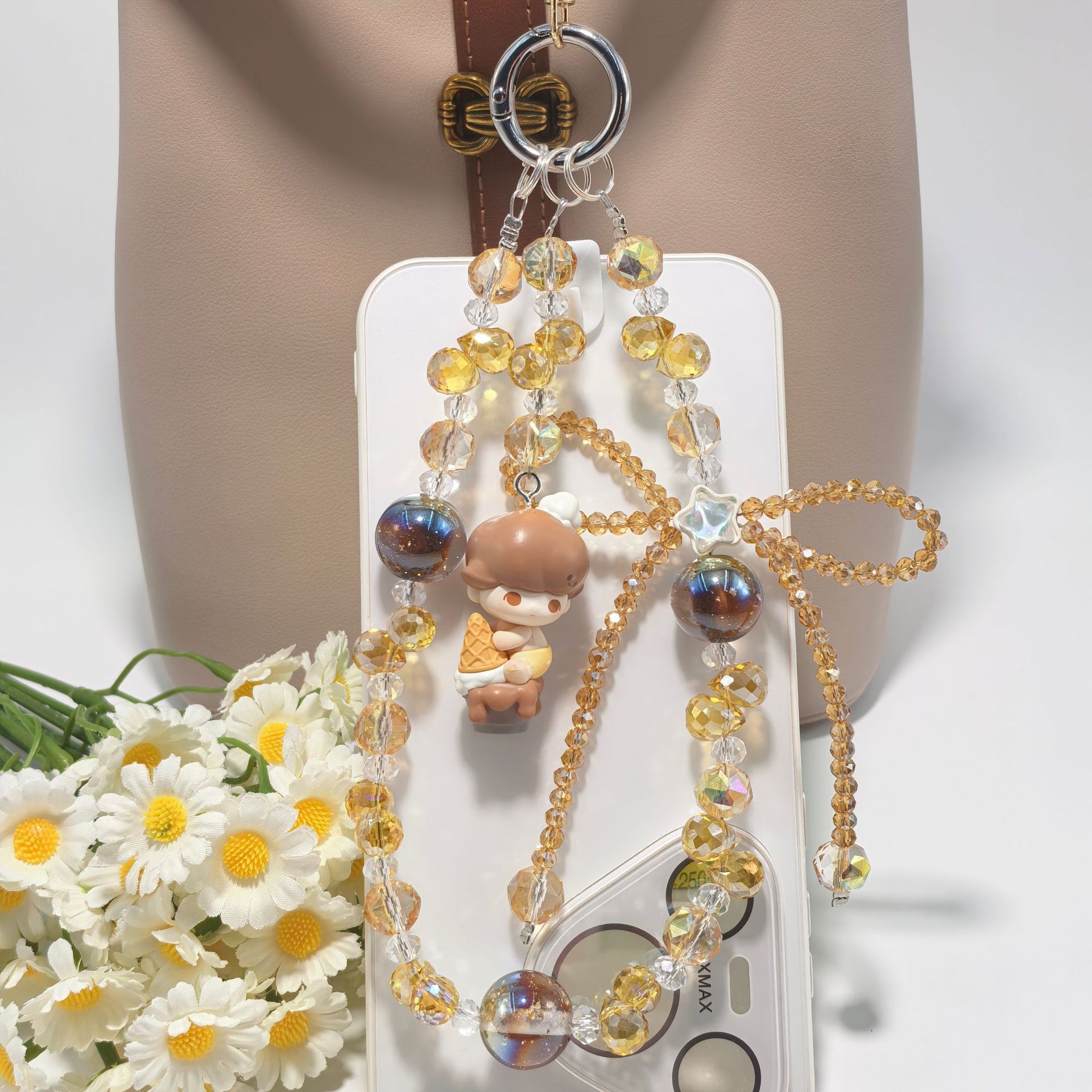 正版泡泡玛特冰淇淋系列奢华水晶蝴蝶结配饰手工串珠手机包包挂件