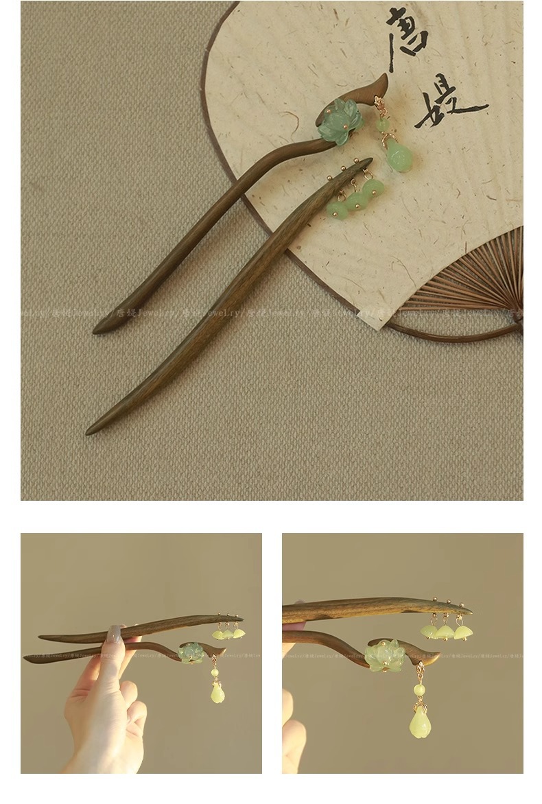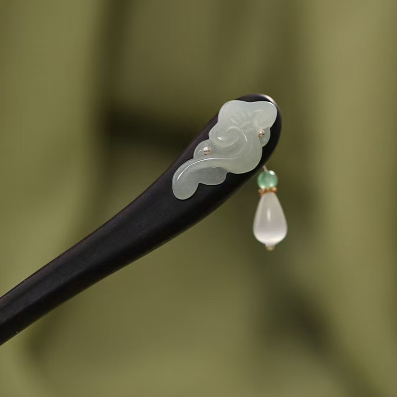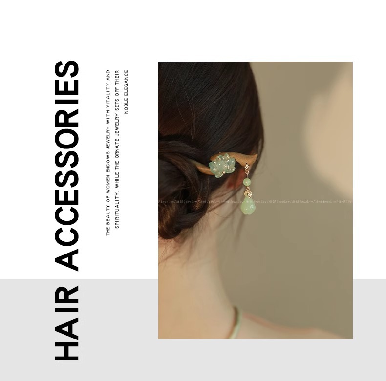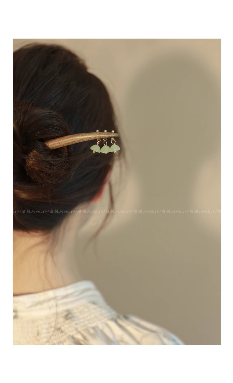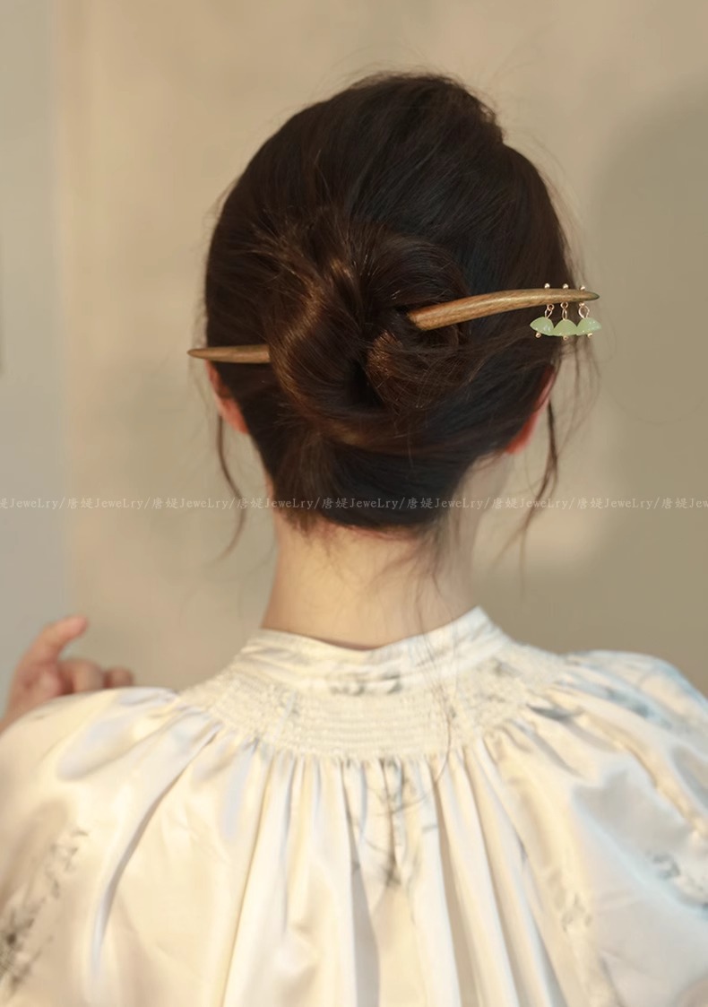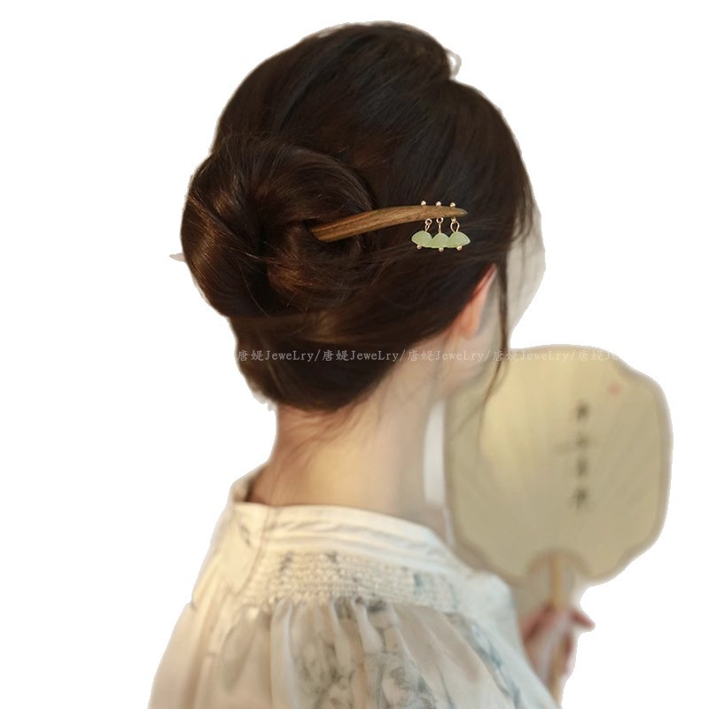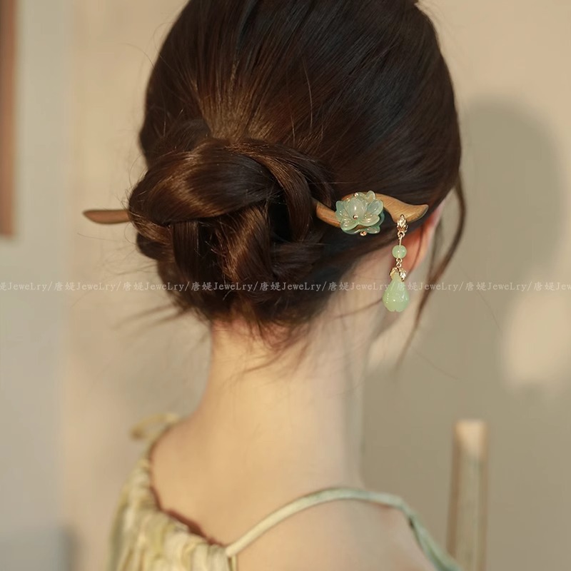 新中式仿玉流苏盘发木簪子女2025新款高级感旗袍古风发簪头饰发钗