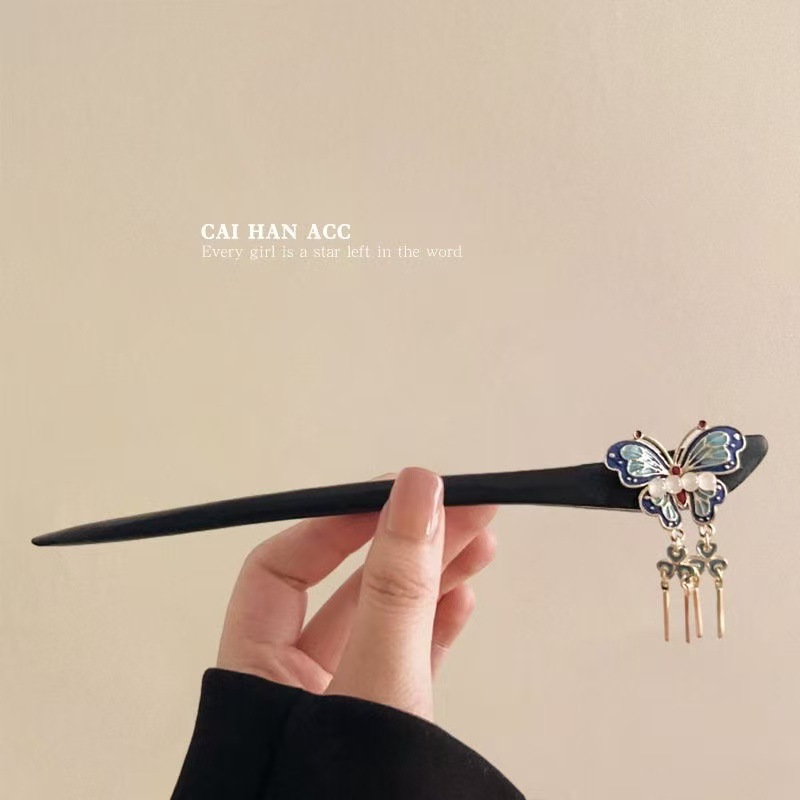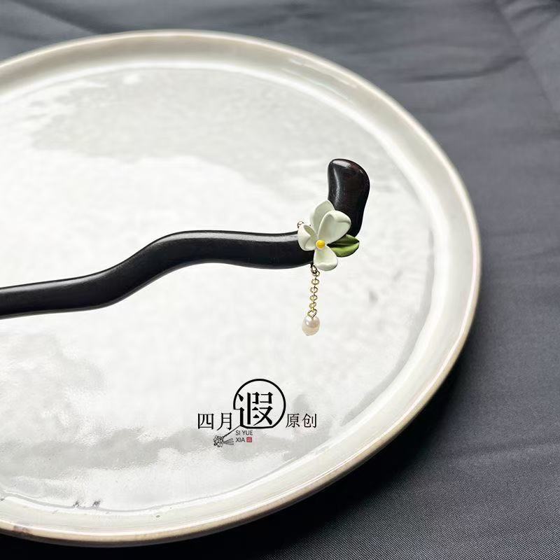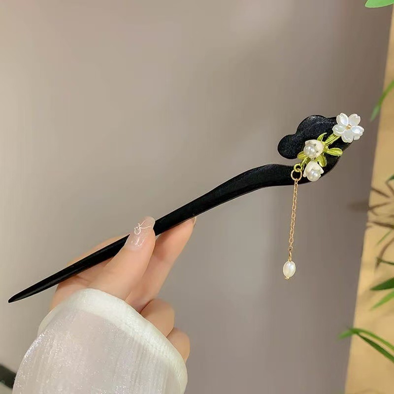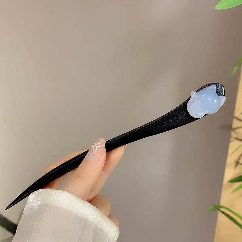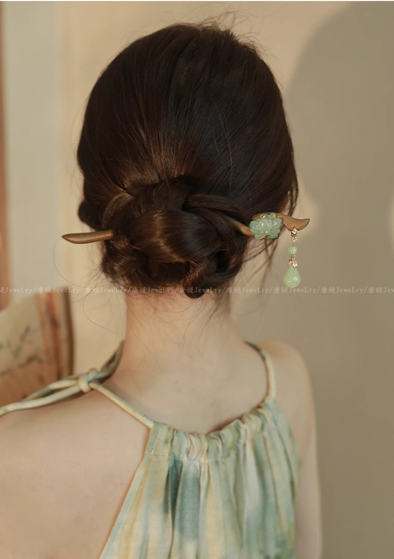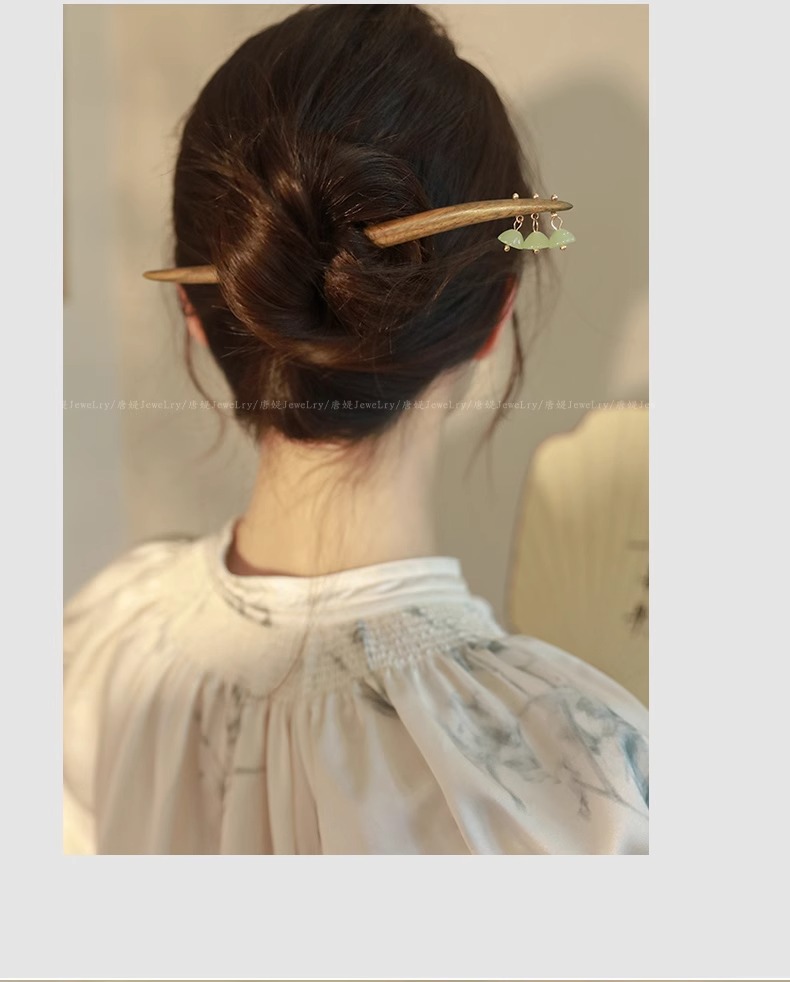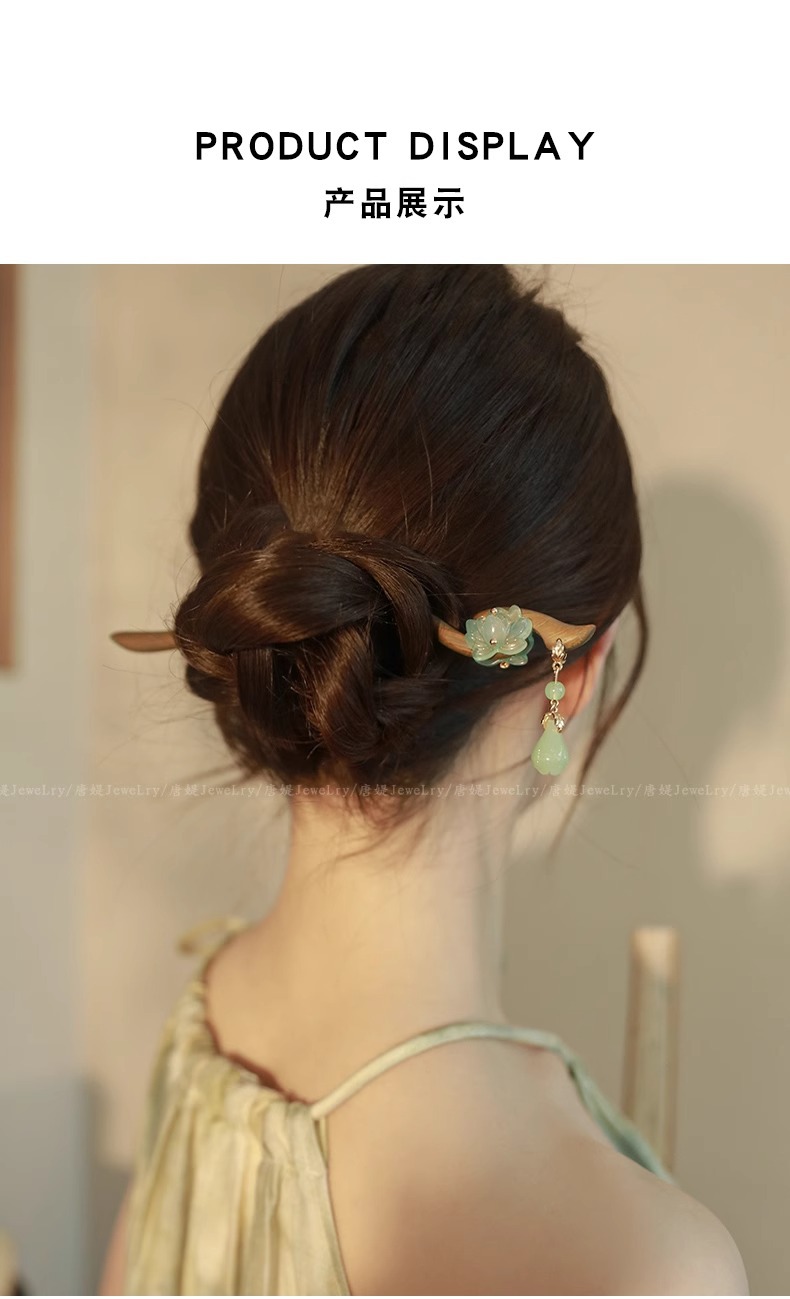 新中式仿玉流苏盘发木簪子女2025新款高级感旗袍古风发簪头饰发钗