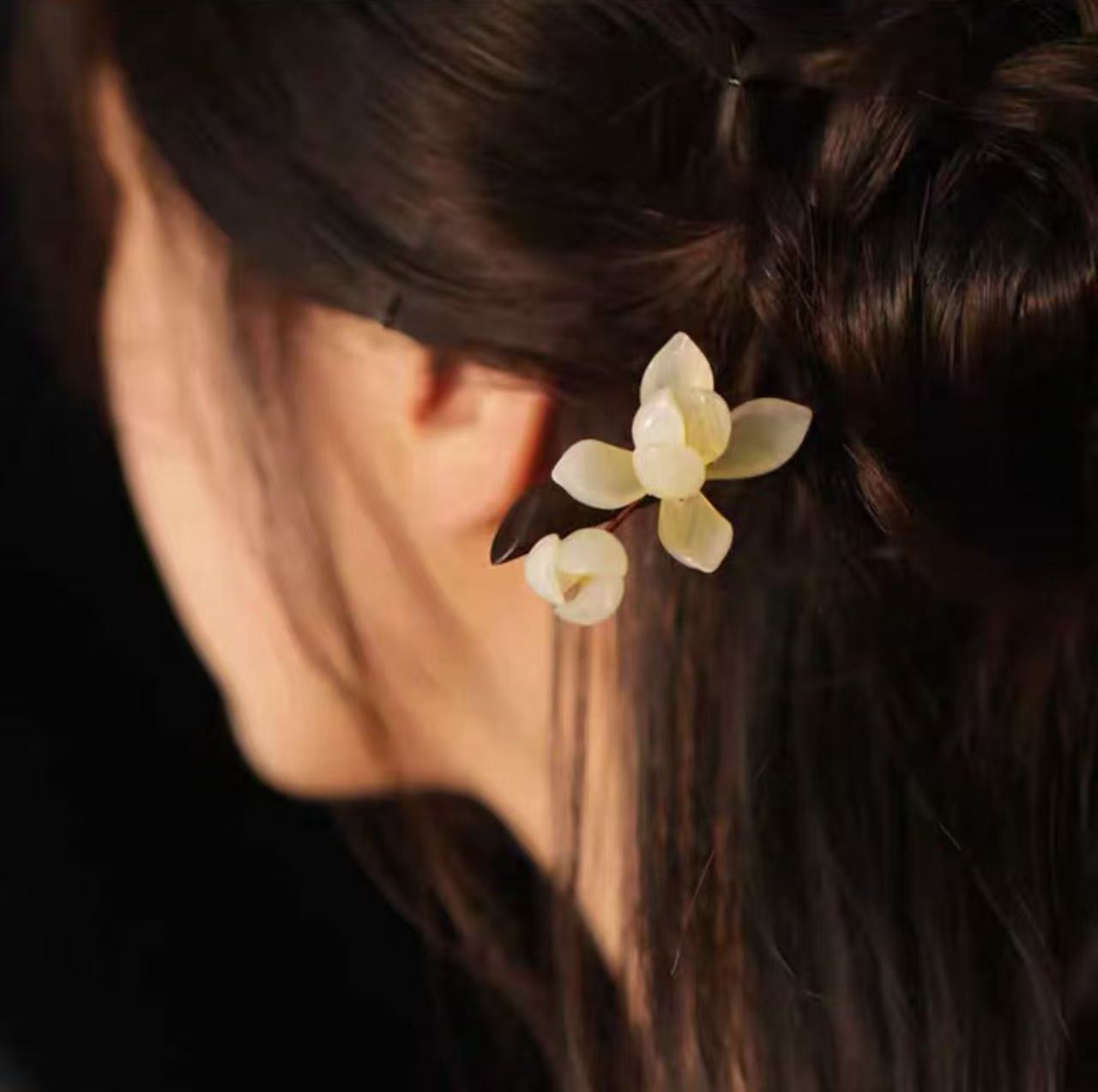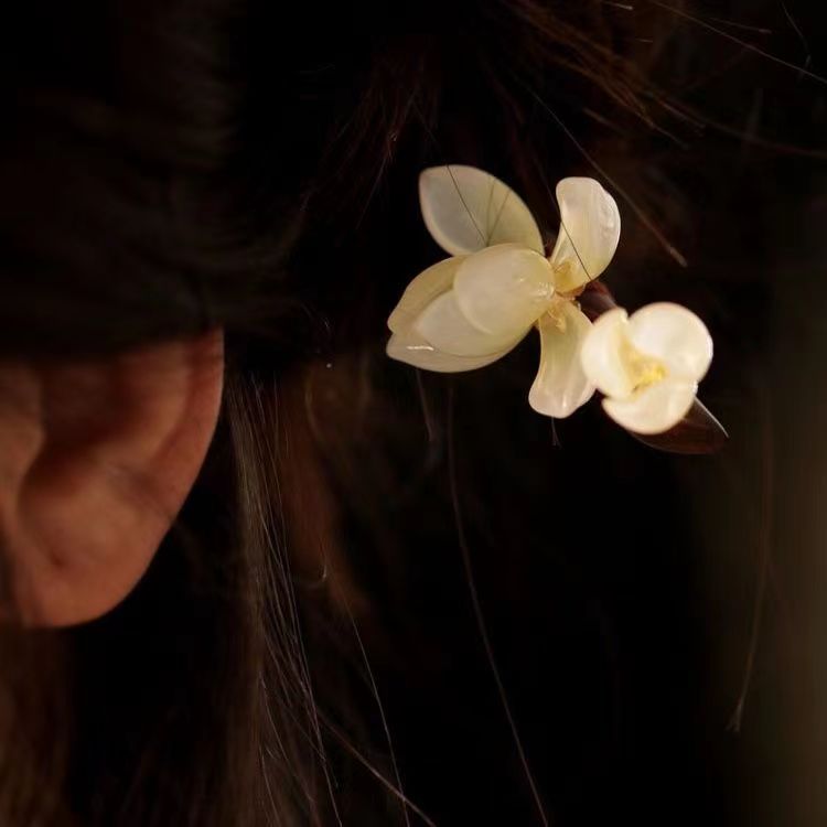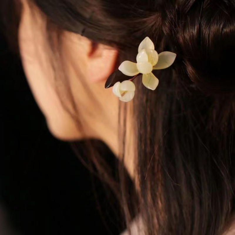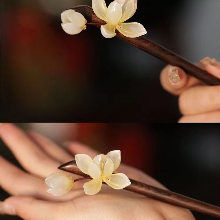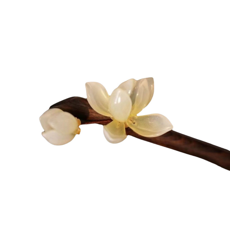 玉兰花古典木簪黑檀木发簪简约盘发高级感头饰发饰旗袍配饰女
