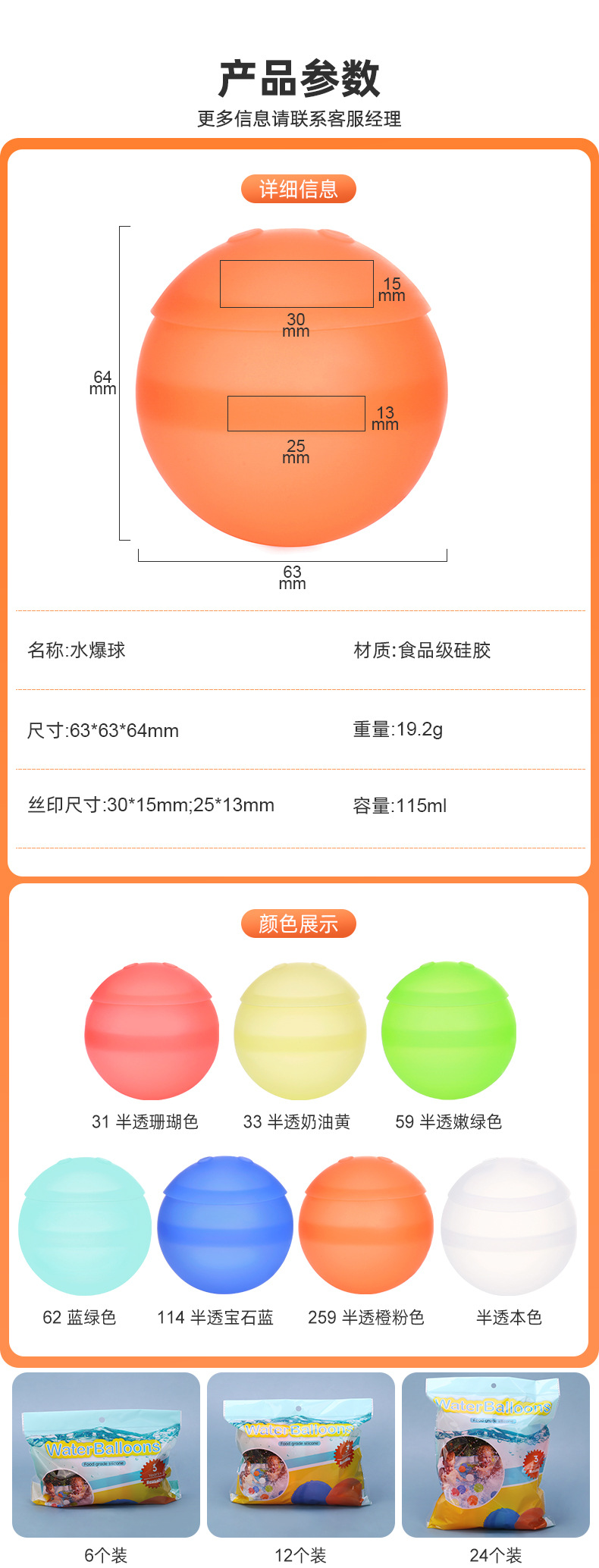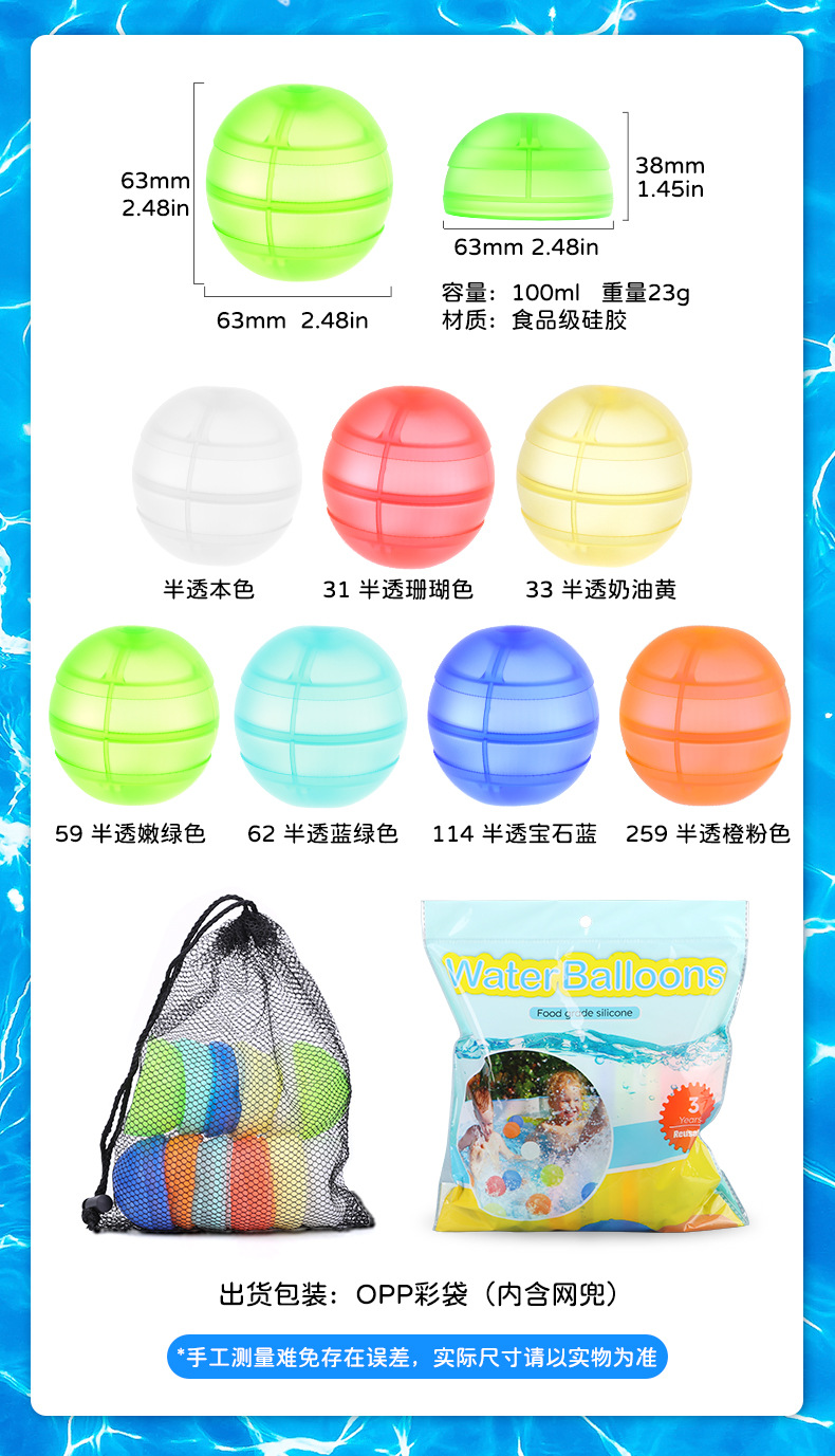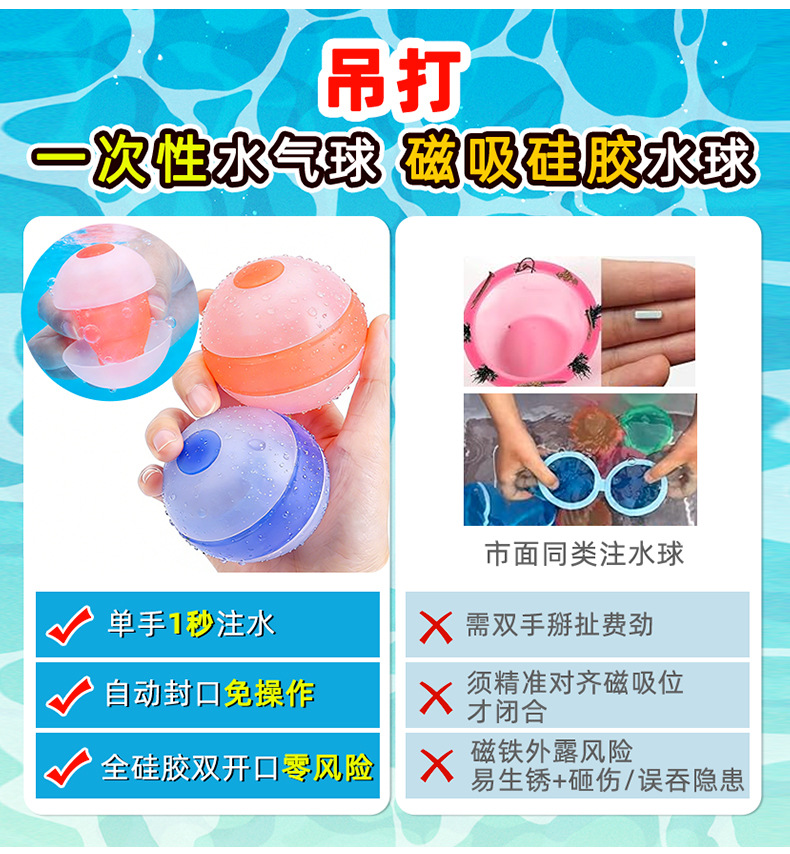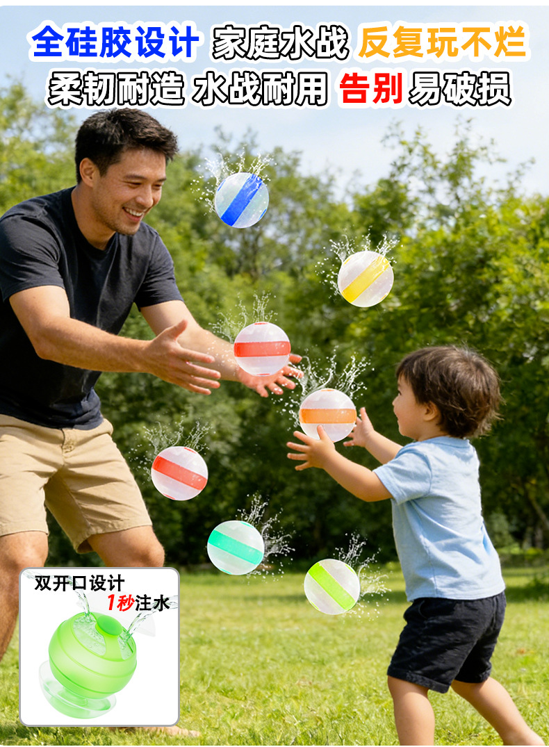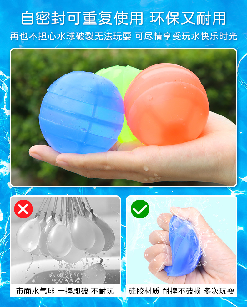 爆款秒注水气球灌水硅胶水球 夏季儿童戏水玩具重复使用水球炸弹