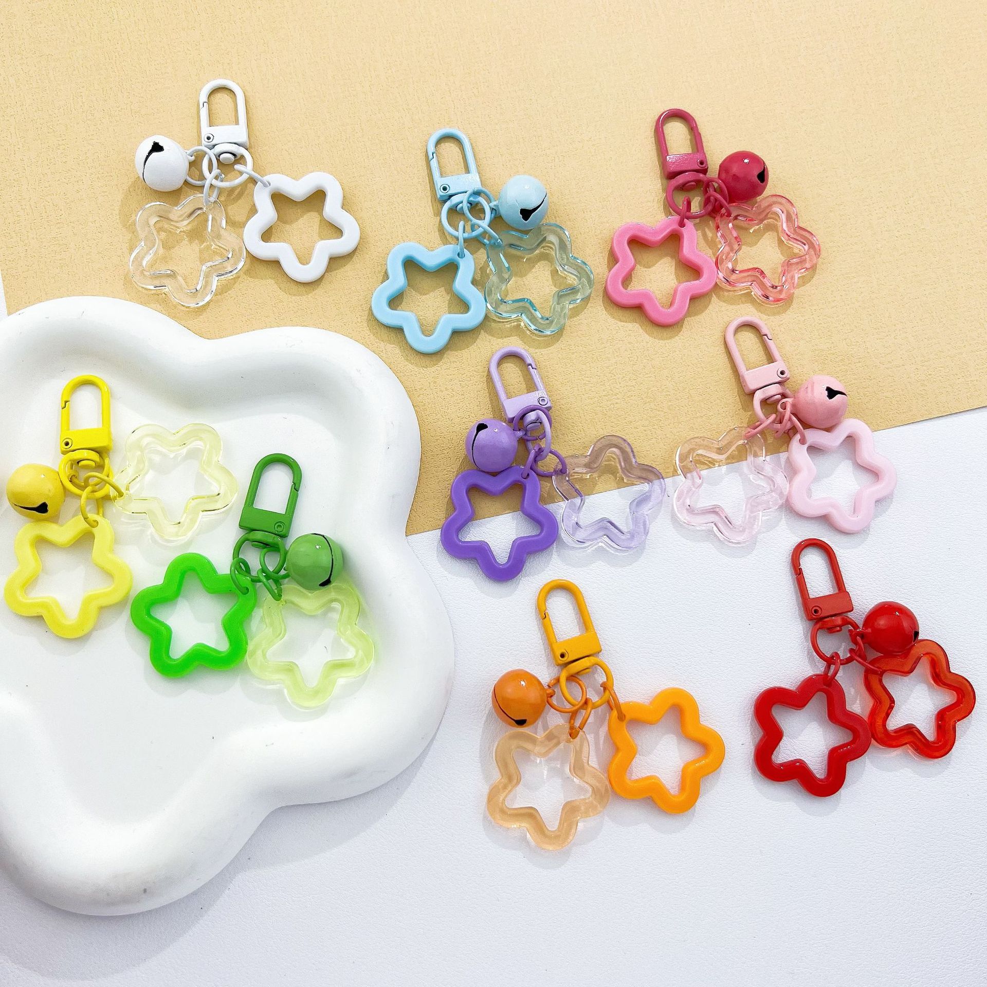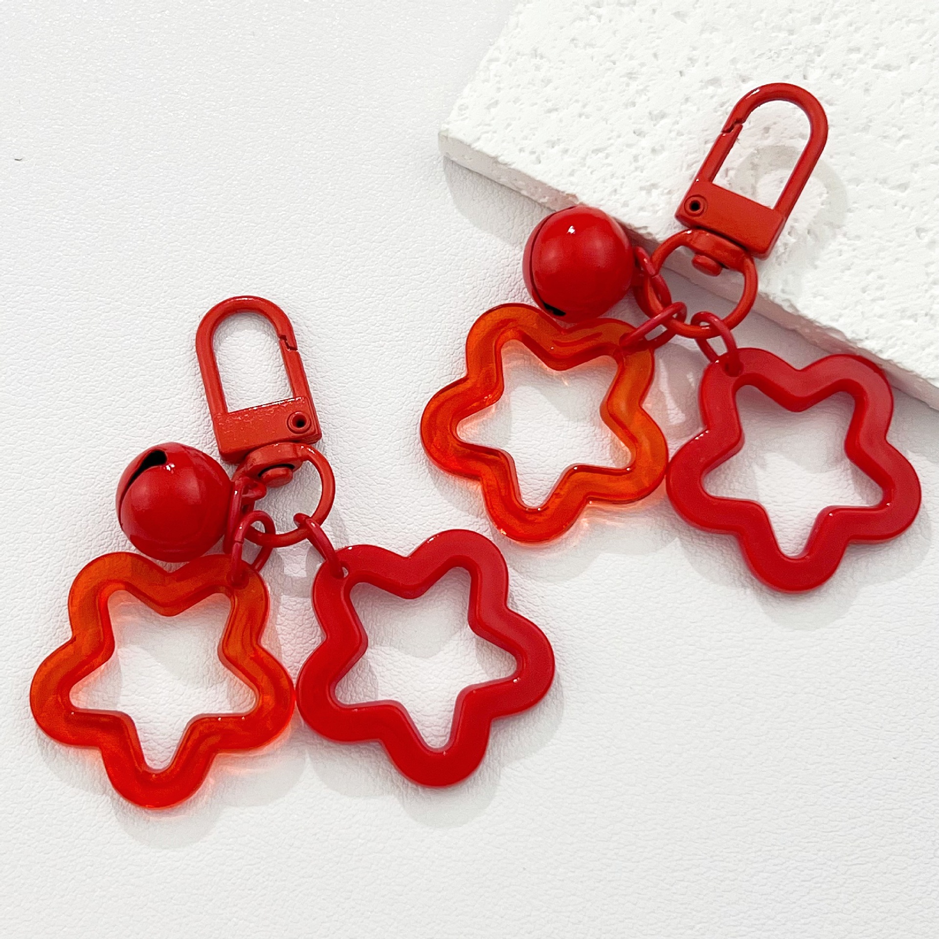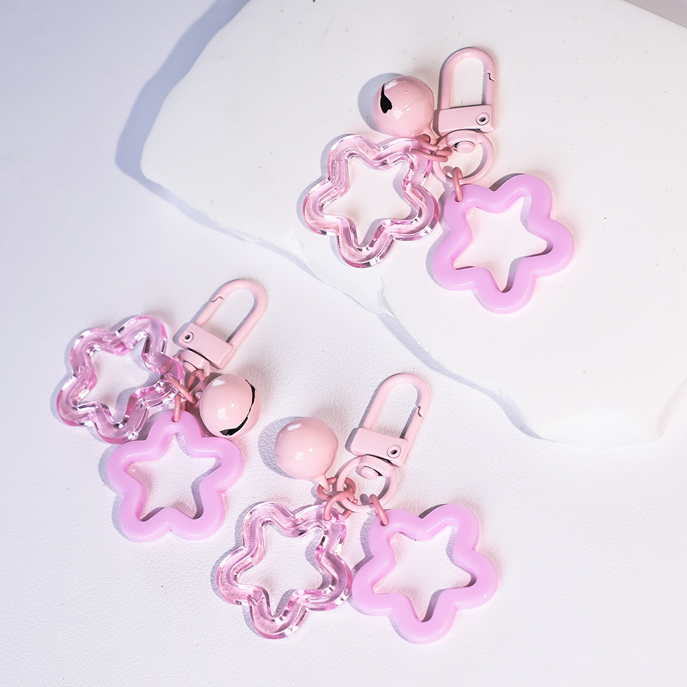 DIY创意铃铛钥匙扣双五角星可爱包挂件手机链饰品配件钥匙圈挂饰