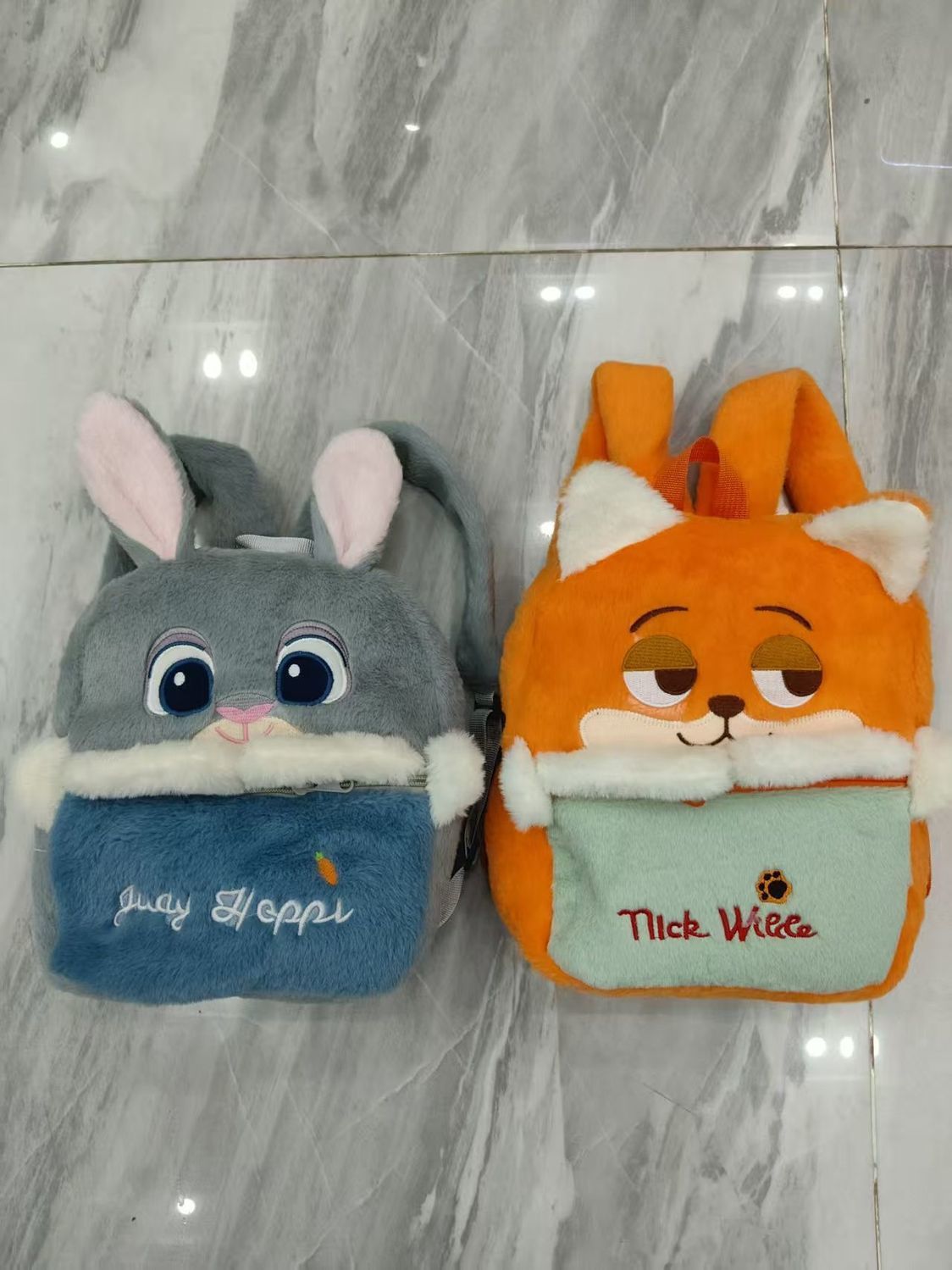 新款跨境卡通狐狸尼克兔子朱迪毛绒双肩包包大容量学生包儿童包