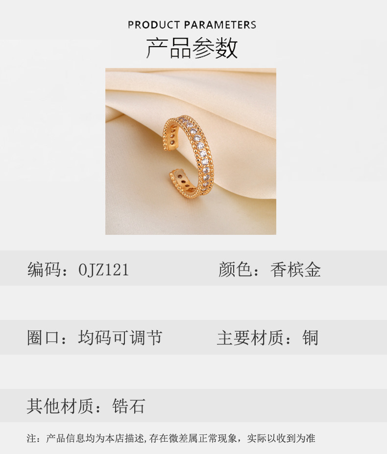 热款满钻设计开口戒指女欧美风轻奢气质时尚百搭指环2025新款