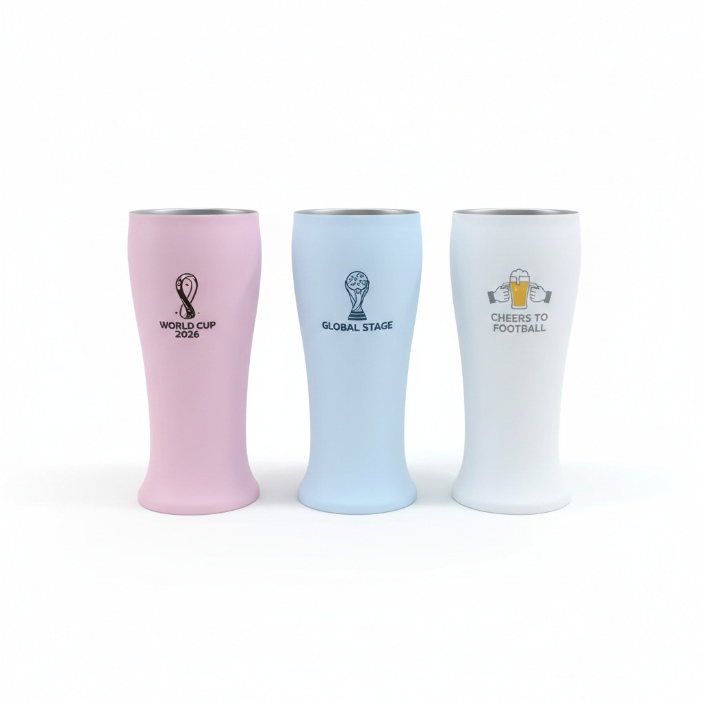 新品外贸爆款2026世界杯304不锈钢真空足球杯14oz啤酒杯定制双层