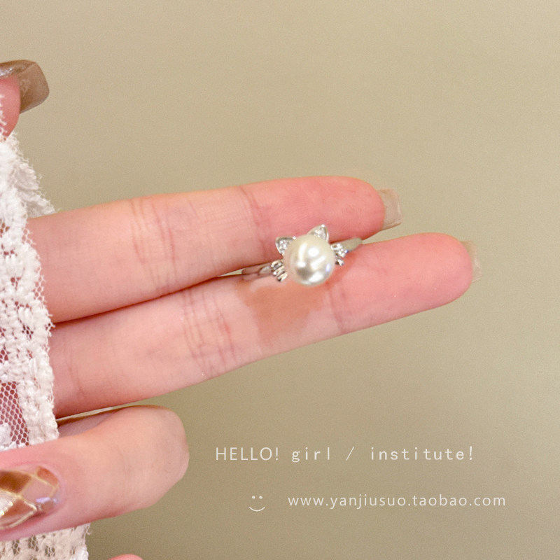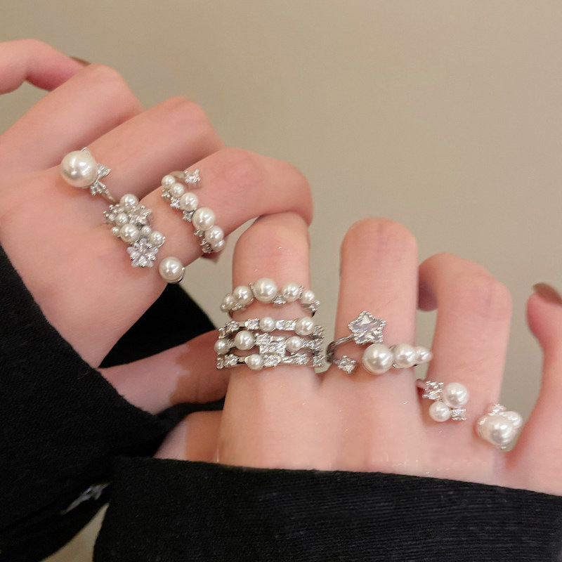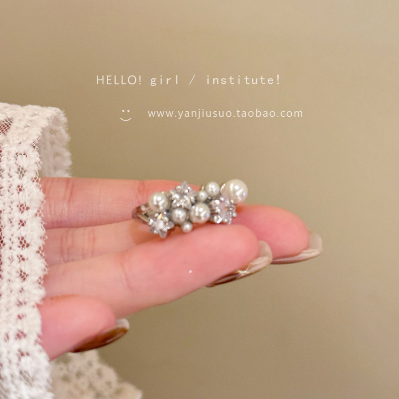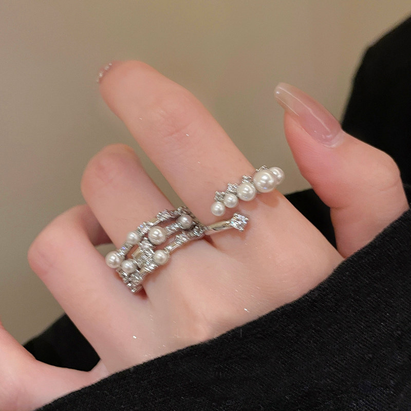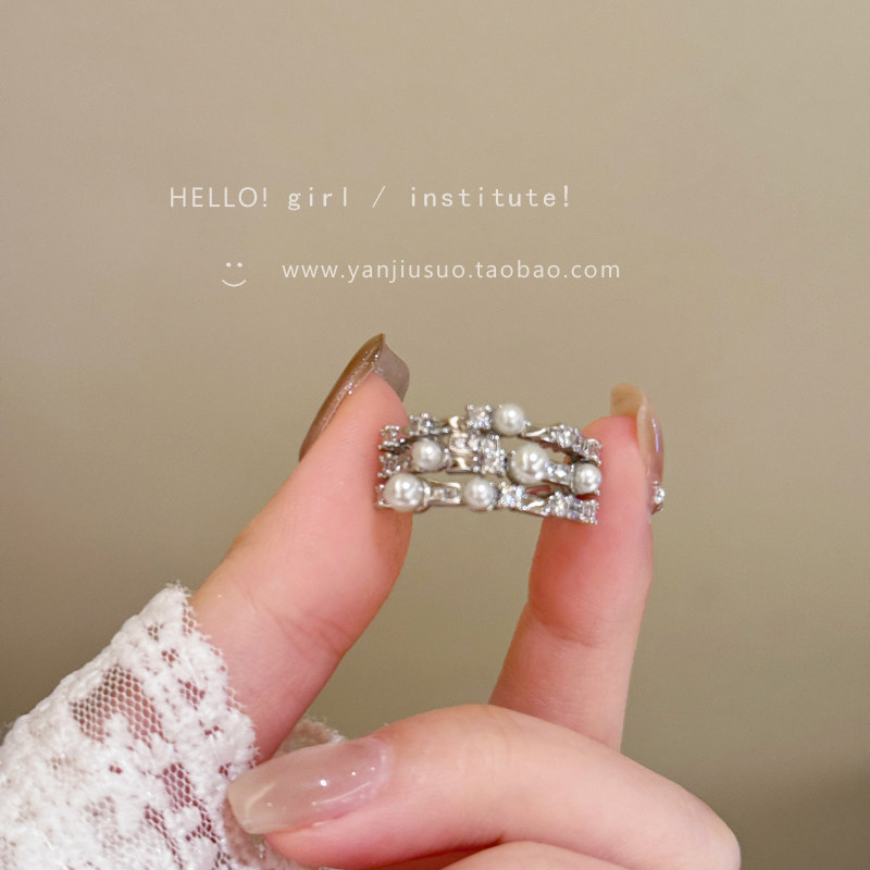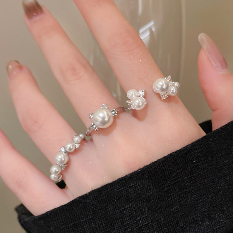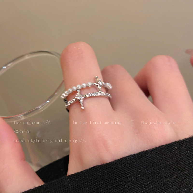 高级感法式珍珠戒指女2025新款轻奢可调节食指戒小众设计叠戴指环