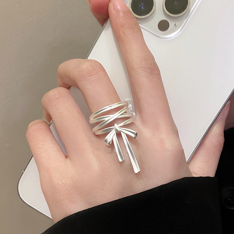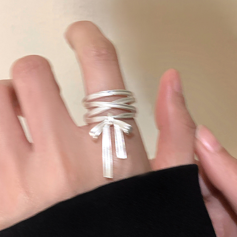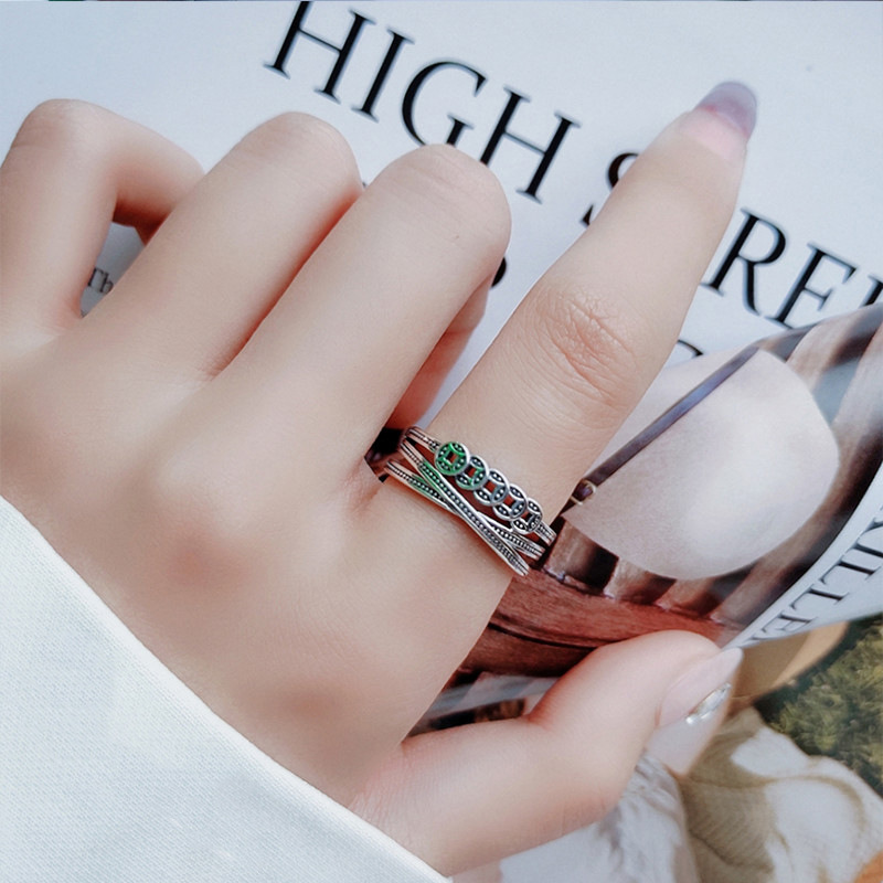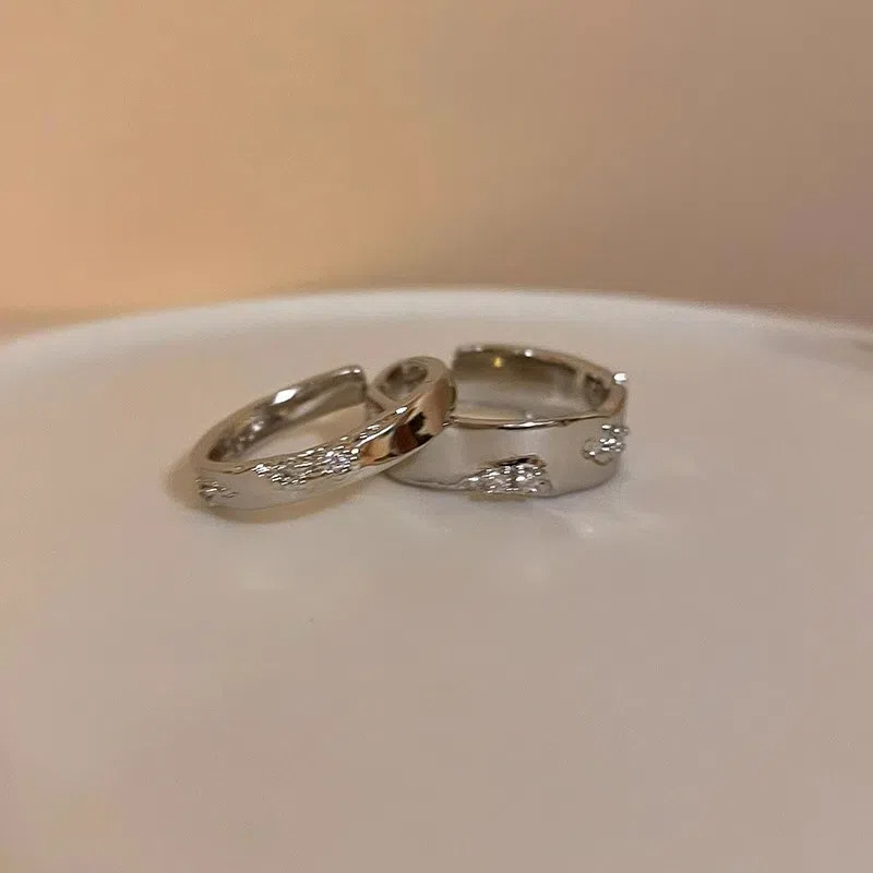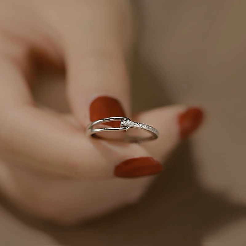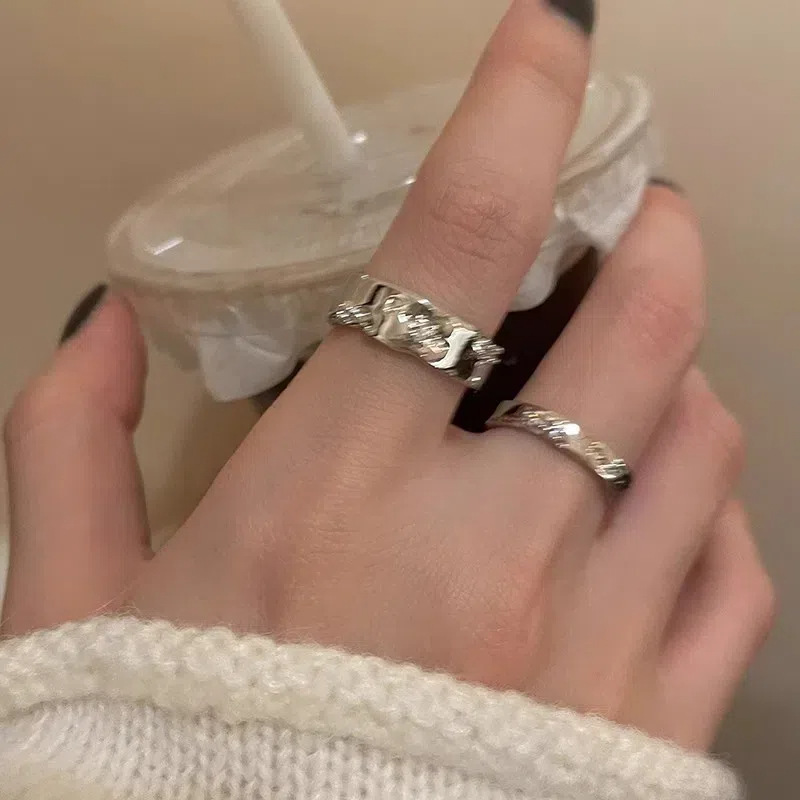 不掉色戒指小众设计高级感素圈锆石女叠戴套装ins开口戒轻奢个性