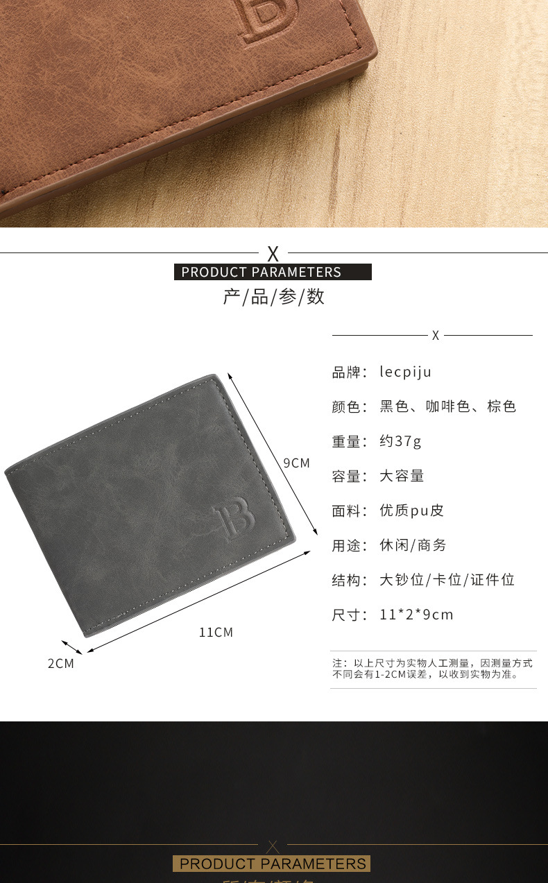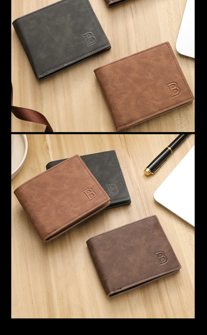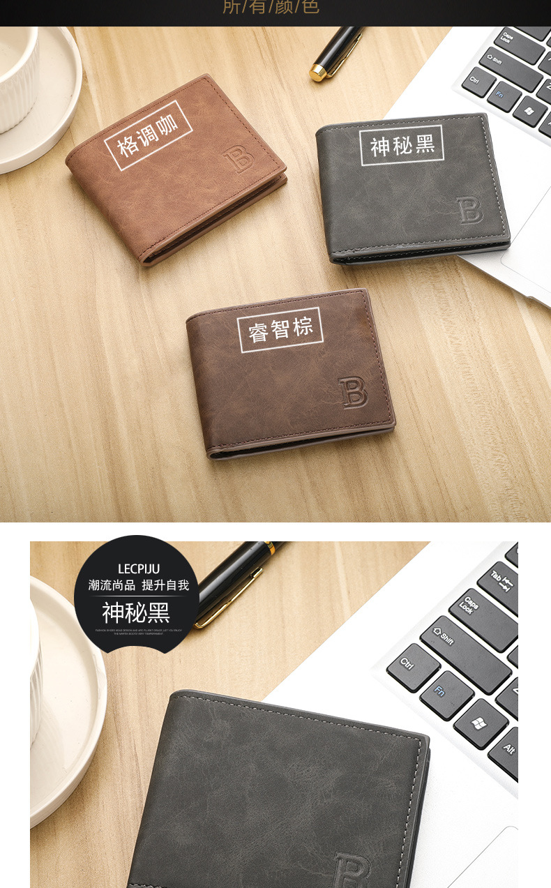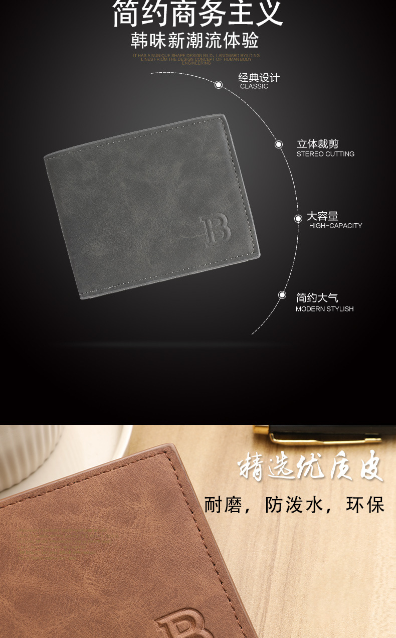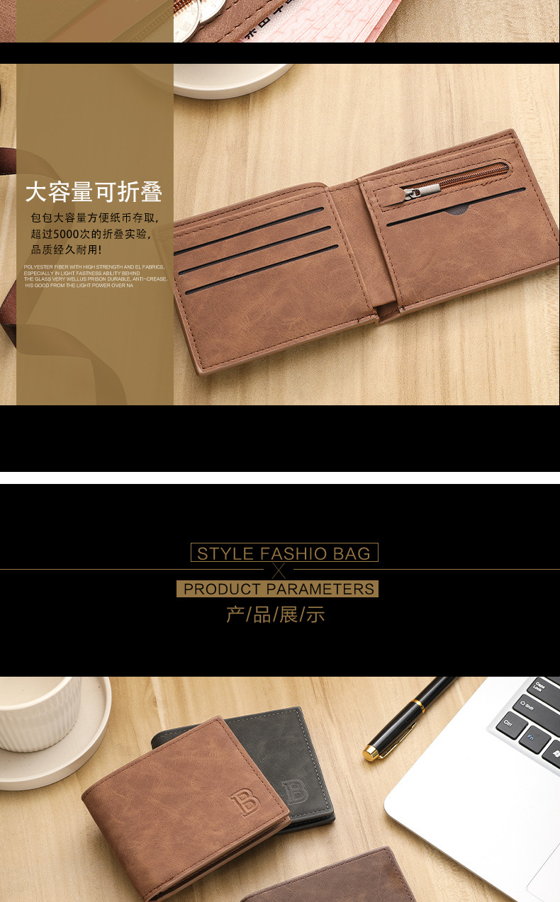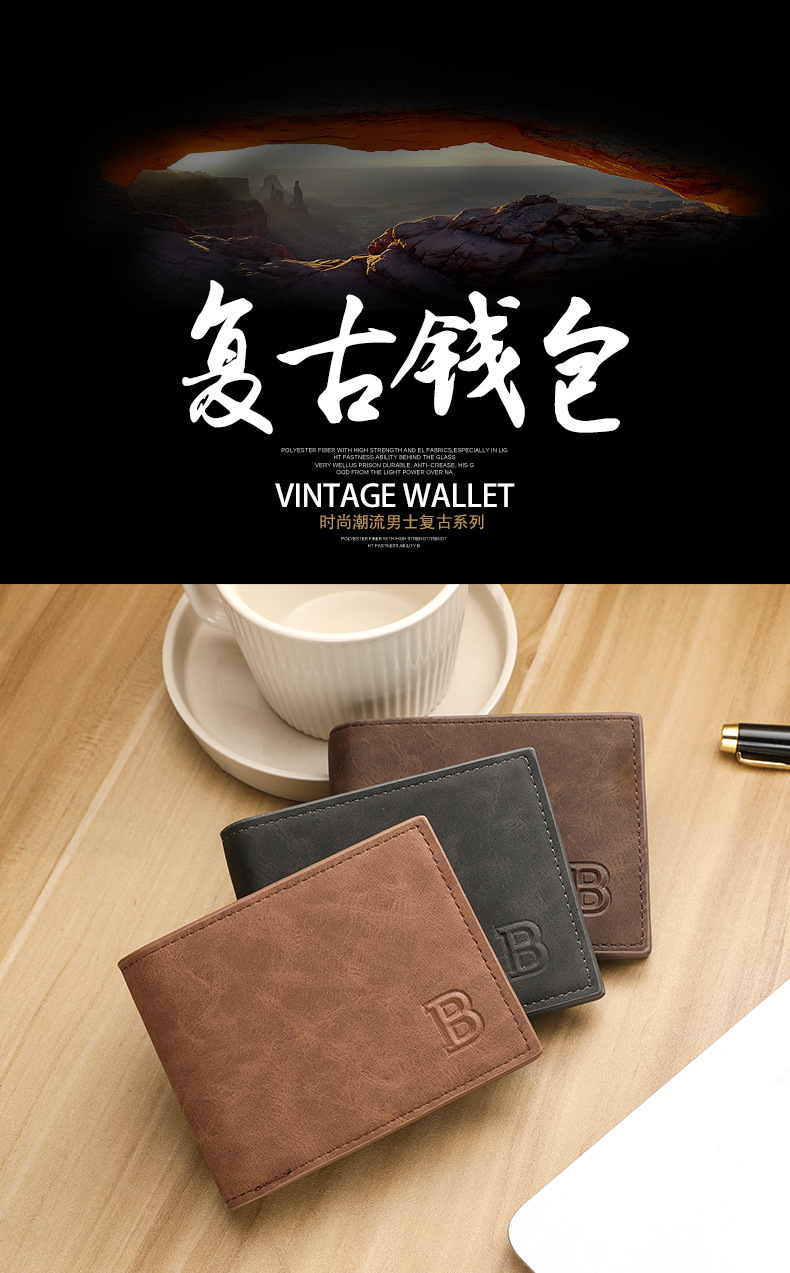 时尚潮流复古男士钱包复古2折多卡片位钱夹多功能零钱包现货简约