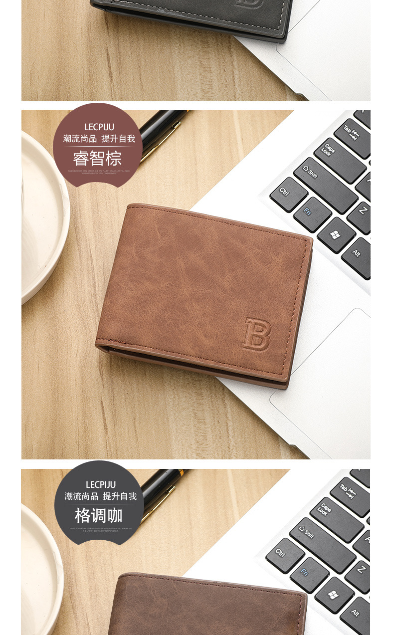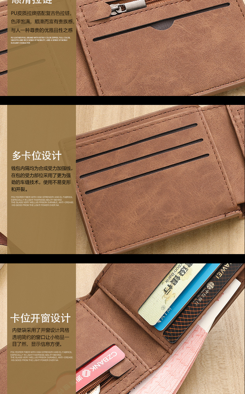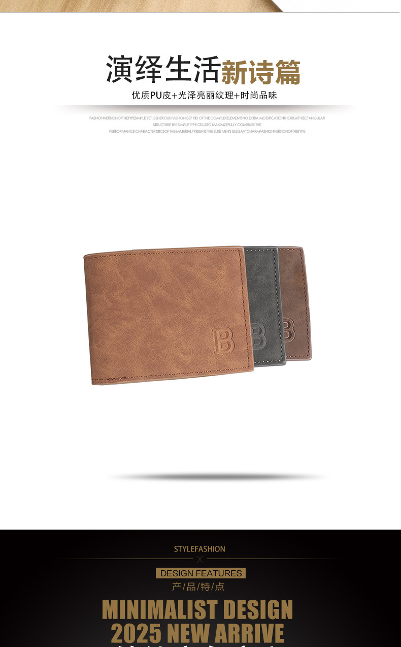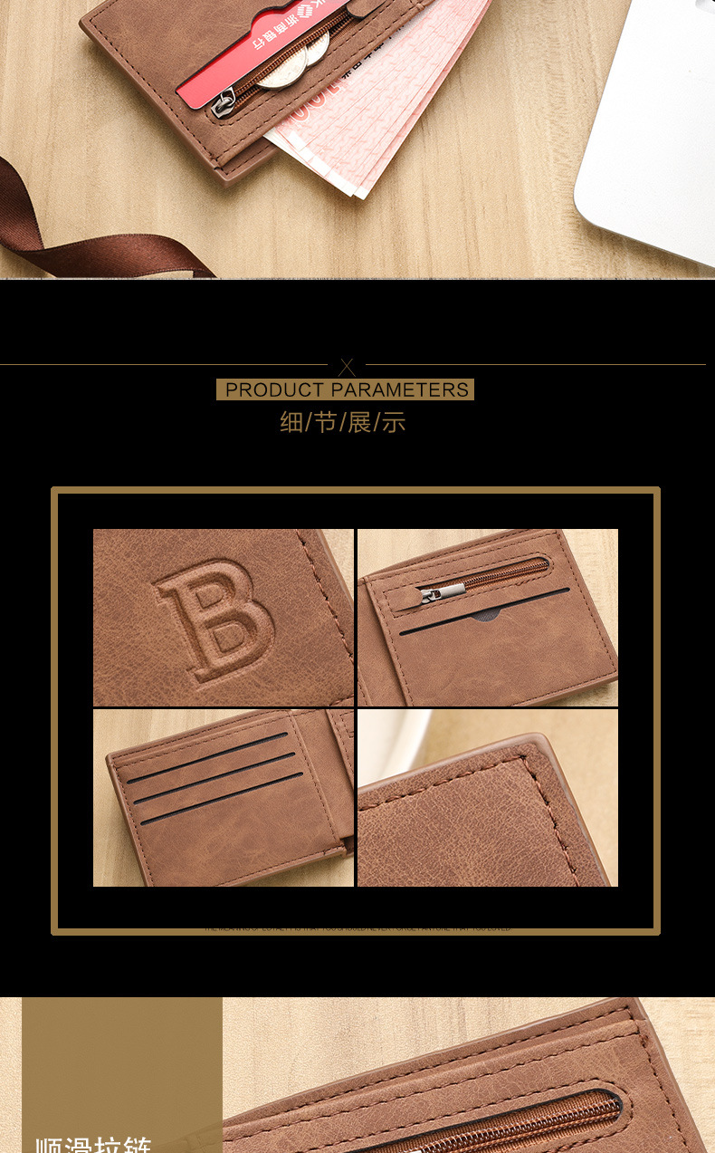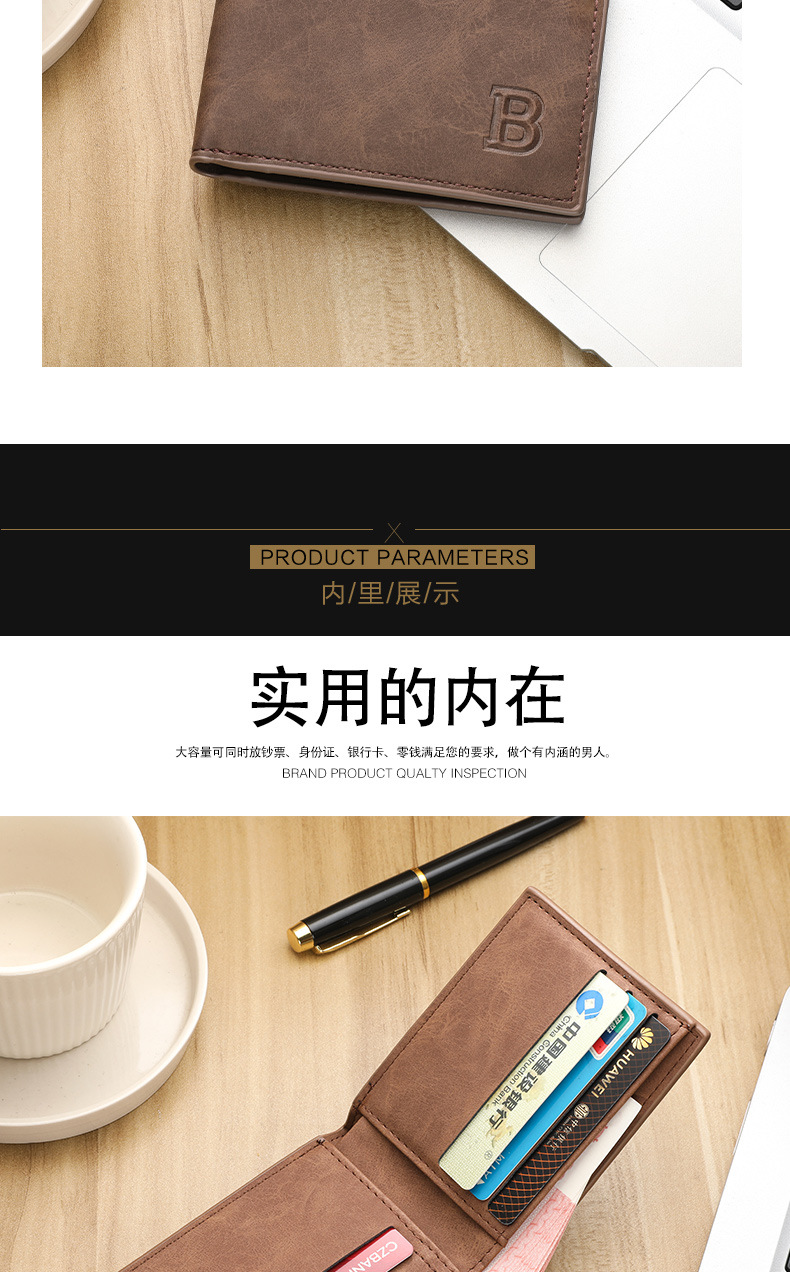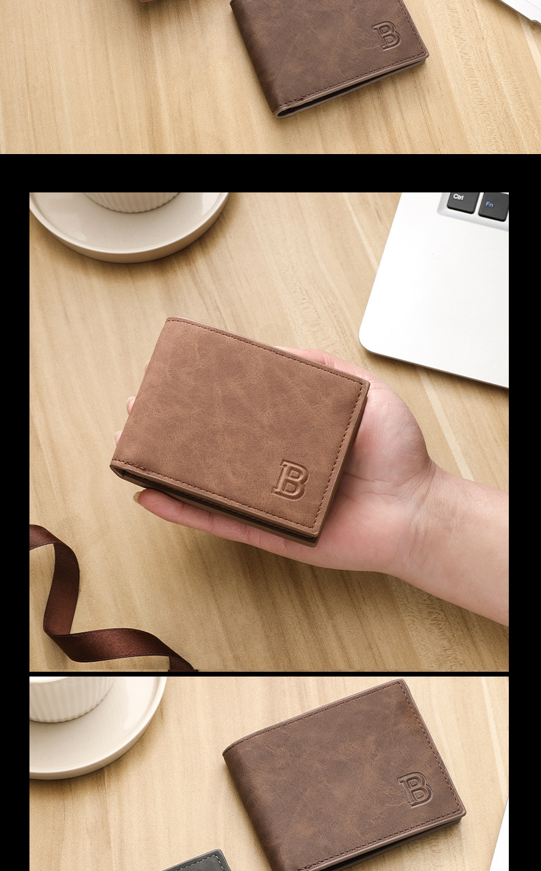 时尚潮流复古男士钱包复古2折多卡片位钱夹多功能零钱包现货简约