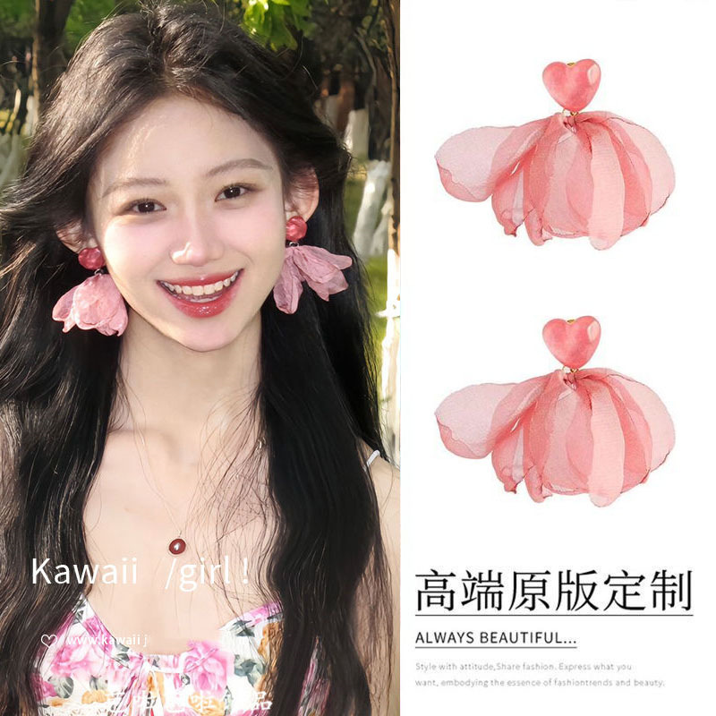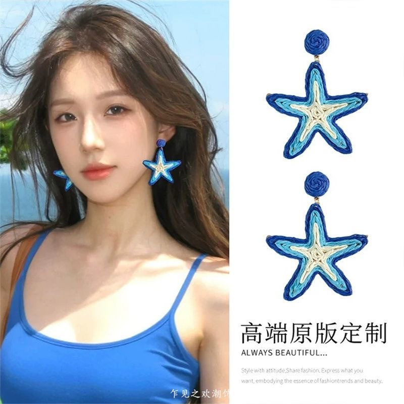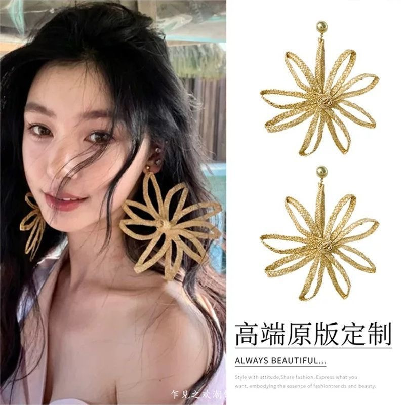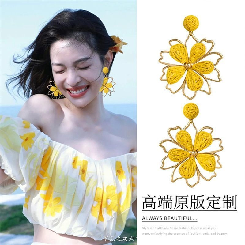 易梦玲同款编织大花朵耳环女海边度假风夸张显脸小耳饰无耳洞耳夹