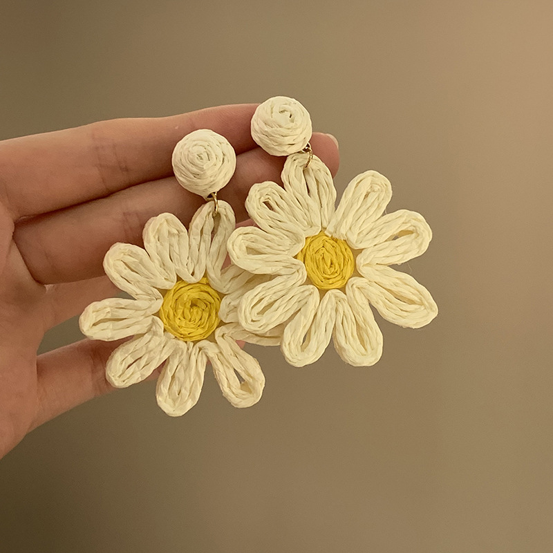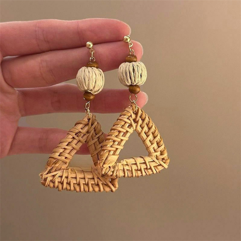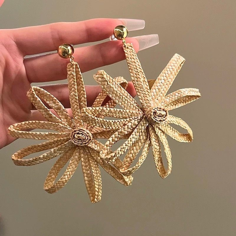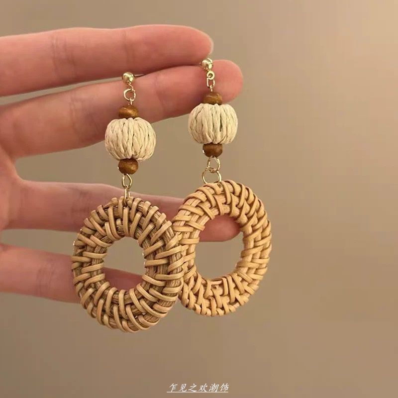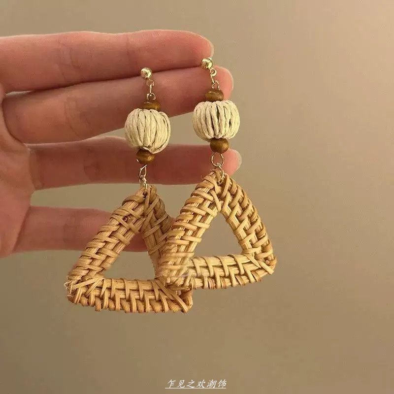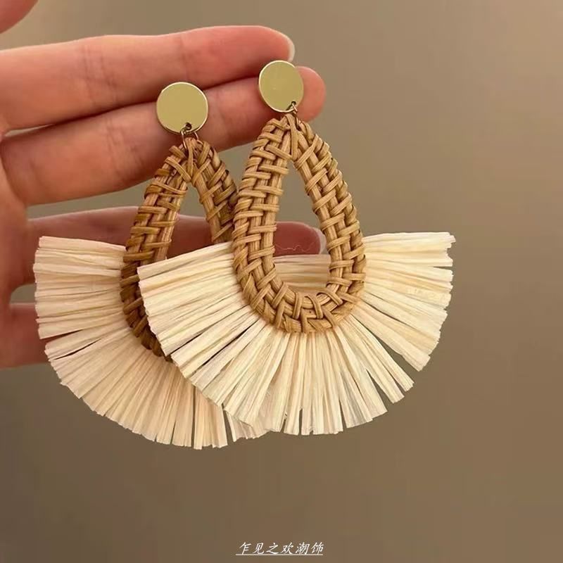 夏日海边度假风藤编扇形耳钉高级感夸张气质耳环波西米亚独特耳饰