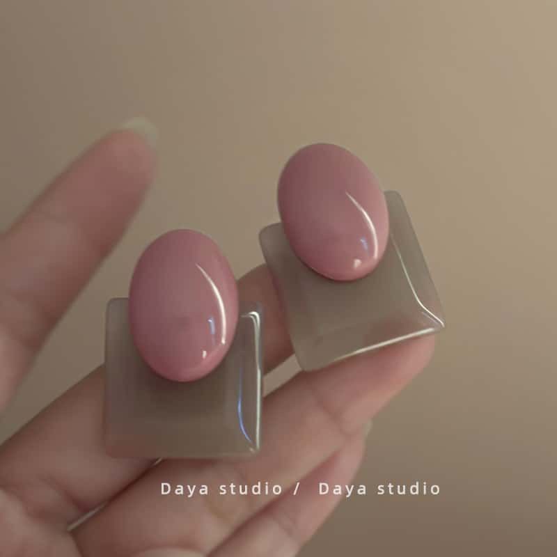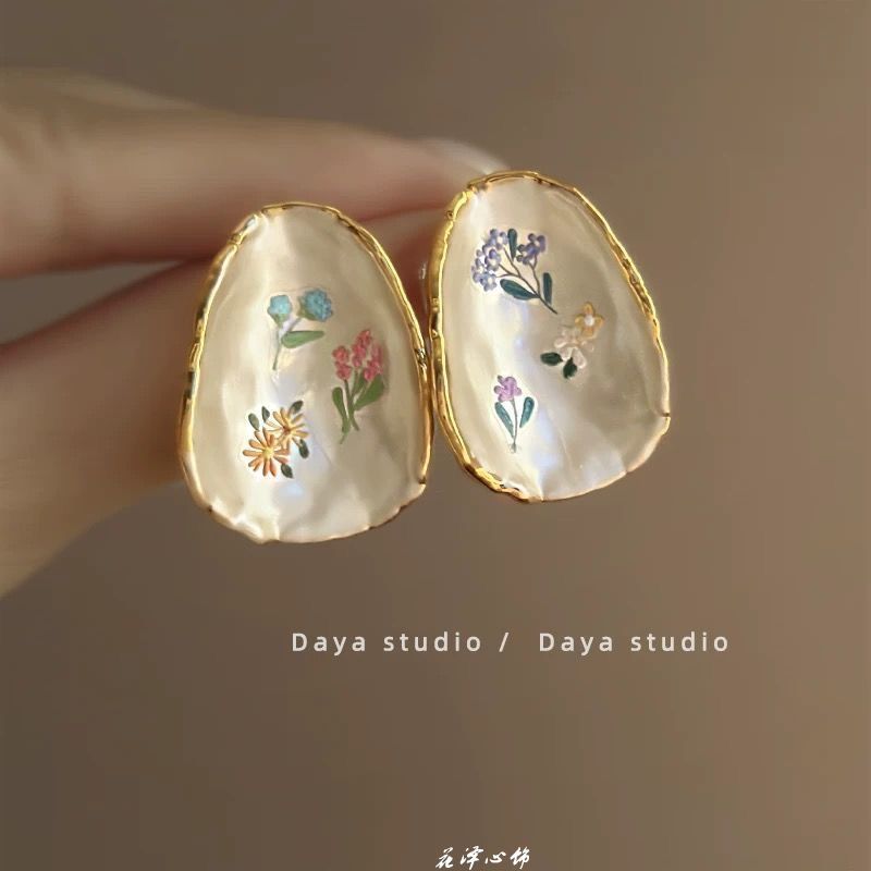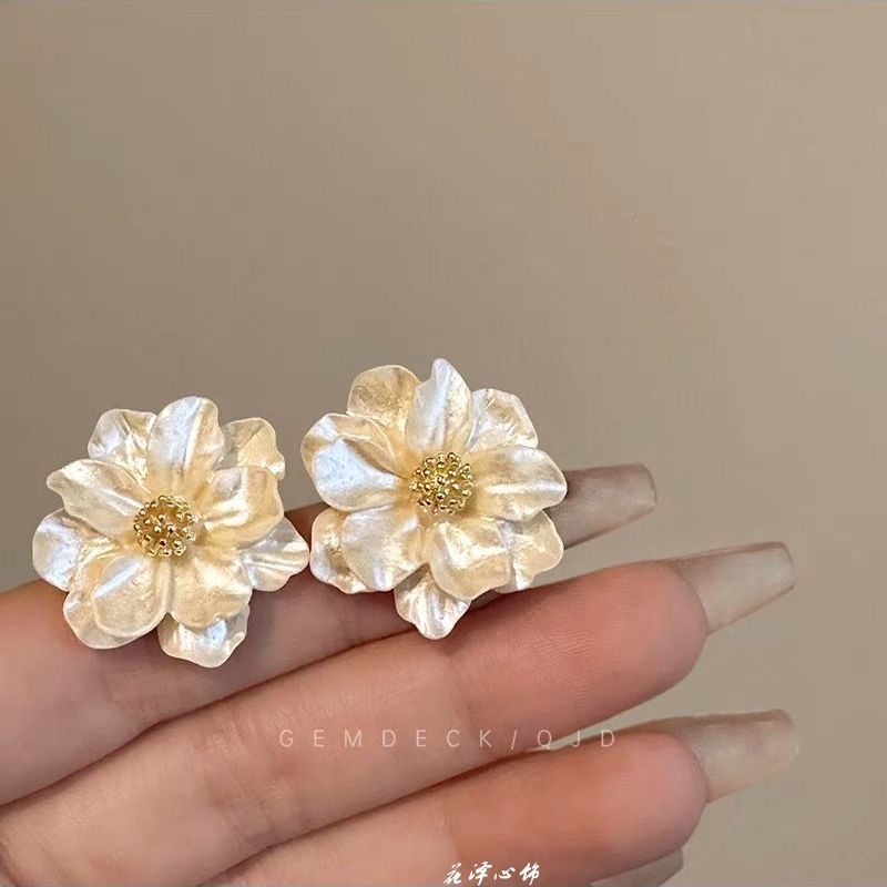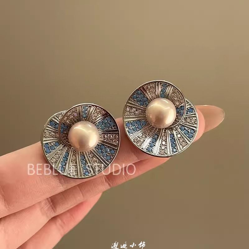 浮雕雾霾蓝 法式复古滴釉玫瑰花朵锆石耳环女轻奢高级感小众气质