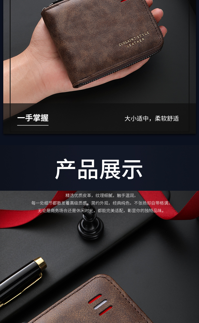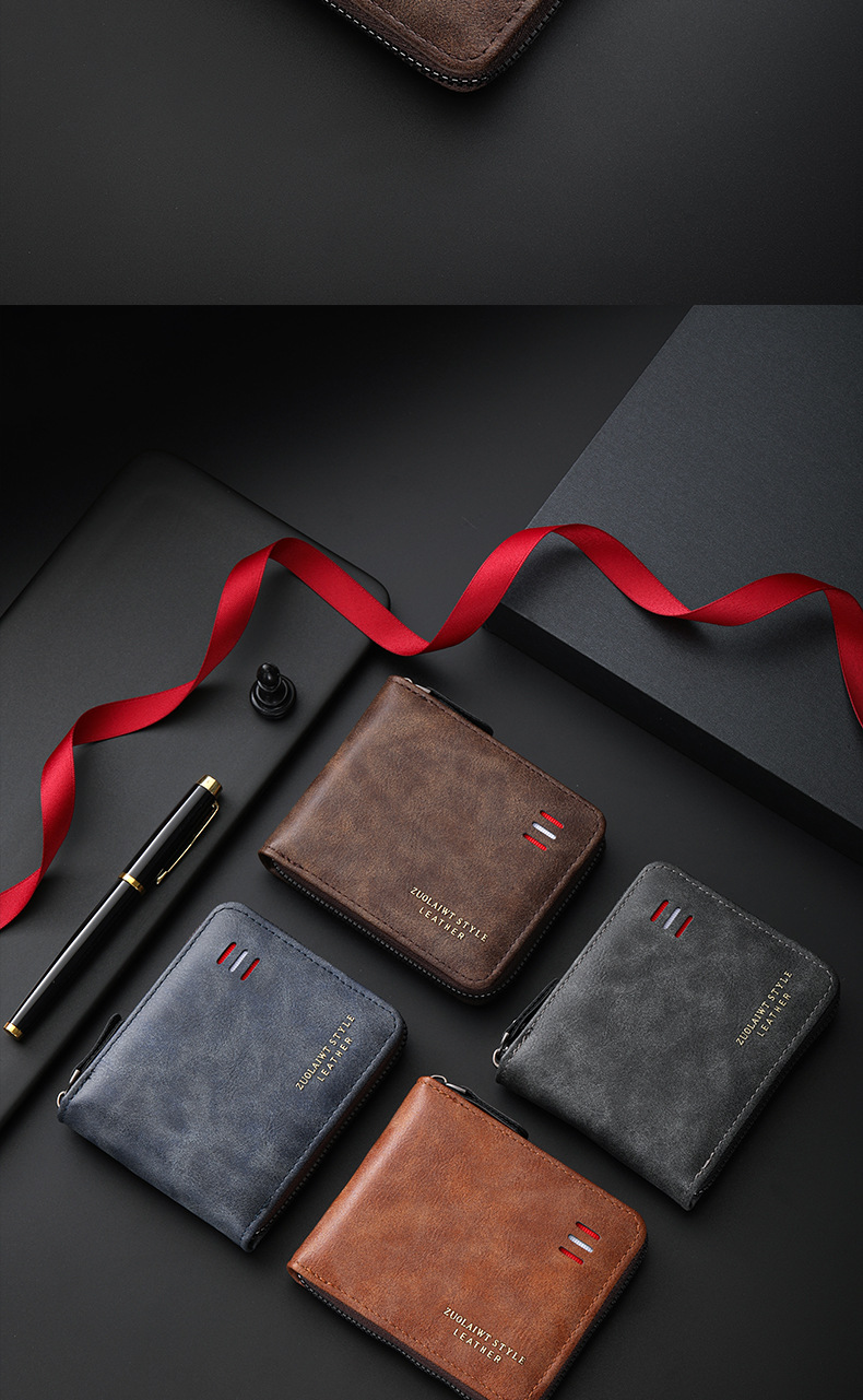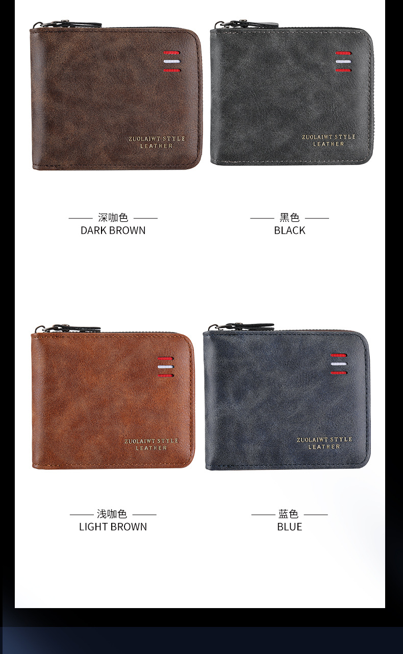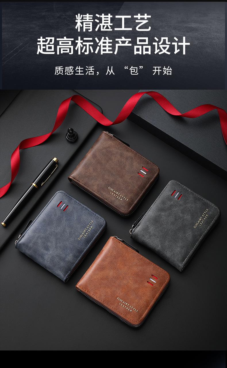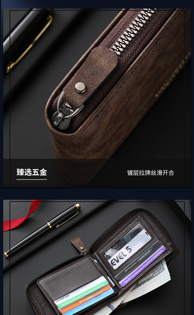 跨境复古拉链短款多卡位时尚信用卡夹零钱包复古休闲搭扣四方包
