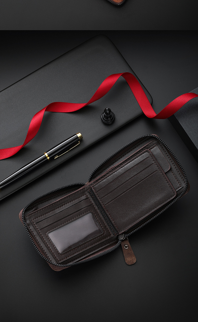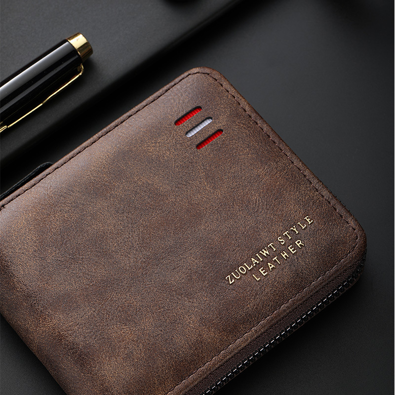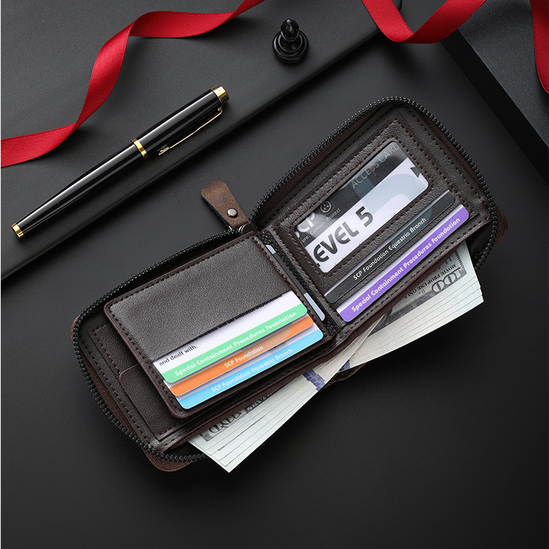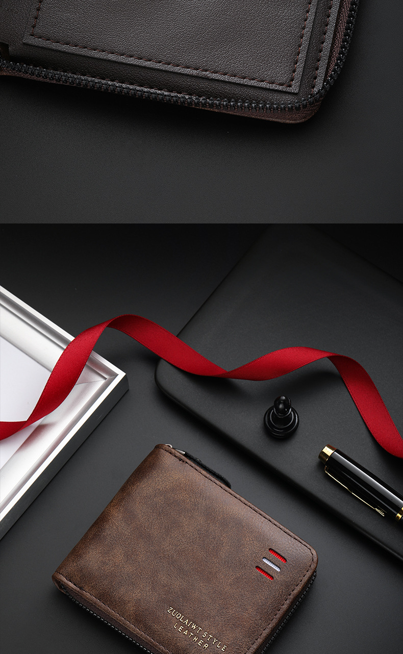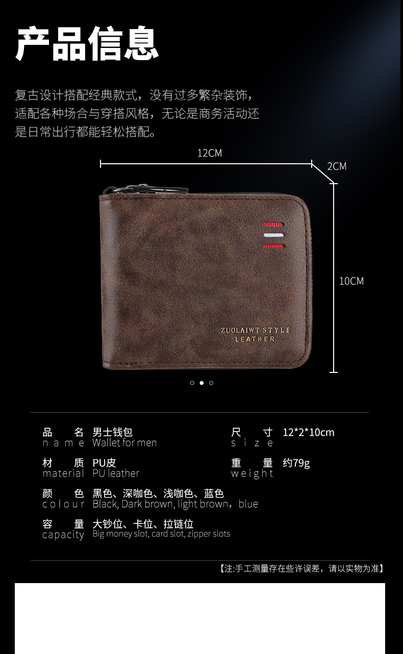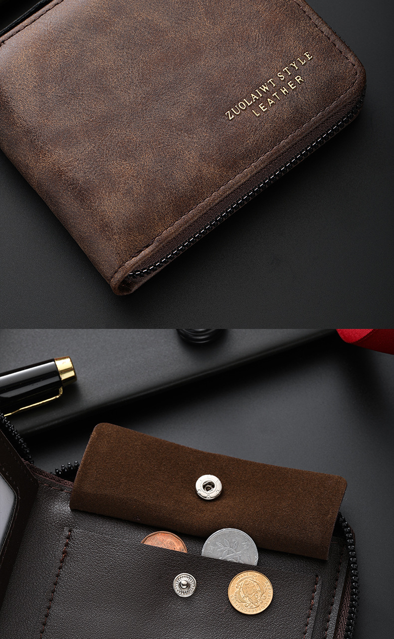 跨境复古拉链短款多卡位时尚信用卡夹零钱包复古休闲搭扣四方包